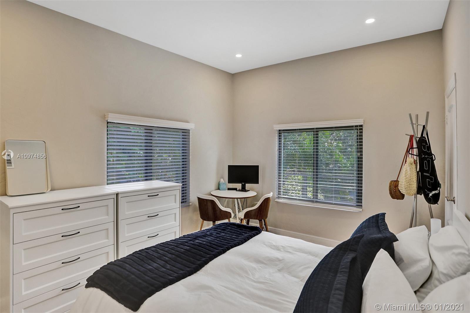 Investor opportunity or ideal 2-family residence. Tropical-modern duplex set on a gated lot in S. Coconut Grove. Total renovation w/legal variance as 2 separate residences. Updates include: new roof, new recessed lighting, completely updated electrical & plumbing, new contemporary-style bathrooms, renovated balcony w/new railings, new stucco on all exterior walls & new hurricane impact windows & doors throughout. 1st flr. unit: 3BR’s/2BA’s, new European-style kitchen(w/ new SS appliances & quartz countertops), travertine flooring and outdoor terrace. 2nd flr. unit: 3 BR’s/2BA’s, kitchen w/wood cabinetry & all new SS appliances, new HVAC, wood flooring + private balcony. Current rental income $7000 mth w/upside potential. Walk to the Grove village center’s cafes, bayfront parks & marinas.