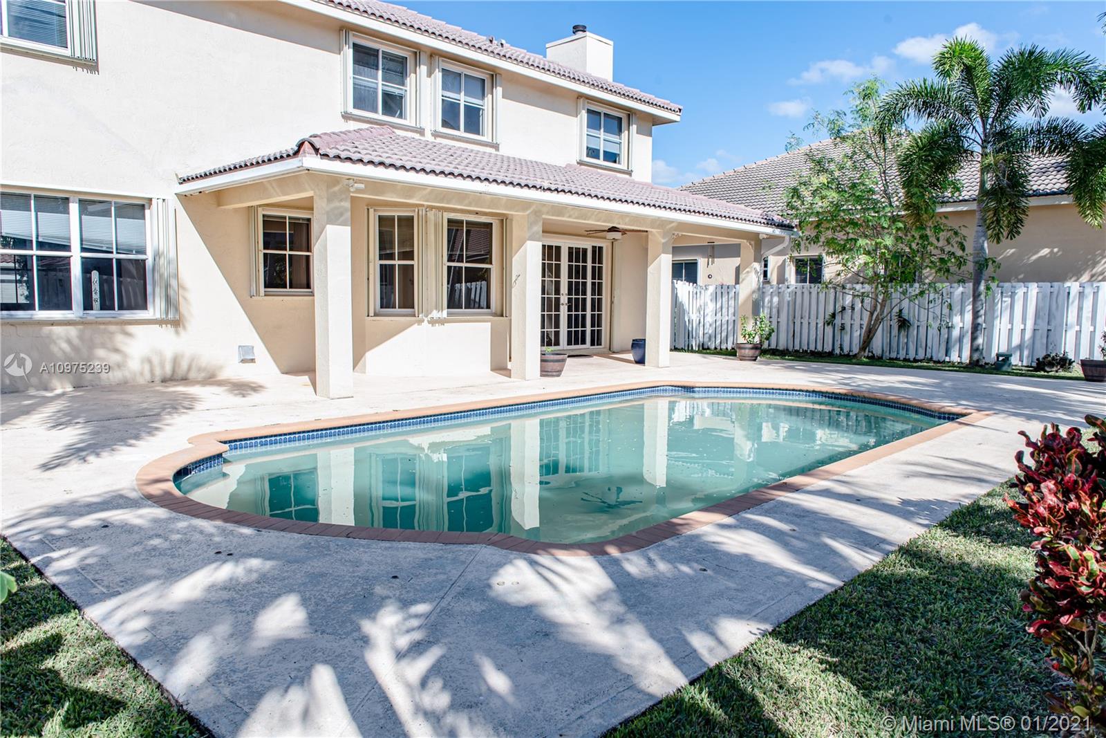 Beautiful two story home with pool located in the gated community of THE MEADOWS. Kitchen updated with Wood cabinets, Granite Counter-tops, Stainless Steel Appliances & Breakfast Area. Neutral Tile throughout upstairs and downstairs and lots of natural light. Large fenced private yard with large pool and concrete deck - great for family time and entertaining guests. Accordion Shutters -- Weston 24 hour guard-gated community (The Meadows) with community pool, tot lot, excellent A+ Weston Schools, Must See, Use Showing Assist.