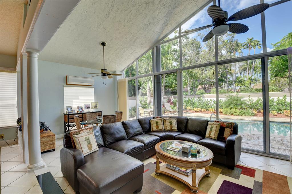 This 2 bedroom 2 bath home plus den is one of the most popular floor plans in the community. Some of this homes features include, remodeled kitchen and master bath, newer a/c, California closets, and an enclosed porch area that was expanded to the home. This offers, a second large sitting area overlooking the pool. The backyard is bright, open, has travertine pavers and offers a private setting. Don't miss out, come and enjoy the Florida lifestyle! Mandatory Country Club membership required.