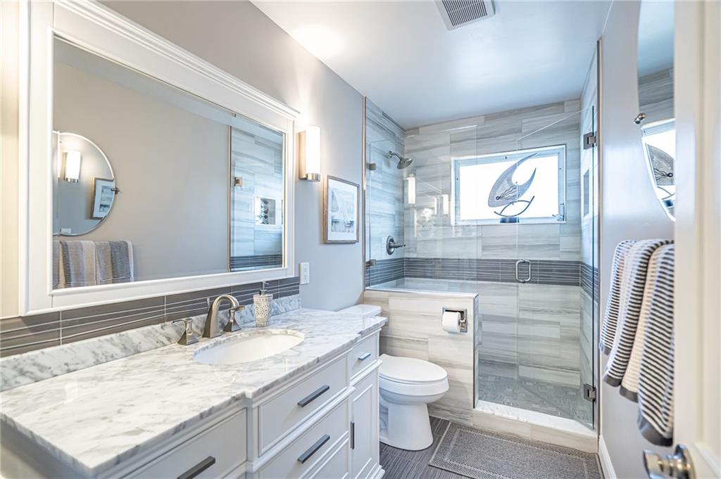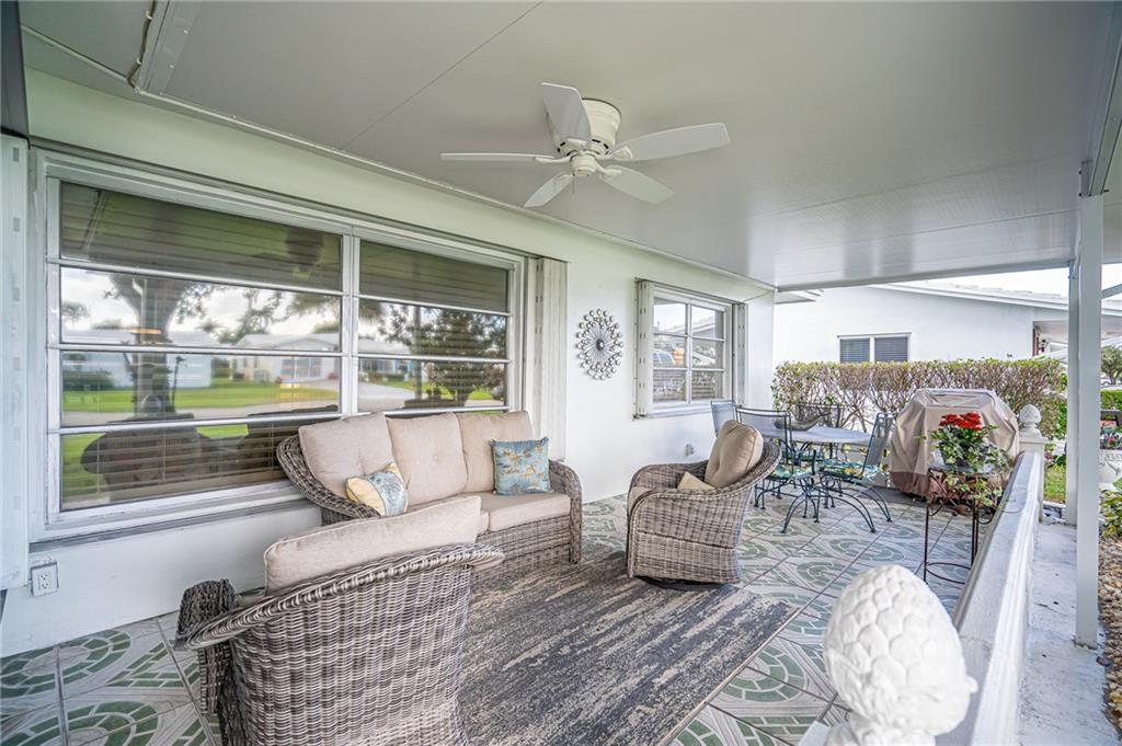 Modern, open concept featured in this bright and beautifully remodeled 2/2 home on corner lot. Garage & open front porch. Unique front foyer leads to a spacious eat-in kitchen w/huge picture window, modern design countertops and cabinetry and new stainless steel appliances +reverse osmosis water filtration system. Living area features beautiful tile and crown molding, continuing into Florida room/dining area. Unique lighting fixtures throughout. The design and decor of the completely renovated master and guest baths is fantastic! Bedrooms feature neutral laminate. And more!! NO LAND LEASE, 55+ Roof 2006 Newer A/C and water heater. Pets welcome! Maintenance includes water/sewer, 2 clubhouses with wifi, two pools, golf course, lawn maintenance, courtesy bus, and more!
