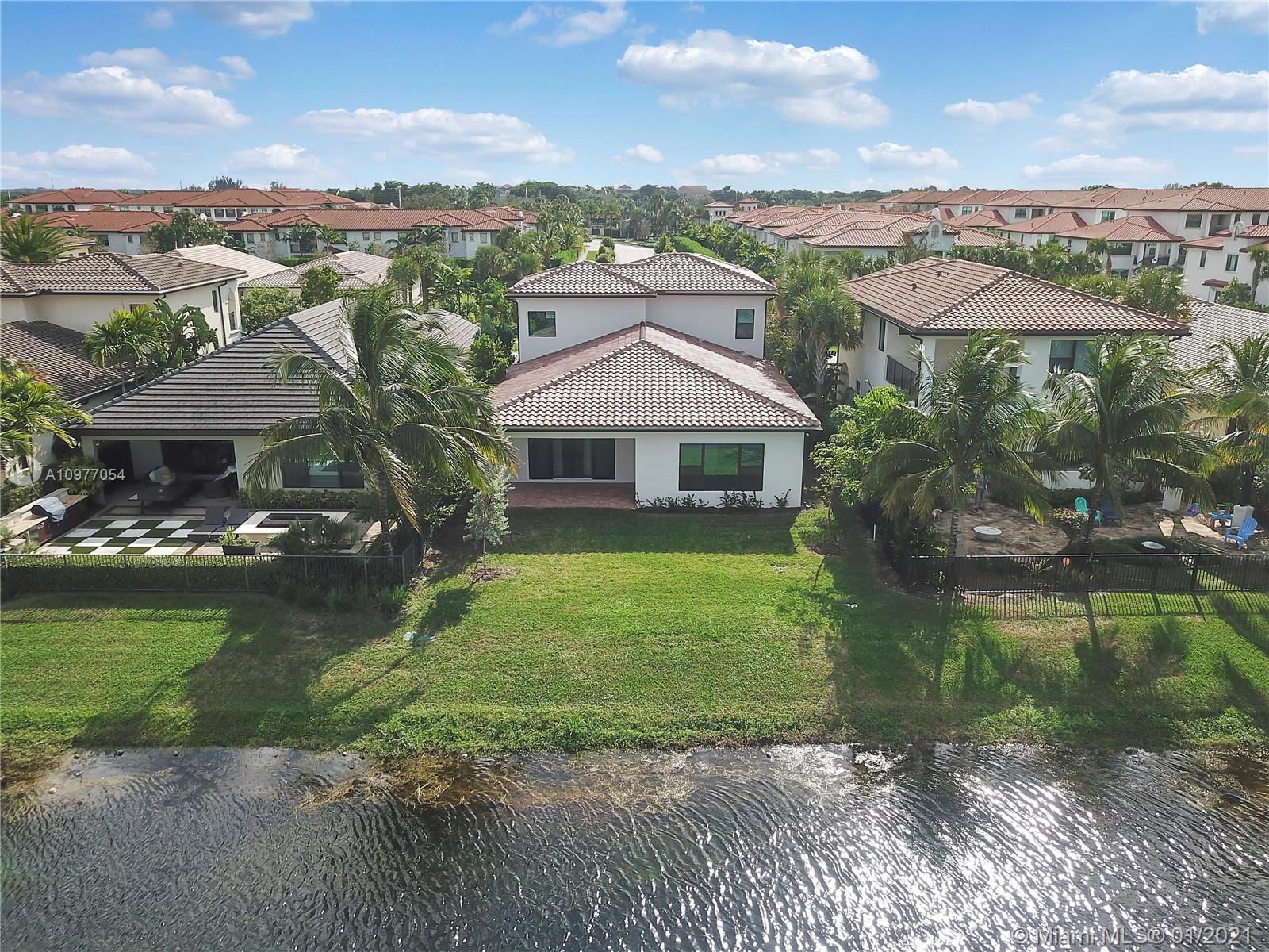 The space you are looking for. This truly beautiful, brand new Estate Series, 2-story Provence model, built in 2019, has 3610 SF of living space. 4 bedrooms each with spectacular en-suite bathrooms. The master suite, on the ground floor, has twin walk-in closets, double basins & elegant finishes. The home has an exquisitely appointed kitchen. Features a den, an office, powder room, impact doors & windows, 10' ceilings, ample storage space & ceramic tiles on ground floor. The staircase is wooden. This beautiful home gets lots of natural light. Includes a laundry room & 2 car garage. Backing onto a peaceful & calming lake, it sits in a gated community w/ 24HR security, a heated pool, gym, children's play area & club house. Common & private gardens are maintained by the HOA.
