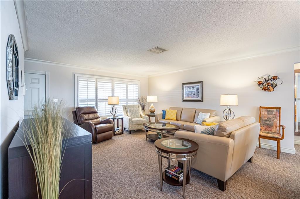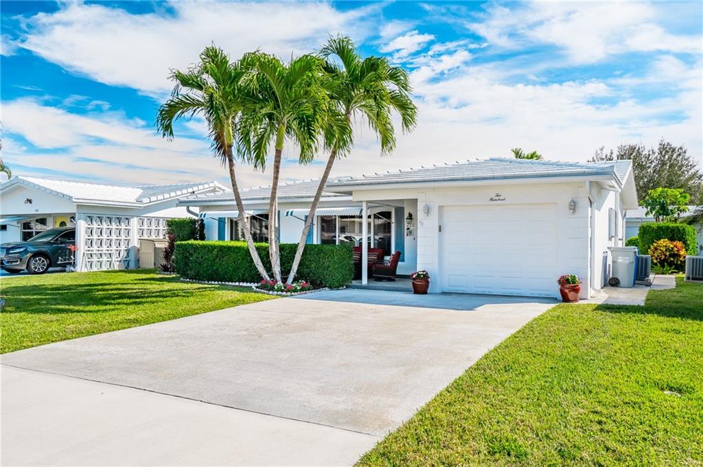 Picture perfect! Renovated 2/2 with garage and open tiled front porch.Immaculate scenic landscaping.Private backyard patio and custom outdoor lighting will wow you! Concrete double wide driveway. Spotless interior offers bright kitchen w/quartz countertops backsplash,&hardwood floor. Open living area extends to combination dining/Florida w/patio view& access.Great entertaining space. Master bath features granite countertop vanity, custom shower w/frameless glass door. Plus crown molding, plantation shutters & blinds, 200amp electrical, tankless water heater, newer A/C hurricane windows. NO LAND LEASE 55+ Community, Lots of amenities plus Water/Sewer and sprinkler system included in low monthly maintenance. 2021 Monthly association fee $232.00
