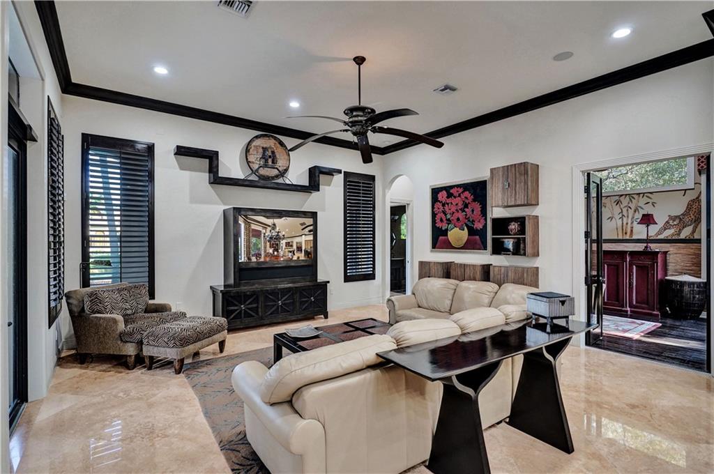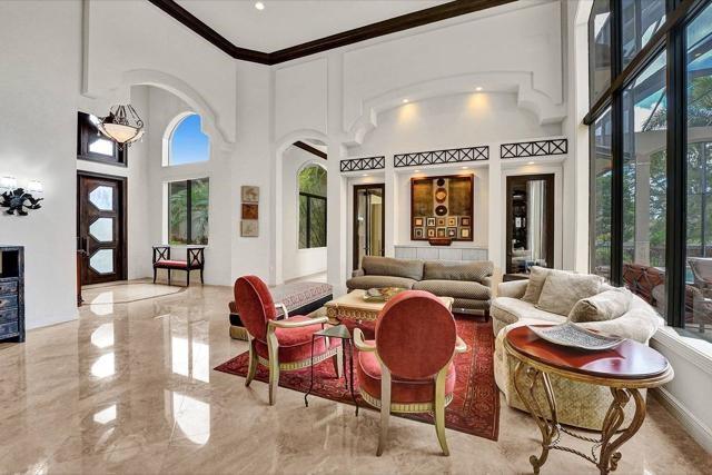 One of a kind Mrachek Custom,Dbl gated community,Dramatic entry w/ fountain leads to handcrafted contemporary 10' doors.Marble pavers front and back. Foyer and entry are sun-filled and bright.21 ft ceilings and open living.PGT Impact Windows & Doors.Custom marble work throughout. Entertainers’ bar with illuminated wine storage tucked under custom curved marble and wood staircase which leads to furnished game room with pool table, 2nd bar and state-of-the-art home theater. All secondary bedrooms are en suite. Enormous custom kitchen with high-end appliances including double subzeros, thermador ovens,2 dishwashers,pot filler and jennaire cooktop.Warm library with contemporary builtins,Sparkling oversized pool and spa. Hurricane-proof screen structure to enjoy Florida living.