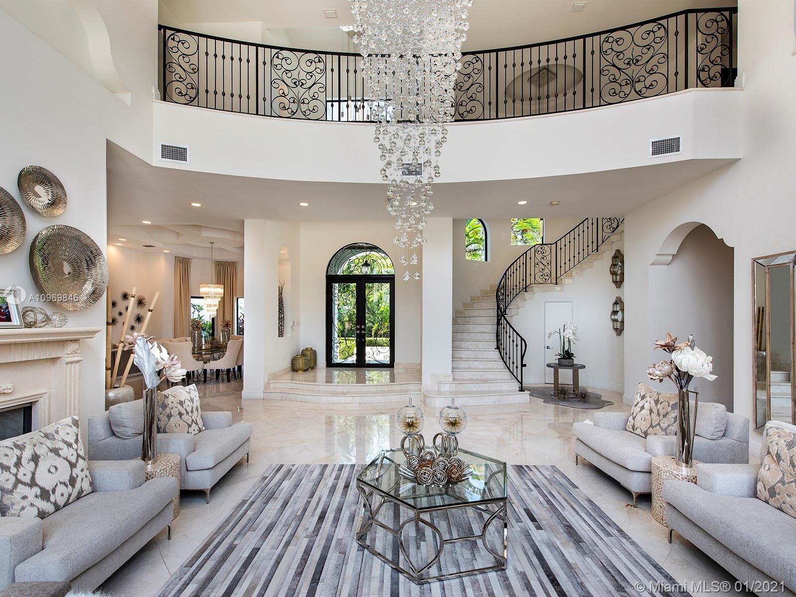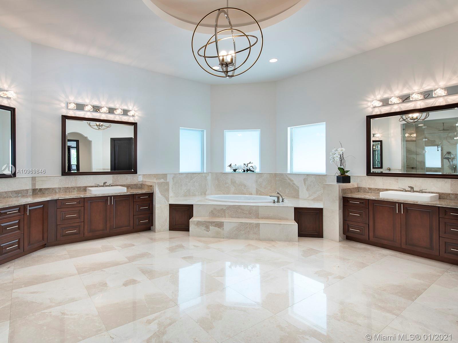 Spectacular Tuscan resort paradise! Classic and superior architectural design with exquisite, finest modern finishes and details! Stunning 28' soaring ceiling, marble, stone, and wood flooring. Designer luxurious appointments throughout. Unparalleled quality with elegant and sleek elements including smart house touch. Gorgeous and open vistas in every turn! Great floor plan. Lavish master suite! All en-suite generously sized bedrooms! Gourmet chef's kitchen, top of line appliances. Wine cellar, home theater, elevator. Additional playroom, office, and stunning open bar equipped with all entertaining features. Large summer kitchen, cabana bath! 20x45 open inviting pool and spa! Immense roofed patio. Sophisticated security system. Imposing entry! Lush landscaping! Sensational!!
