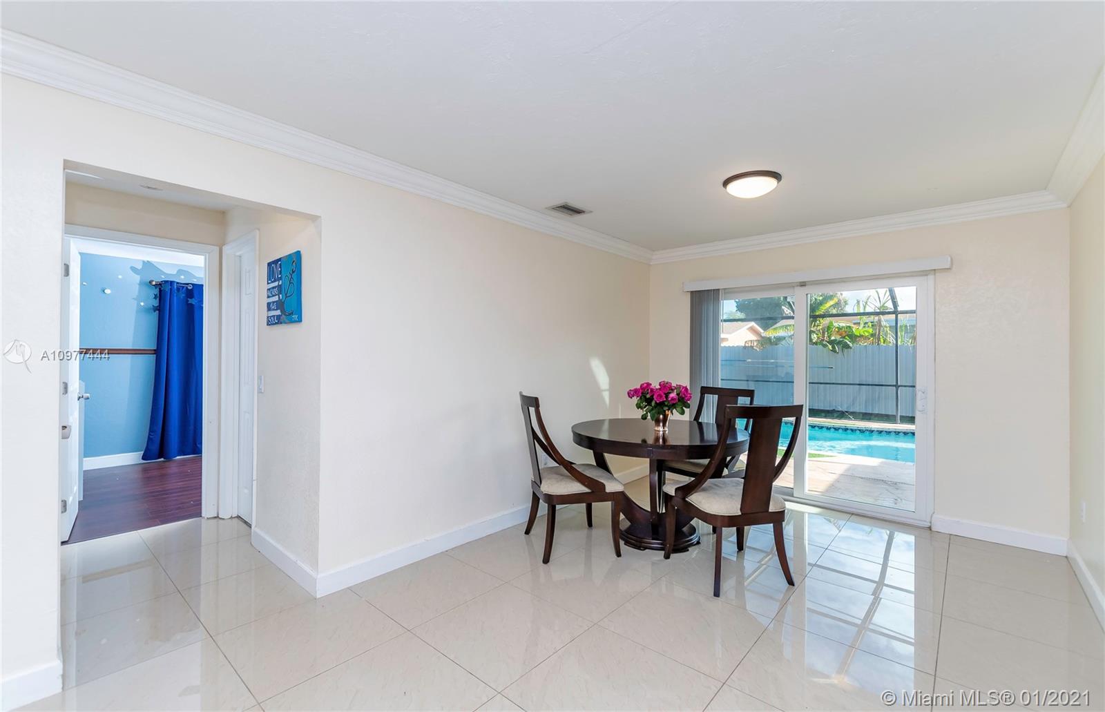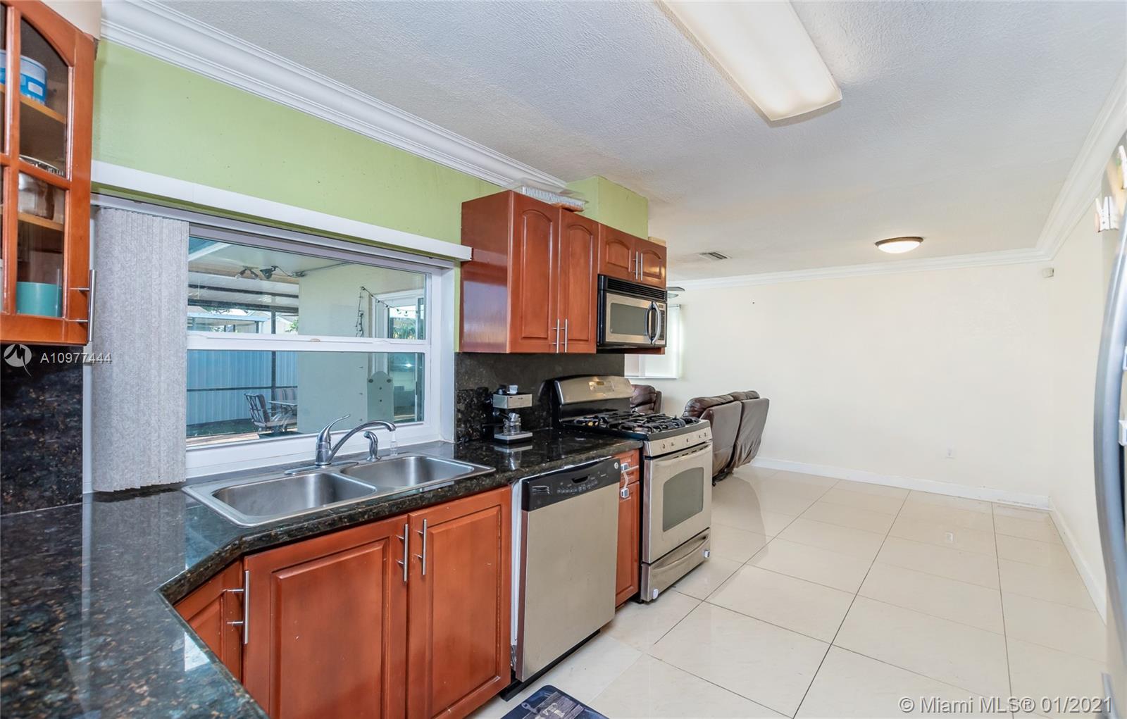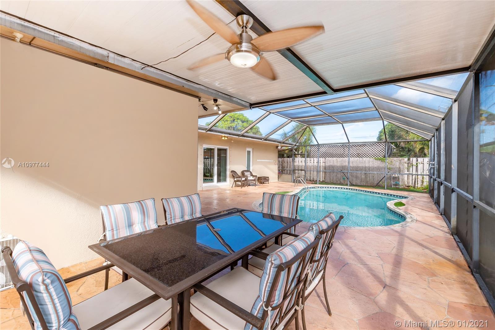 Beautiful immaculate condition house: 3 bed/2 baths with awesome Pool. Custom kitchen cabinets, granite countertops, stainless-steel appliances, gas stove. Renovated bathrooms. Ceramic tile floor throughout the house. Central A/C with wireless thermostat. Security Camera System included. Lots of outdoor and entertainment area, swimming pool screened in, pool salt chlorinator, automated pool vacuum for easy maintenance. High impact windows / garage door. Covered garage with lots of storage space. Enjoy family with BBQ area, additional outside eat/relax/play covered area. Den can easily be converted to 4th bedroom. Close to everything: stores, services, restaurants, supermarkets. 3 min. driving to FL Turnpike. No HOA fees. Ready to move in. Showings By Appointment Only Mon-Wed. 9am to 4pm.