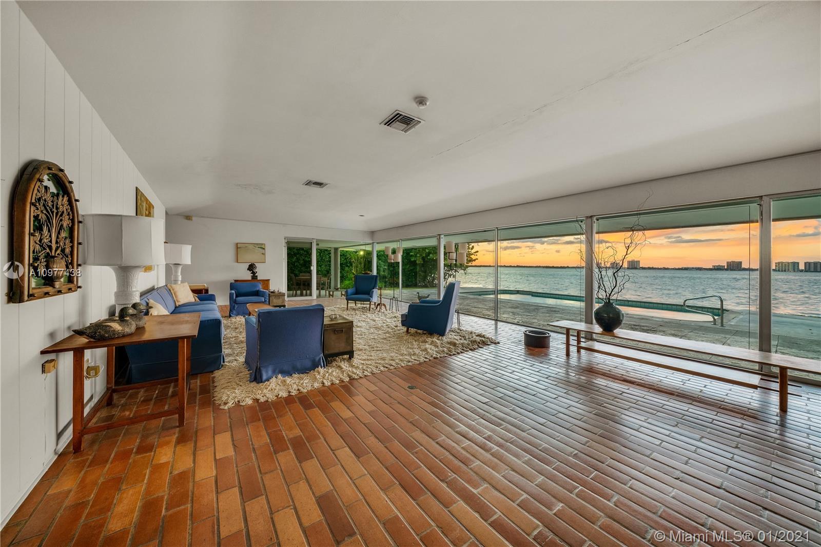 Feeling like you're floating on a cruise ship and enjoying the balmy breezes of Biscayne Bay is heavenly in this Miami Beach home on WIDE WIDE OPEN BAY. The daylight and sunset views seem like you are floating on water, as the home is situation on a high elevation. This 4 BDR/ 4 BATHS Features an open kitchen and open living areas, pool, 2 car carports & tons of storage space. Featured in National Magazines, was built by the artist and cookbook doyenne Maida Heater It stands apart from others. Situated on a corner, it is on an oversized 14, 423 SF lot. Adjoining the property there is 12,533 SF waterfront lot available for sale ,Total approx 27,000 SF of land. Located in guarded island of Normandy Shores, golf & tennis so close.