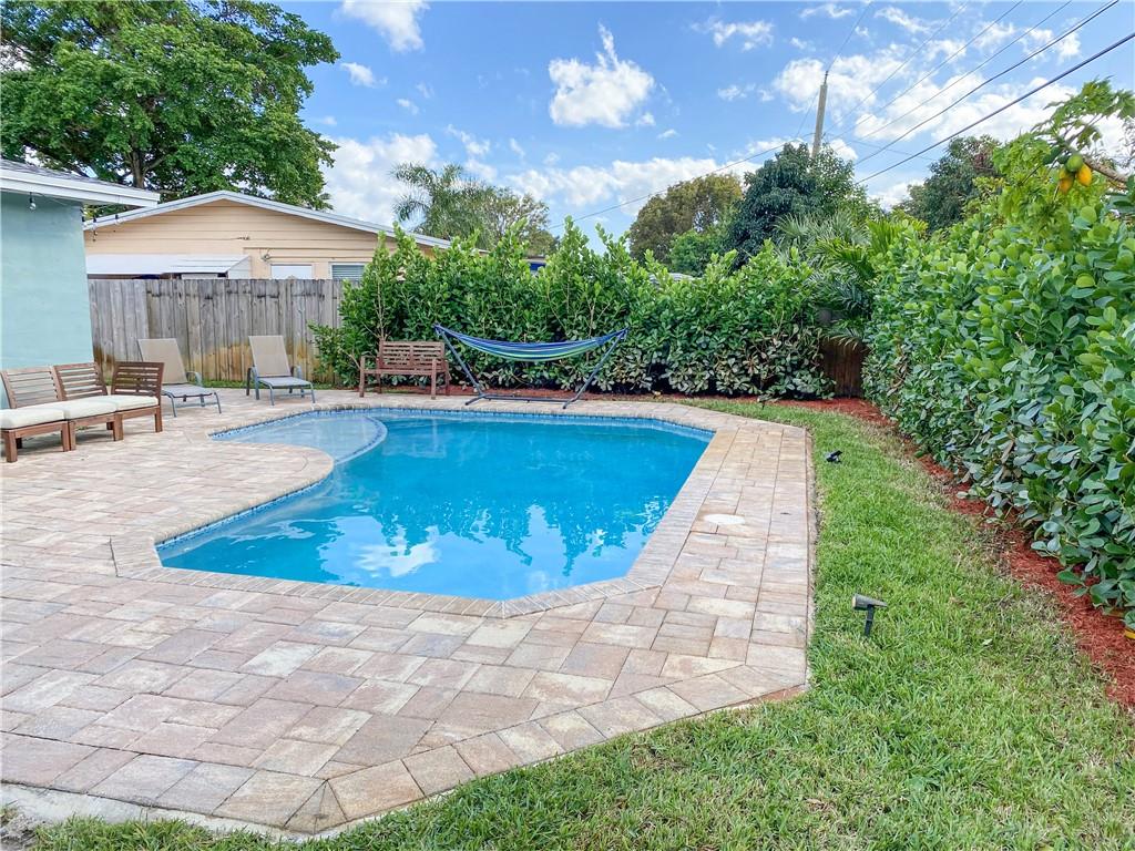 Enjoy the Florida lifestyle year round in this immaculate 3 bedroom pool home with resort style backyard located only a few miles from the Ocean! Original Terrazzo floors throughout have been restored. Fully upgraded kitchen features new cabinets, granite counter-tops, mosaic black splash+++. Two refrigerators included. Roof (2017). Pool with sun shelf (2017). A/C (2016). Washer / Dryer (2018). New Water Heater (2020). Upgraded backyard landscaping (2019). All windows and doors are either impact or have shutters for quick protection along with a built in Generator hook-up ready to go. Nearby to excellent shopping, dining, golf and beaches! This home has it all!