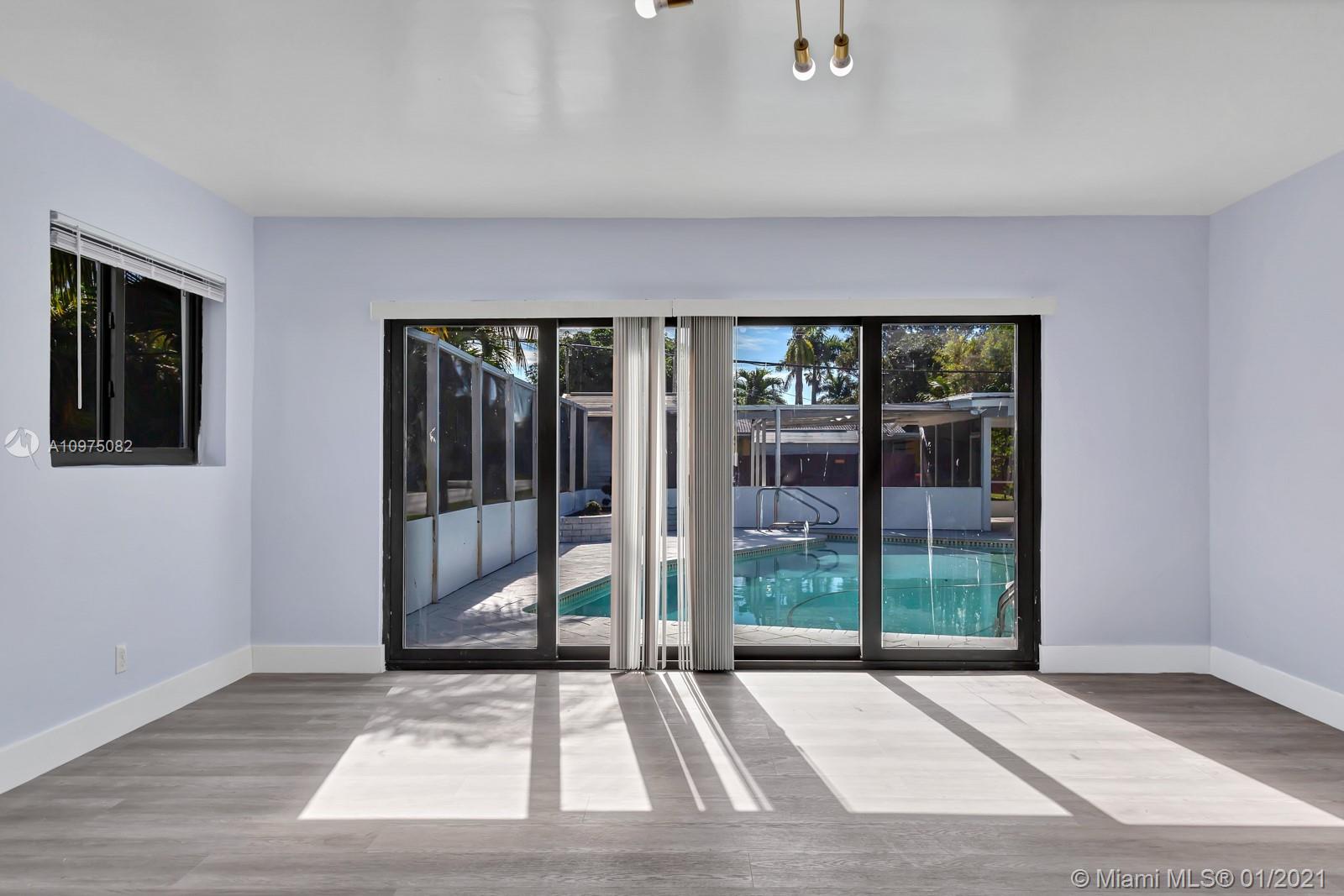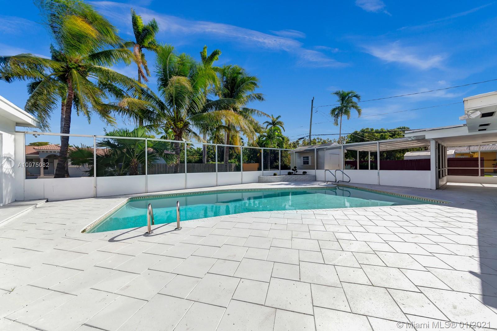 Espectacular smart corner home in a quiet and perfectly located neighborhood. House has been renovated including impact windows allowing for lots of natural light. Waterproof vinyl flooring in the main areas, top of the line stainless steel appliances and slide in gas stove. White soft closing kitchen cabinets, modern backsplash and gold finishes add to the charm of the house. Spacious master bedroom with direct access to the heated pool & patio. Bathroom features hexagon flooring which you enter thru a farmers door to enjoy a walk-in shower, stand alone bath tub & modern floating double sink. Oversized laundry, a cabana bathroom in addition to a Florida room over looking the pool making it the perfect entertainment home. Oh, did I say it has smart devices? A/C, switches, lock, and more!