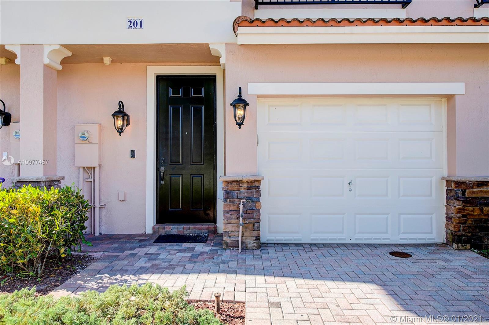Beautiful luxury townhouse located in the wonderful community of Las Brisas! This home features 3 bedrooms 2.5 bathrooms plus an extra room room downstairs that can be an office/den and + loft area upstairs! One car garage with driveway! Open two story floor plan with ample space and elegant 9' ceilings. Updated kitchen with wood cabinets, granite counter tops and stainless steel appliances. Tile flooring throughout first floor and engineered wood flooring on second floor. Accordion hurricane shutter protection! This home has been meticulously maintained and is turn key! Excellent location that is walking distance from Sanctuary park! Community offers a pool, child play area and is near Weston A+ schools!