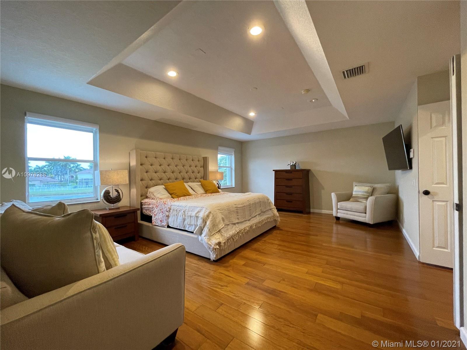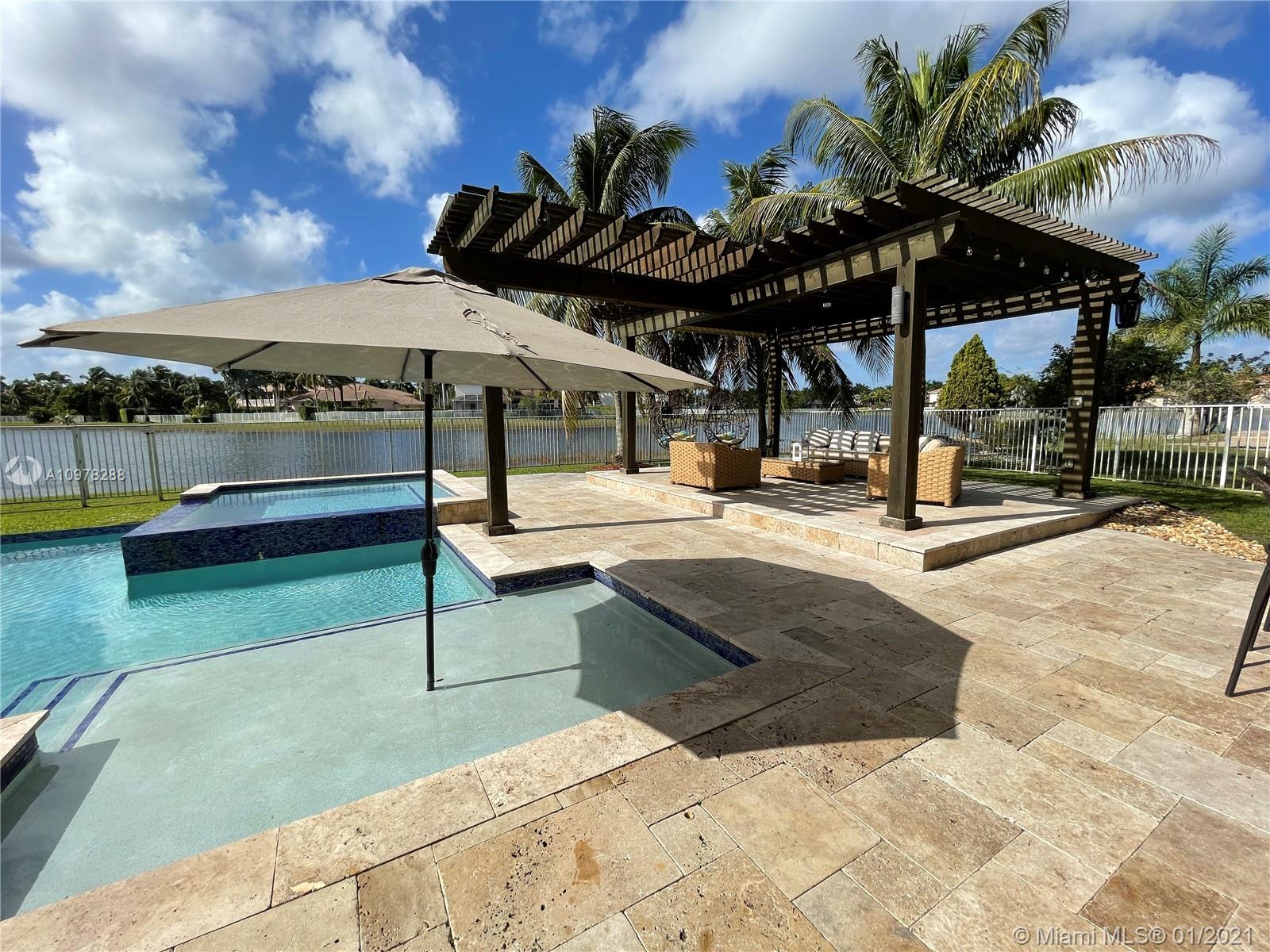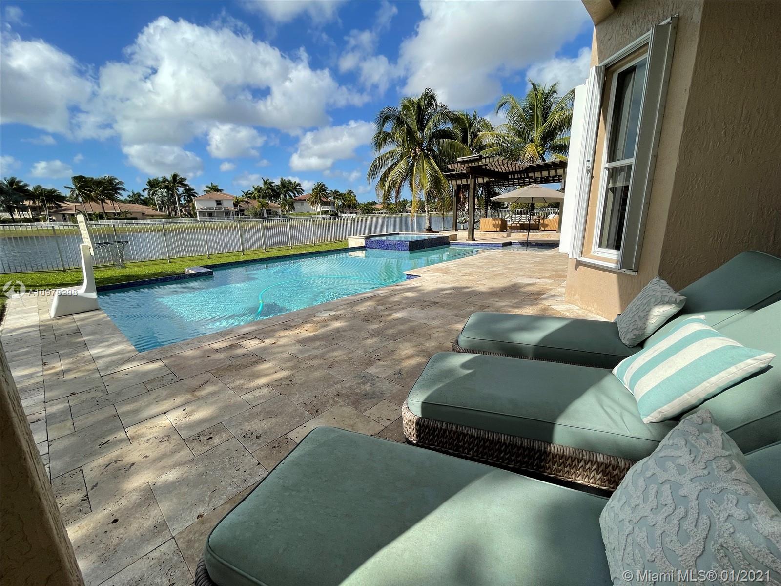 TOP WESTON SCHOOLS ASSIGNED - Manatee Bay - Falcon Cove MS and Cypress Bay HS // YOUR OWN HIGH END RESORT STYLE BACKYARD AWAIT * UNMATCHABLE WIDE PANORAMIC LAKE VIEWS * LARGE LOT IN THE EXCLUSIVE COVE III OF SAVANNA'S PREMIER SUBDIVISION // OUTDOORS - EXPERIENCE YEAR AROUND UNIQUE SUNSETS VIEWS from a 40FT LONG POOL, LARGE 10 SEATS SPA and BAR, heated / salt, french travertine pattern floor // INDOORS - KITCHEN PLUS with custom quartz and stainless appliances, ELEGANT WIDE STAIRS access into 2nd floor, HARDWOOD FLOORS in 5 bedrooms, LARGE MASTER BEDROOM WITH LOUNGE- OFFICE AREA, 4 RENOVATED BATHS, TRAVERTINE FLOORS throughout living areas, french doors, 3 CAR GARAGE, electric shades, +100inch SCREEN PROJECTOR, led lighting * SHUTTERS ACCORDIONS THROUGHOUT - 24HR SECURITY GATED COMMUNITY