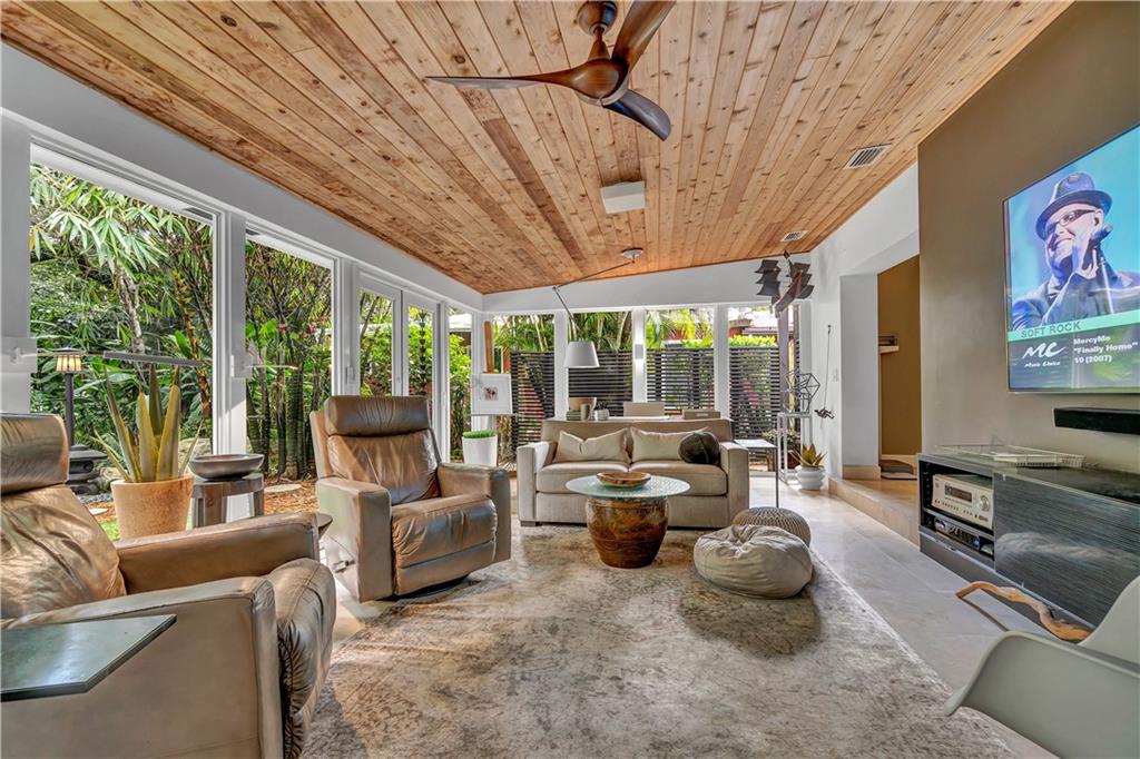 Don't miss this beautifully updated home in much desired Riverside Park. Cedar ceilings extend over the open living concept with an abundance of natural lighting through two skylights and floor to ceiling windows. Impact windows and doors throughout. Stunning kitchen with detailed touches, including stainless appliances and custom cabinets. Formal dining, two beautiful bedrooms, and a huge office that can easily be converted to a third bedroom. The master features a walk-in closet with a lovely modern bathroom. The Florida room off of the back looks out to a picturesque private patio and fenced back yard. Lots of lush mature foliage and green space. Plenty of room for a pool.