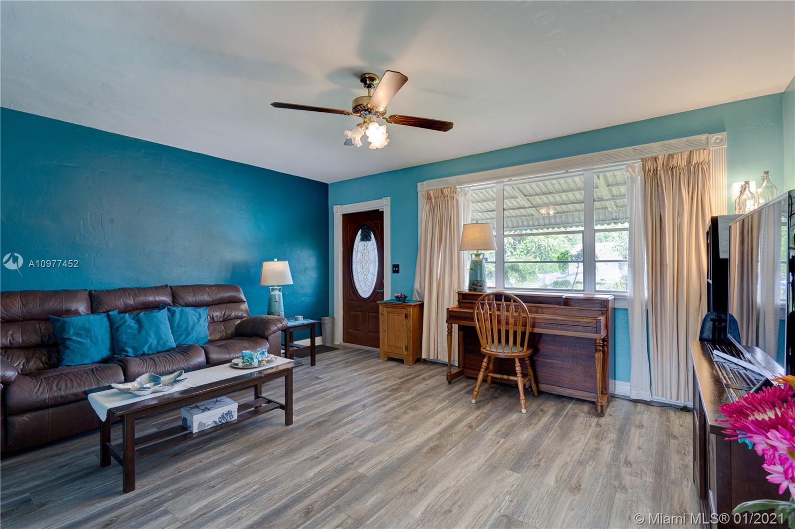 This cozy 2 bedroom 1 bath with a garage is a delightful starter home. Fantastic for a first time homebuyer or anyone looking to downsize. Recent updates include, new flooring, freshly painted (interior & exterior) exterior A/C replaced in 2018, new exterior door and more. Enjoy a relaxing morning coffee or evening wind down in a quiet backyard setting. Backyard offers various fruit trees (Mango, Avocado, Lychee). Great location with easy access to I95 and just minutes to the beach, airport and shopping.