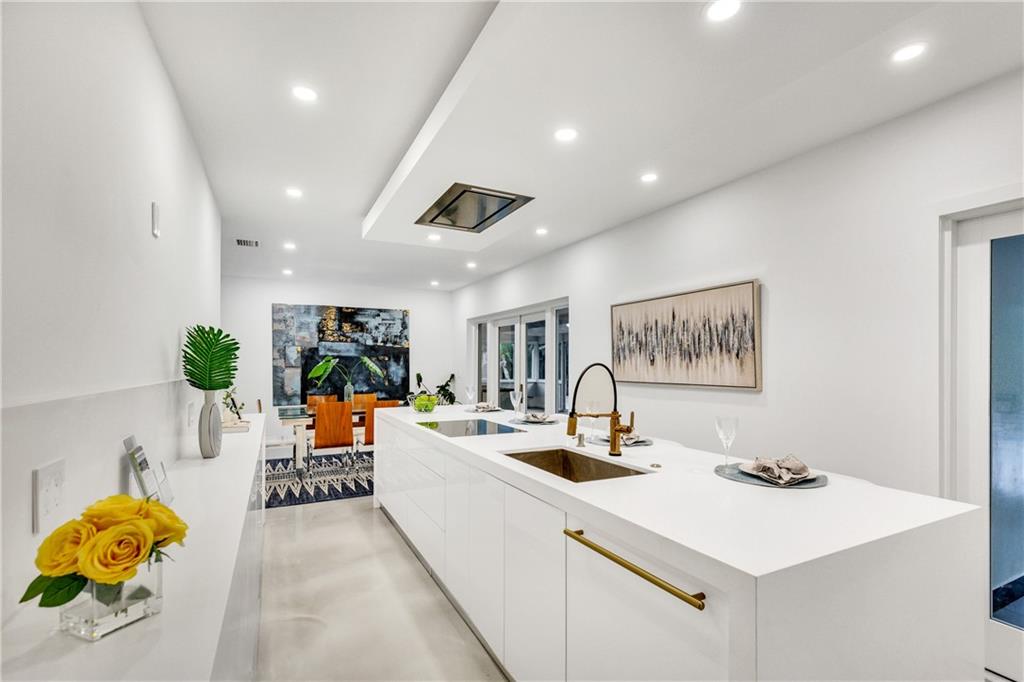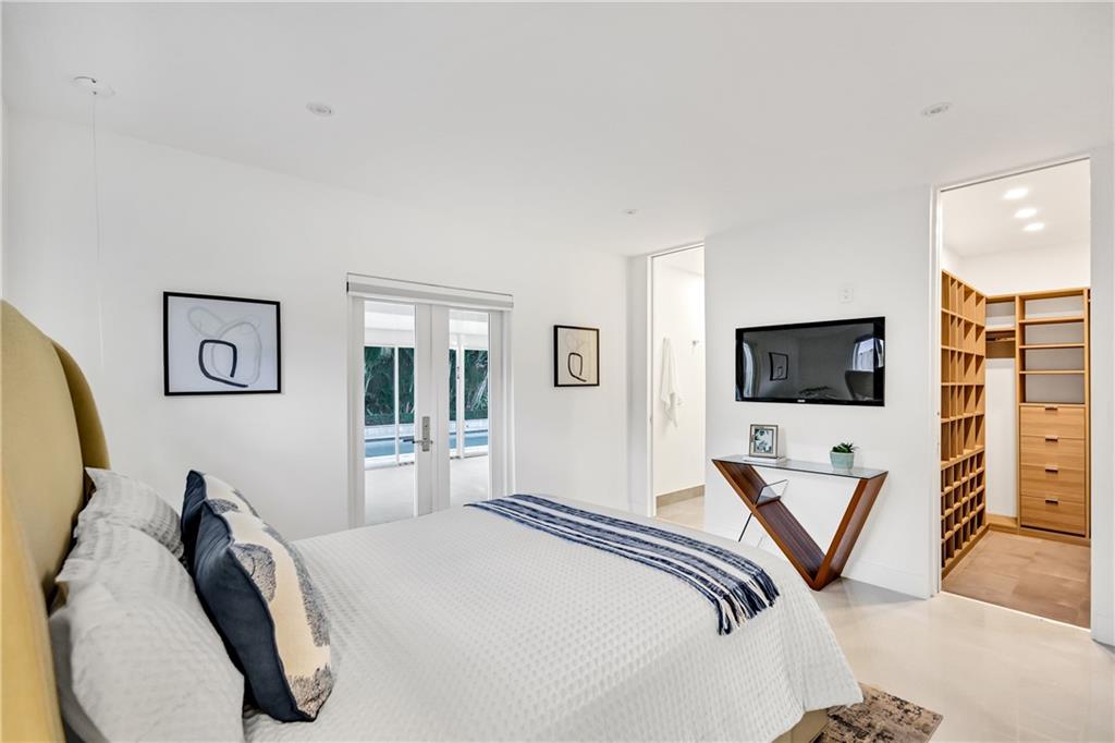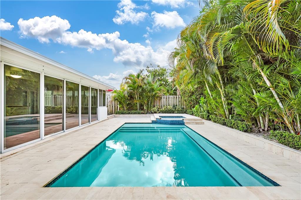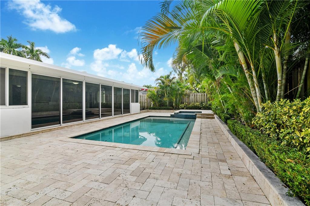 Ultra Contemporary Mid century two bedroom three bath pool home. No expenses spared on this beautifully renovated home. Impact windows doors and glass Impact garage door. Chef's Kitchen all white Italian Kitchen Cabinetry with Wolf induction island cooktop, Wolf double ovens, subzero refrigerator, quartz countertop waterfall Island seats 4 perfect for entertaining. Stunning polished concrete flooring throughout main living area, master bedroom with custom built in walk-in closets. Master bath streamlined finishes with rain shower, 2nd bedroom ensuite with walk in closet, 540 square foot Florida room with its own Inline ac unit, with large kitchen island with running water perfect for entertaining looking out over the beautifully landscaped pool area. Mins to shops of Gateway Plaza