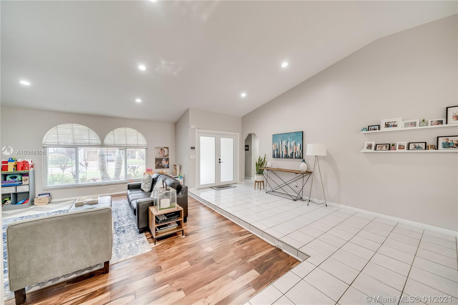 Gorgeous 4 bedroom 2.5 bath lakefront, pool home with 2800 sq ft under living space in Jacaranda Lakes! Oversized, 11,100+ sq ft corner lot! Impact glass windows & doors. Updated kitchen features expresso wood cabinetry, quartz countertops & stainless steel appliances. Breakfast nook. Vaulted ceilings w/ recessed lighting. Tile flooring throughout living areas and updated flooring in bedrooms & living room. Stunning master bath w/ stand-alone tub, frameless shower enclosure, double vanity & plank tile flooring. Master walk-in closet w/ built-in cabinetry. Remodeled secondary baths. Indoor laundry room. Travertine marble patio deck. Heated pool. Large screened in overhang area. Child safety fence around the pool. Roof (2005). Rheem AC (2015). Zoned for A rated Central Park Elementary!