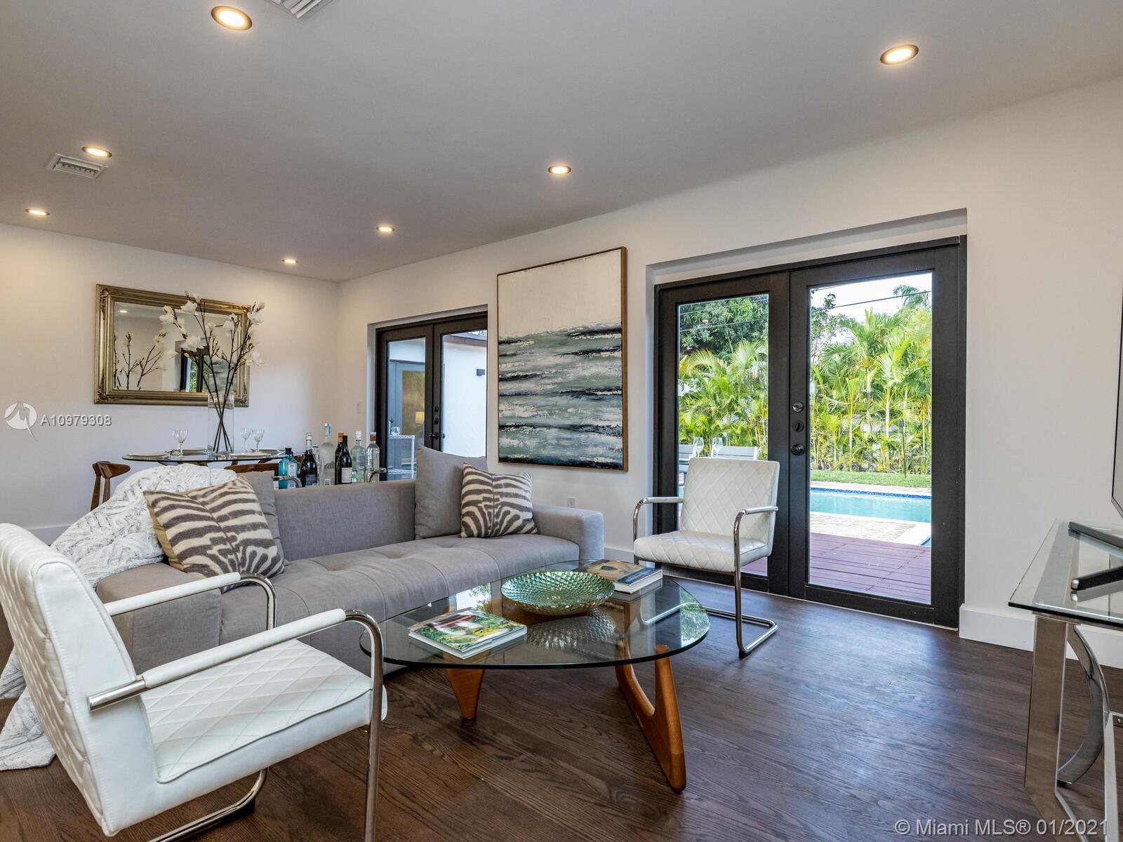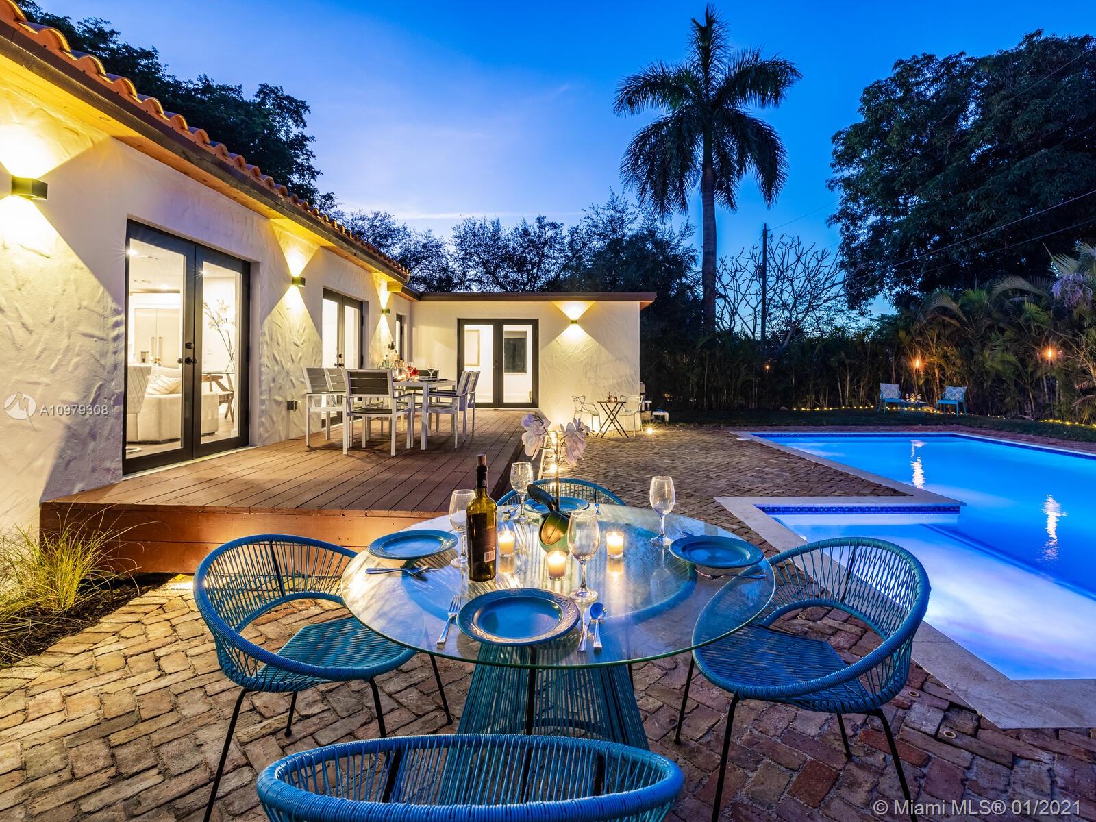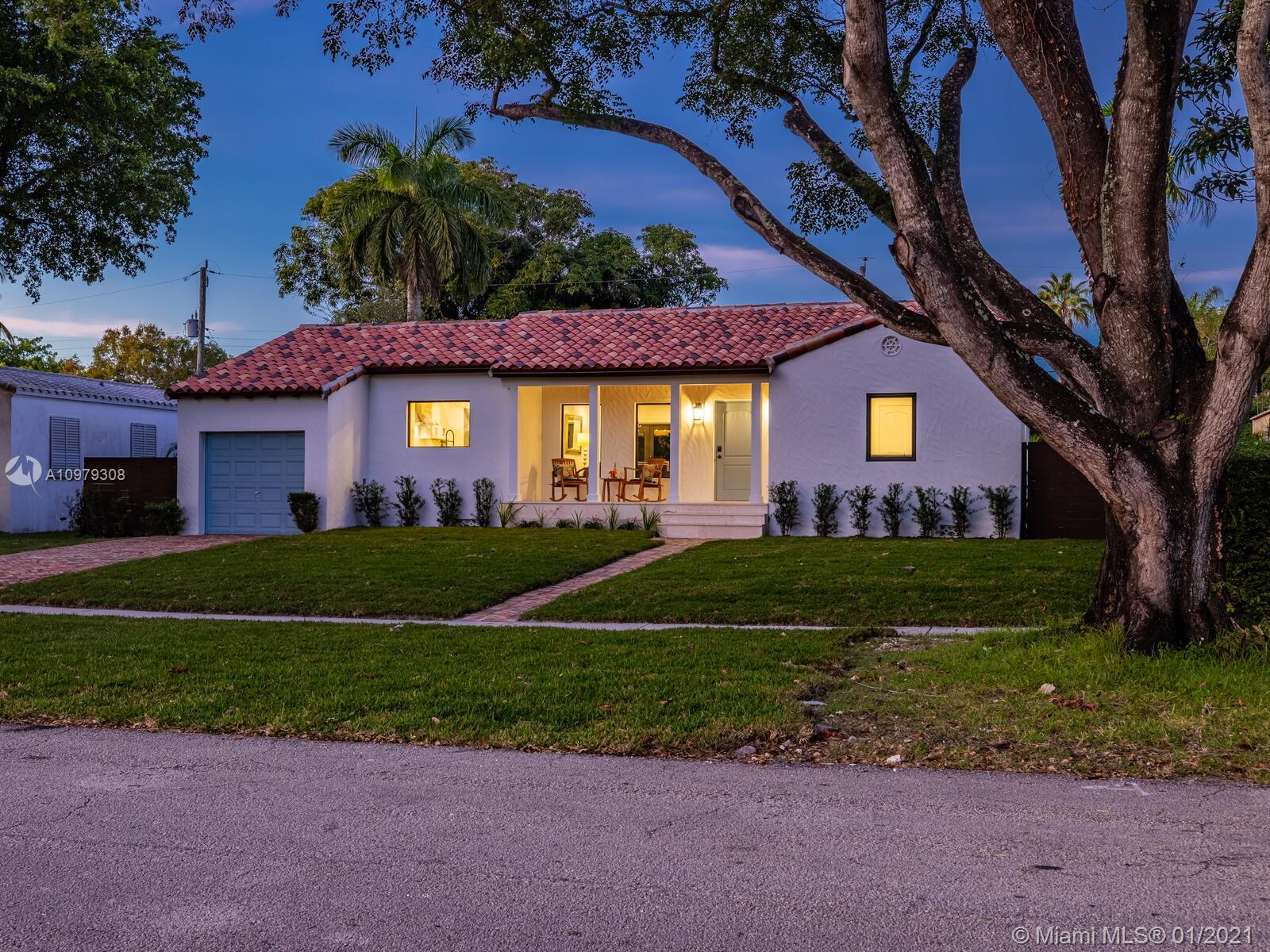 Welcome to the Villa Blue Sky! Live large at this five-star renovated Tuscan-style resort home in the heart of Miami Shores! Gorgeous, completely remodeled bright, light pool retreat with spectacular open multi-functional living, dining, media room and office overlooking a sweeping deck and sparkling L-shaped pool compound. So much space to entertain, play and relax! Gourmet chef’s kitchen with Thermador gas range, oversized refrigerator, wine cooler and large eat-in island. Down the hall-- the master suite retreat with doors to the pool. Hello, midnight swim! Split plan with two spacious guest rooms in other wing. All new: roof, impact windows-doors, electric, plumbing-septic, kitchen-baths, AC, wood floors. Plus a separate laundry room and enclosed garage. All in a great quiet location!