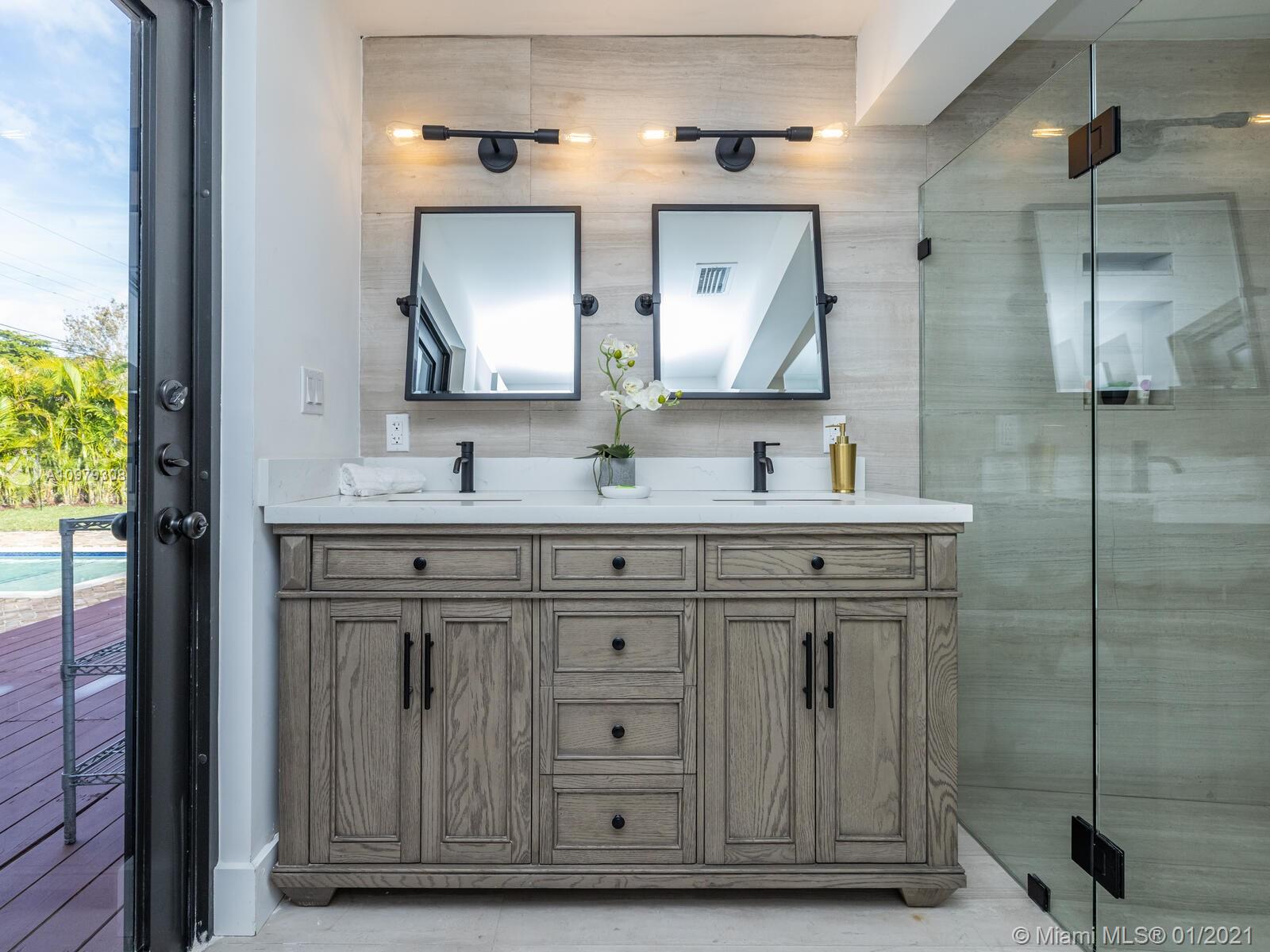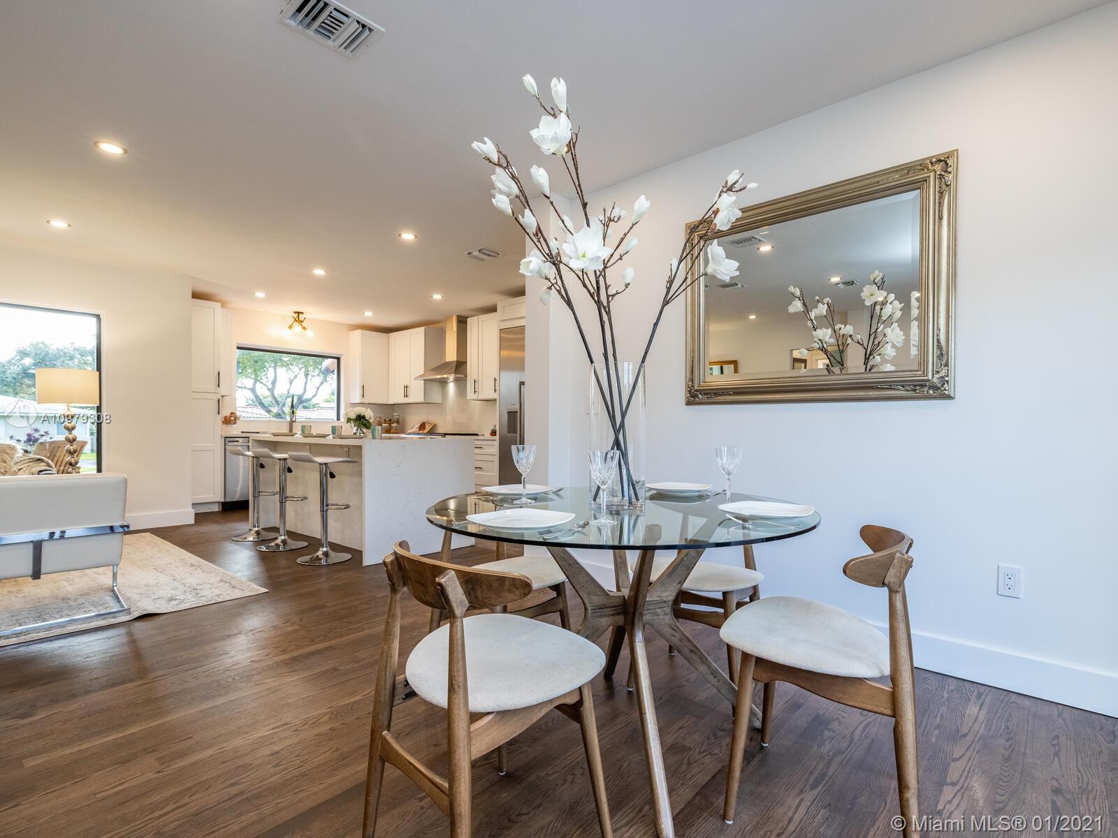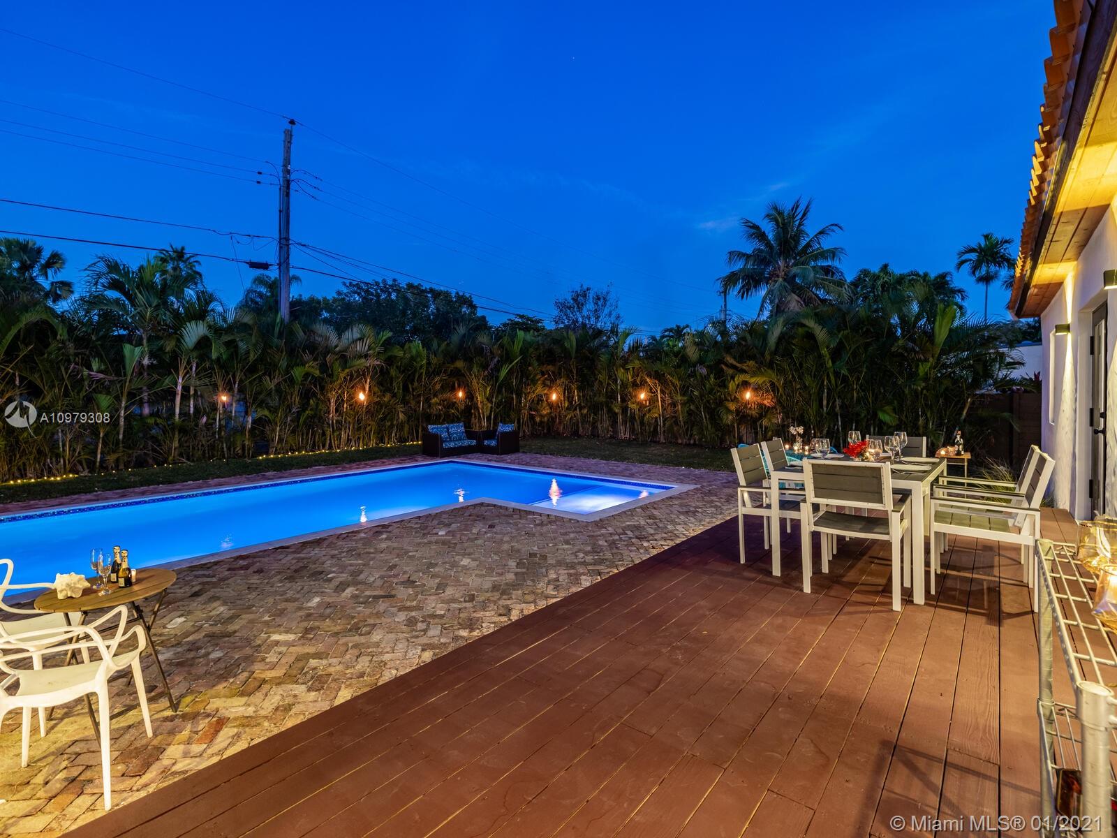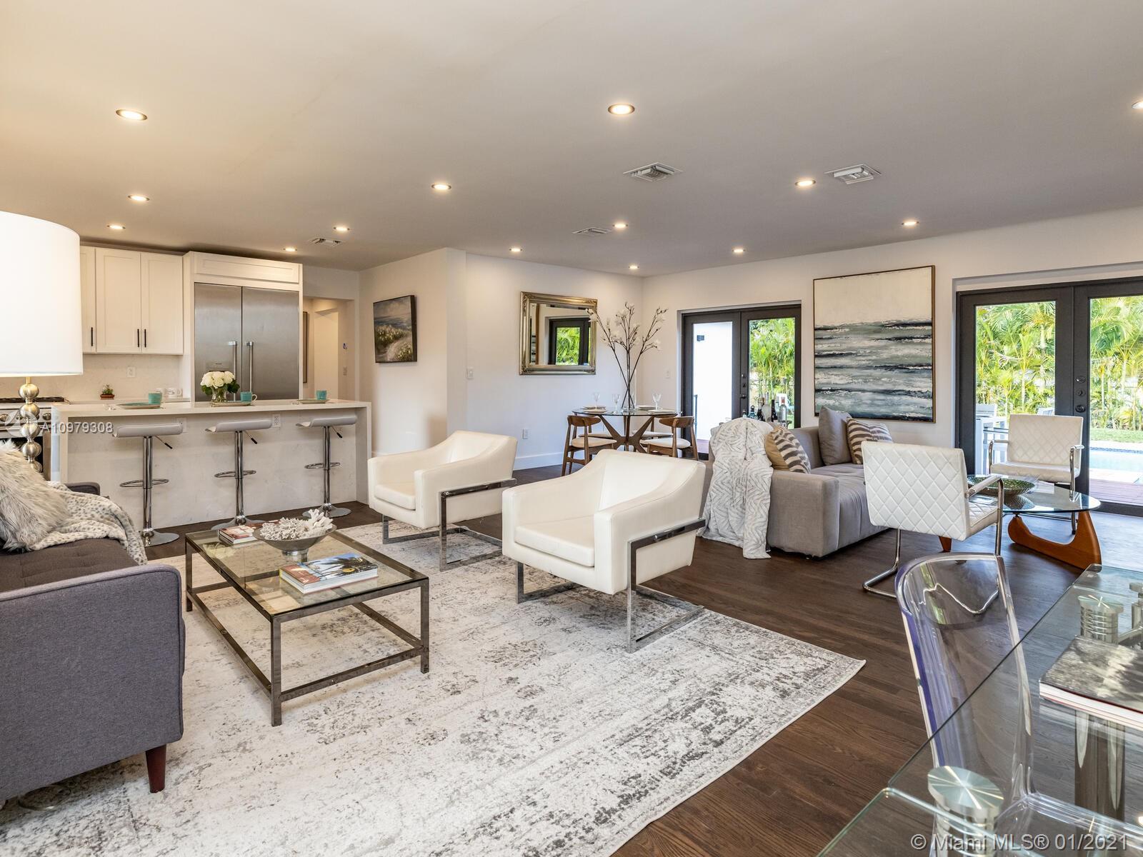 Welcome to the Villa Blue Sky! Live large at this five-star renovated Tuscan-style resort home in the heart of Miami Shores! Gorgeous, completely remodeled bright, light pool retreat with spectacular open multi-functional living, dining, media room and office overlooking a sweeping deck and sparkling L-shaped pool compound. So much space to entertain, play and relax! Gourmet chef’s kitchen with Thermador gas range, oversized refrigerator, wine cooler and large eat-in island. Down the hall-- the master suite retreat with doors to the pool. Hello, midnight swim! Split plan with two spacious guest rooms in other wing. All new: roof, impact windows-doors, electric, plumbing-septic, kitchen-baths, AC, wood floors. Plus a separate laundry room and enclosed garage. All in a great quiet location!