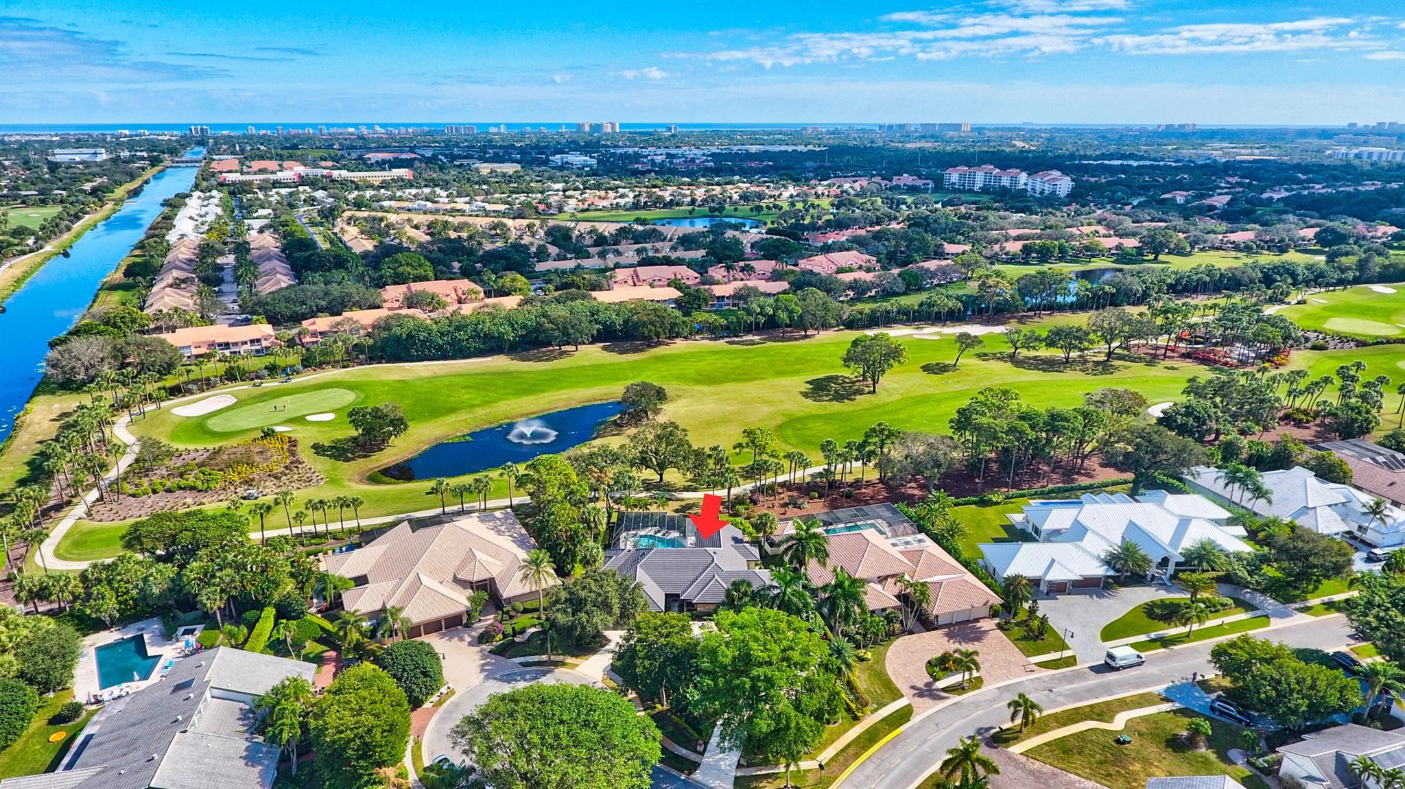 An oasis in the sun!!! Stunning half acre lot with serene golf course views and gorgeous gardens! Located on a quiet cul de sac, this spacious home boasts a new roof, newly screened lanai, new AC units, vaulted ceilings, two laundry rooms, separate his and her master baths, tons of storage, and wet bar. Three large bedrooms, plus a study (can be a 4th br), built in BBQ, pool bath and massive screened patio around the pool for entertaining! Well maintained home in the exclusive Bocaire Country Club. No tee times on new renowned championship golf course. Active tennis, golf, fitness programs, high end dining and social life. Only 238 homes in this friendly and inclusive community. Mandatory membership. A rated school district, close to beaches, shopping, restaurants. A must see!
