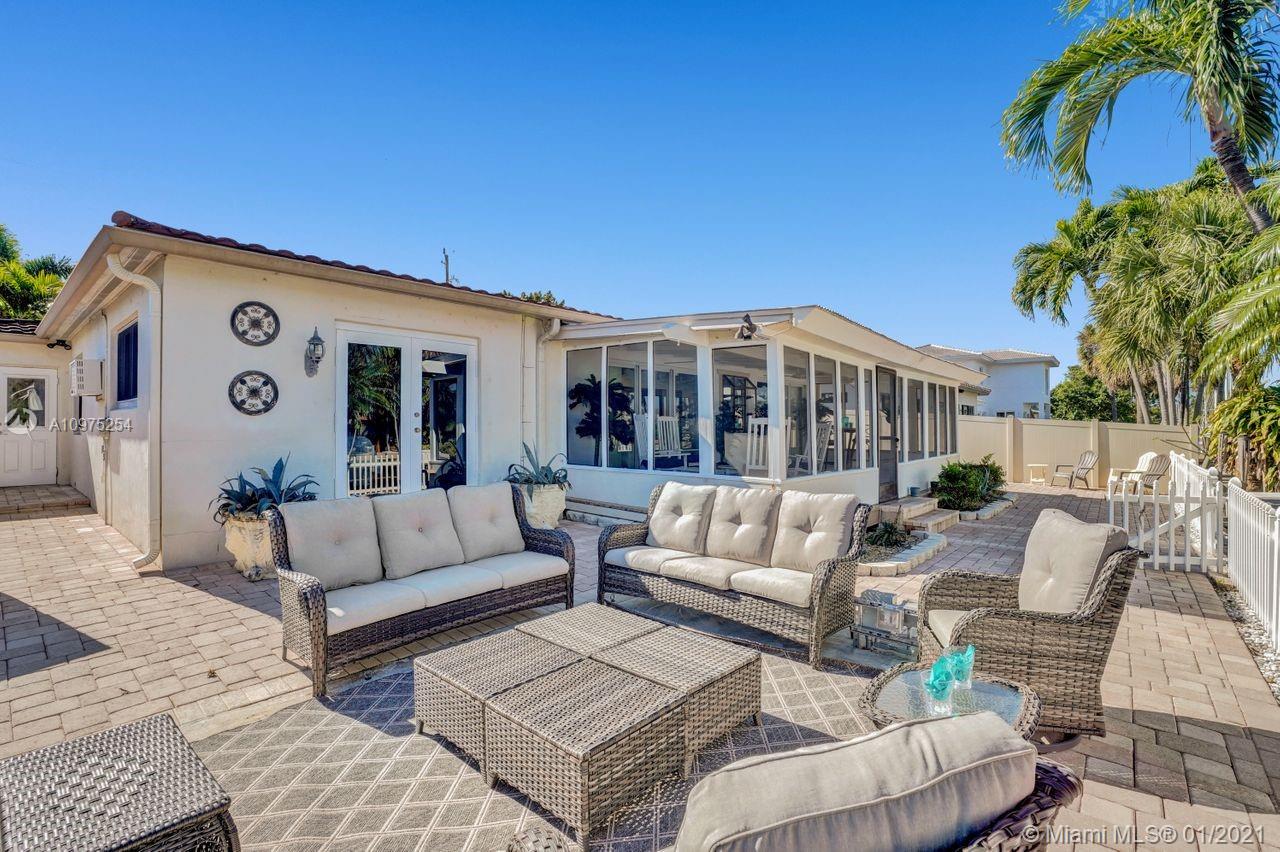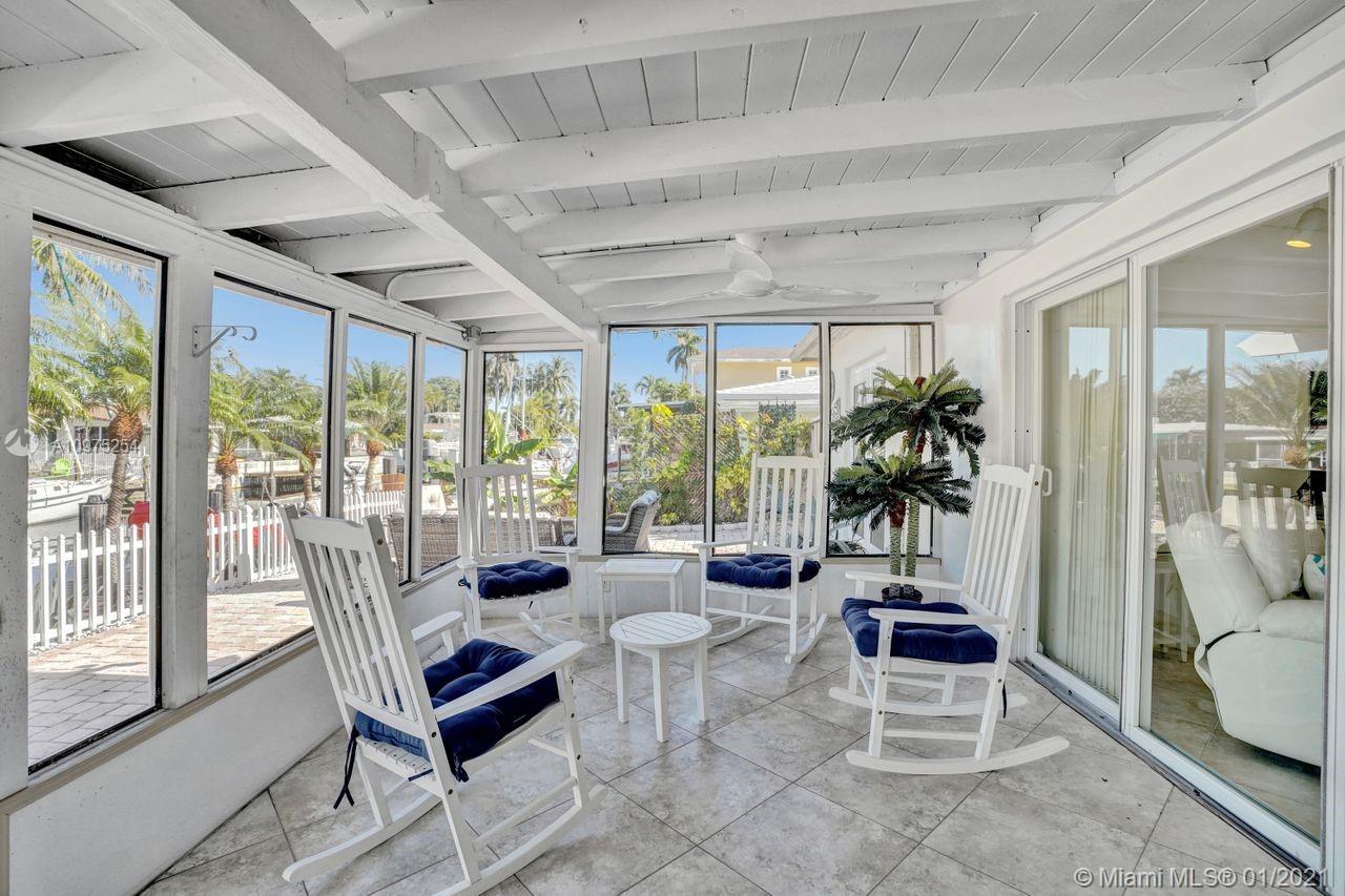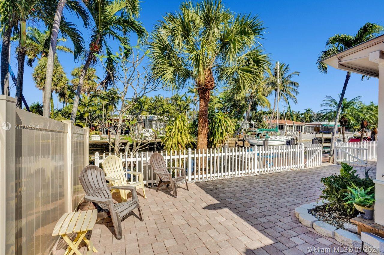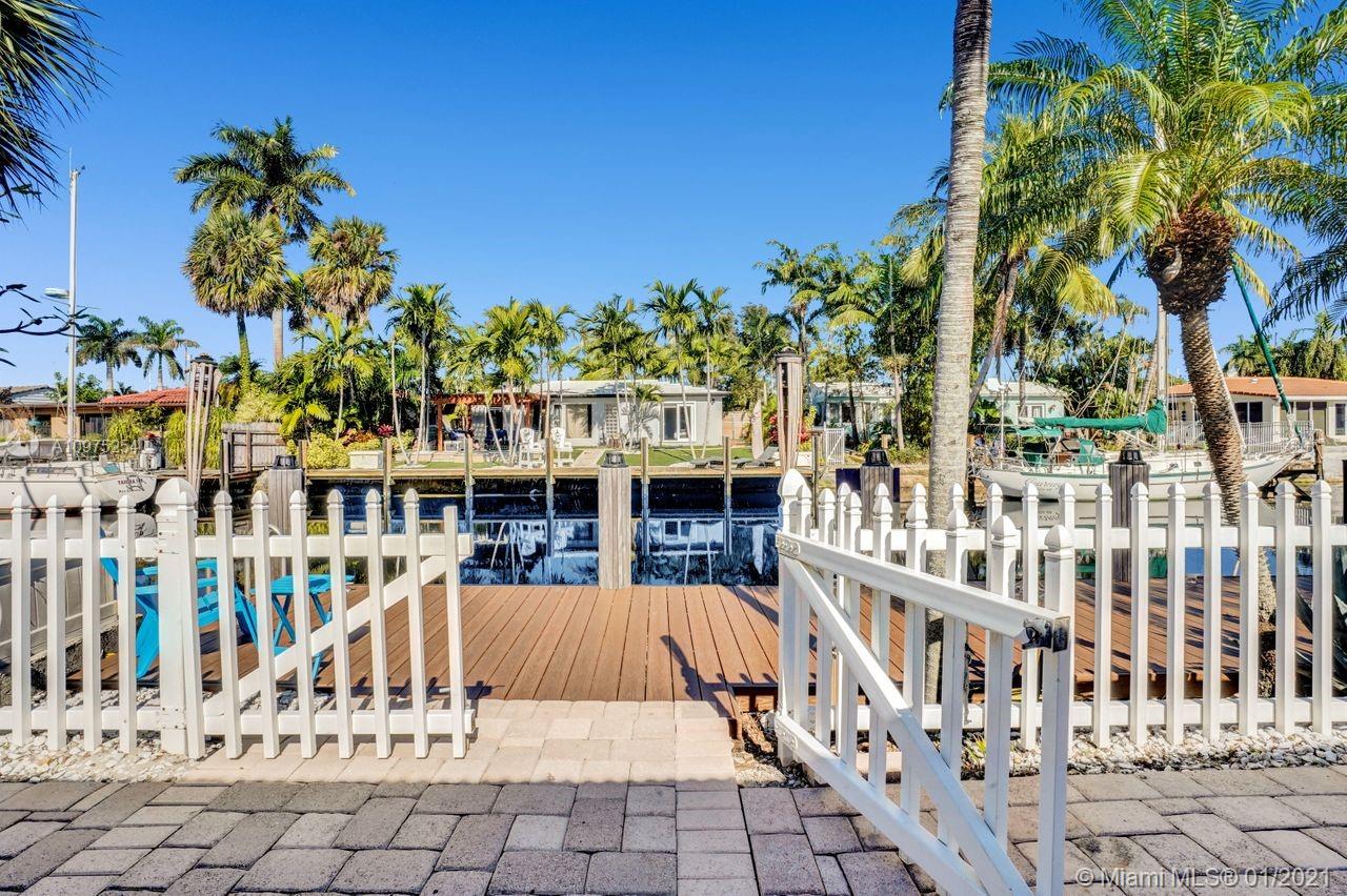 Bring your boat-waterfront beauty- -doubled in size in 2008 2,220+SF. 3 bed + den/office & 2 1/2 bath. Impact doors & windows, pavered circular driveway w/1-car garage & large rear screened-in patio. Dock/seawall & new Dingy in great condition -65' on water, in-water color accent lights. Fully fenced, space to entertain, BBQ gazebo w/pass-thru to kitchen, shed w/power outlets & outdoor shower. BIG master suite w/walk-in closet, high ceilings, ensuite bathroom w/Jacuzzi tub, shower, toilet room & vanity. Open kitchen w/wood cabinets, desk, counter bar & gas stove. Big Florida Room w/wall of windows out to dock. ADT security, 2 ACs. NOT A TEARDOWN. Laundry in epoxy floor garage w/TV. Office was 2nd car garage. Ocean access, no fixed bridges. Galvanized roof. Larger than SF on record