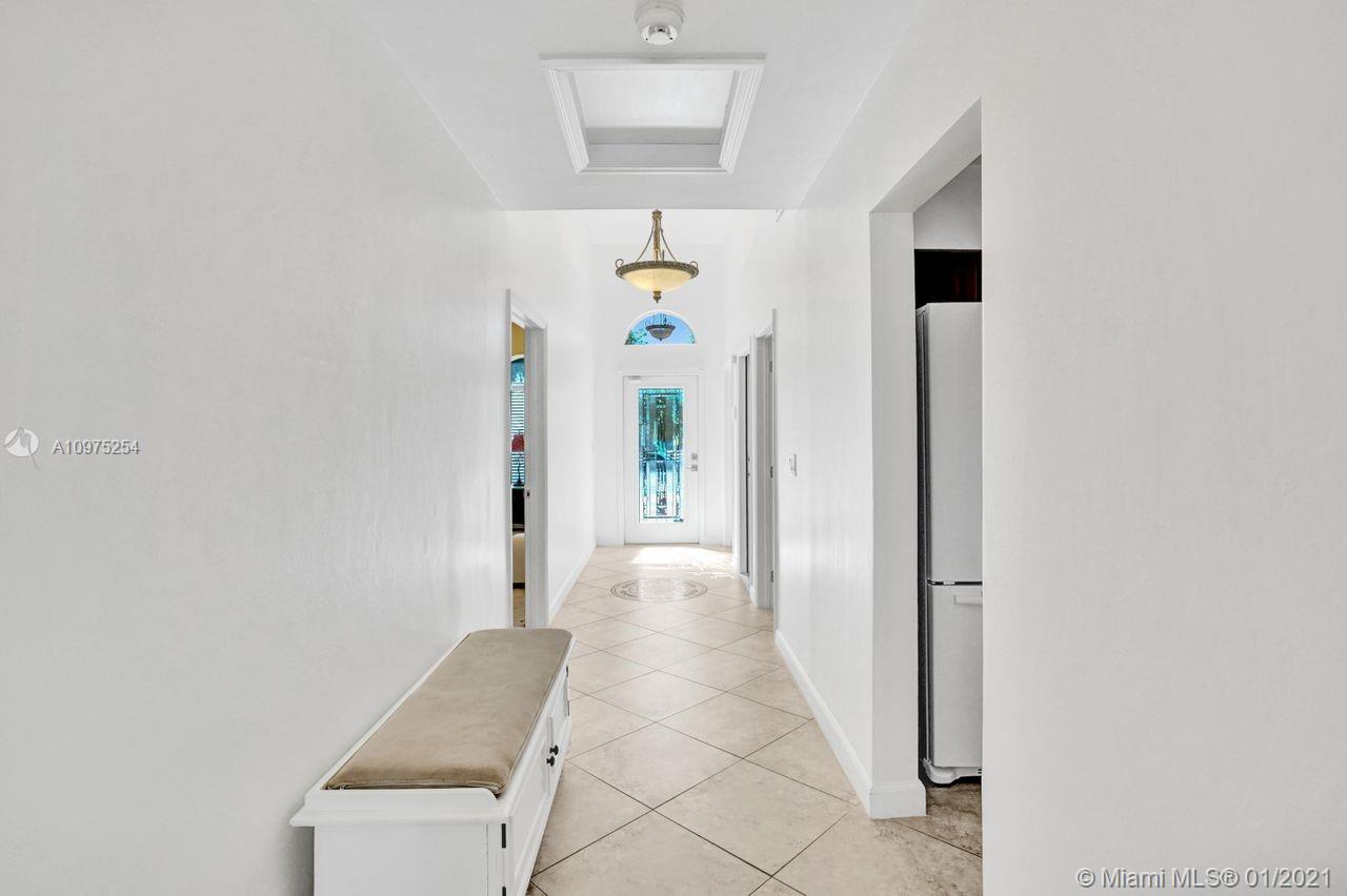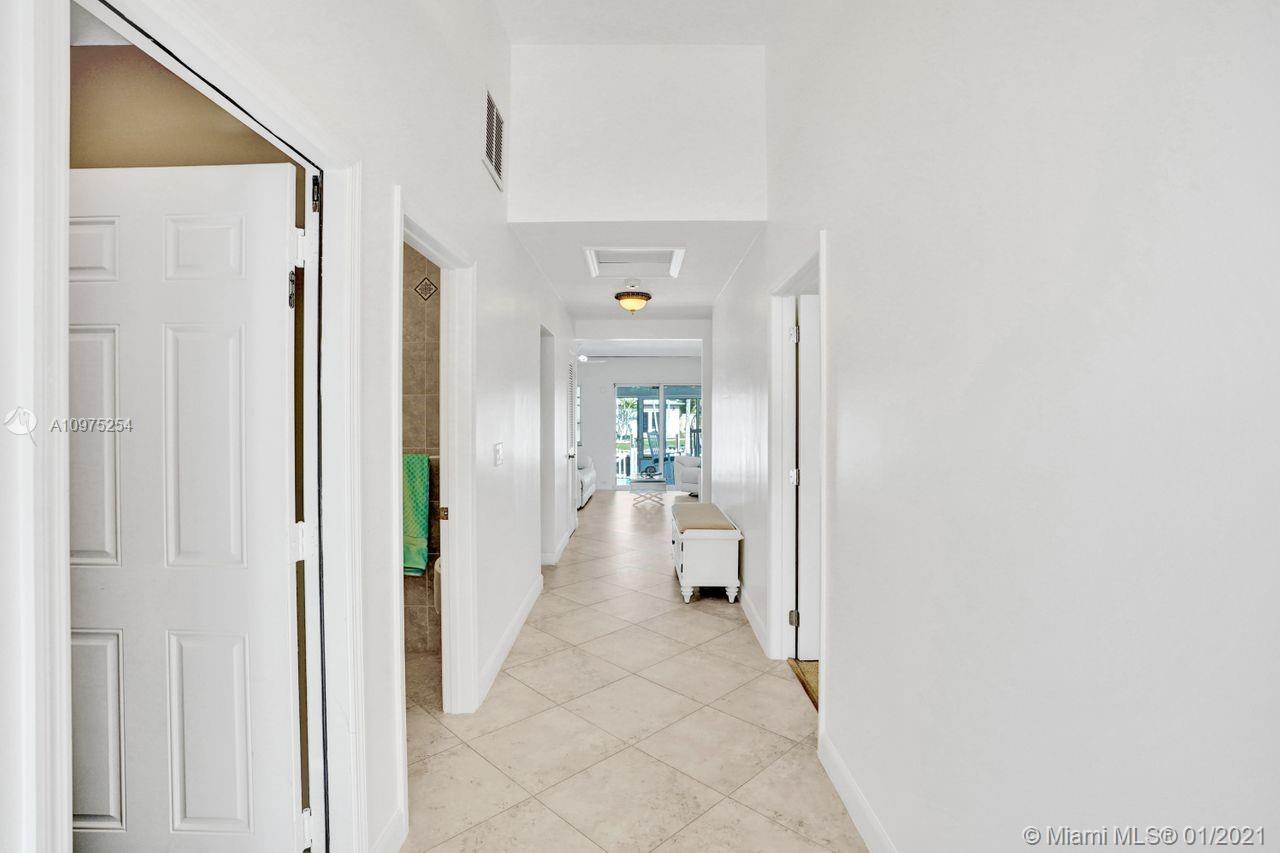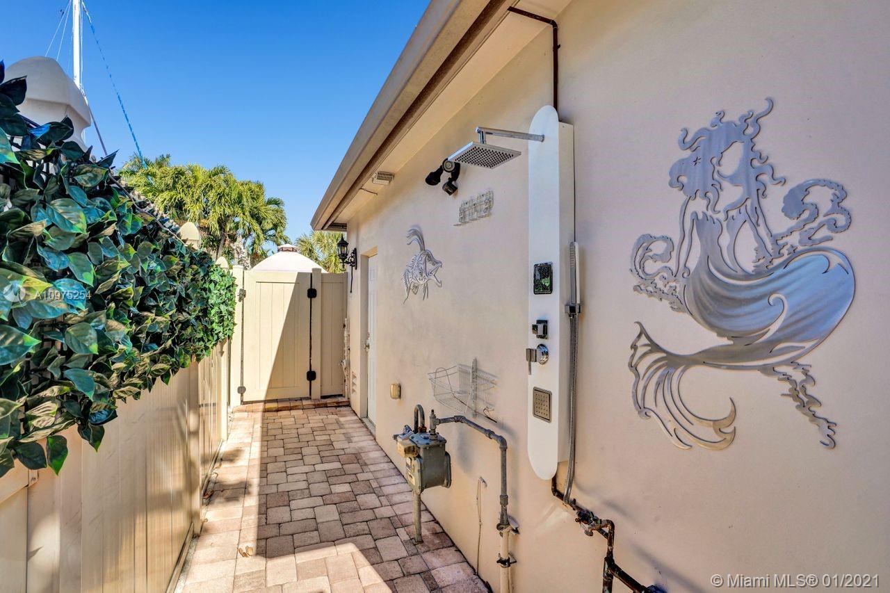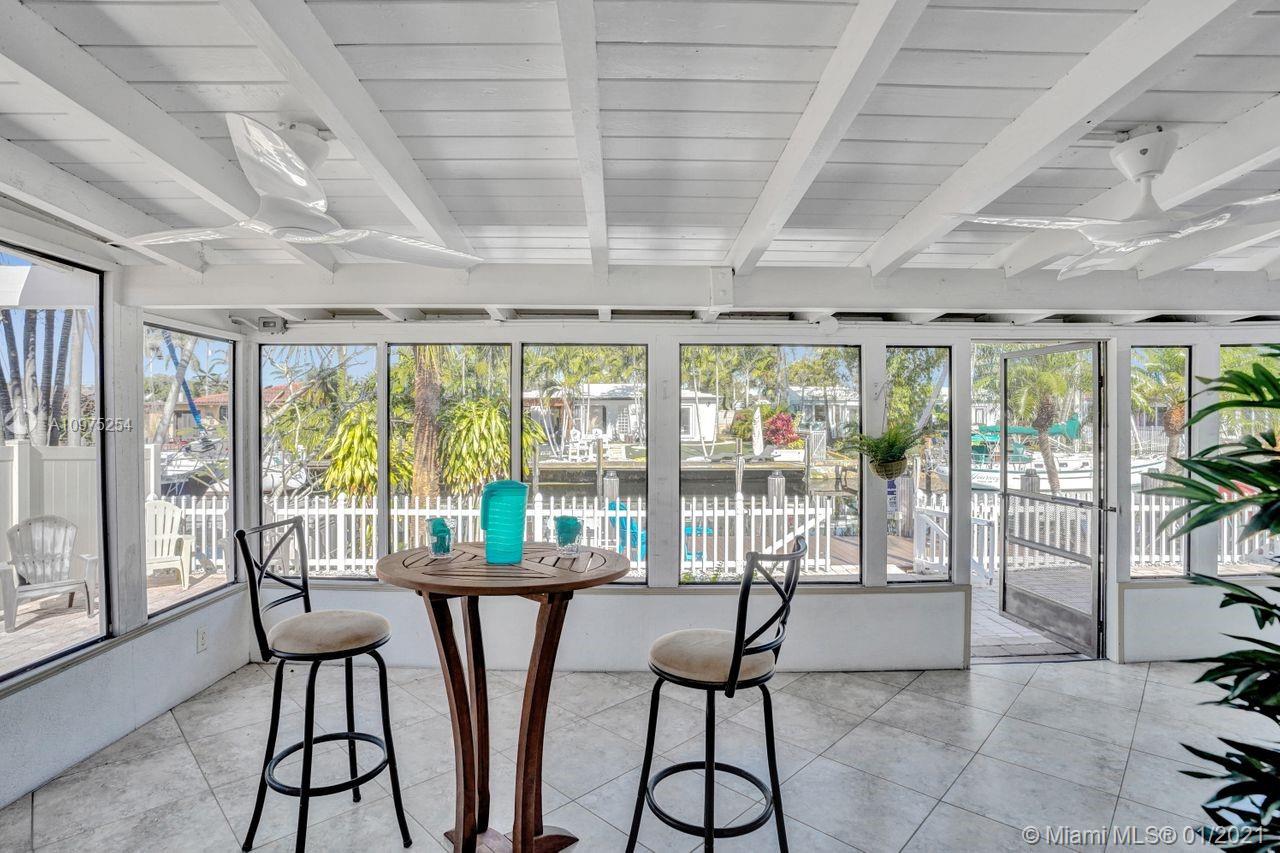 Bring your boat-waterfront beauty- -doubled in size in 2008 2,220+SF. 3 bed + den/office & 2 1/2 bath. Impact doors & windows, pavered circular driveway w/1-car garage & large rear screened-in patio. Dock/seawall & new Dingy in great condition -65' on water, in-water color accent lights. Fully fenced, space to entertain, BBQ gazebo w/pass-thru to kitchen, shed w/power outlets & outdoor shower. BIG master suite w/walk-in closet, high ceilings, ensuite bathroom w/Jacuzzi tub, shower, toilet room & vanity. Open kitchen w/wood cabinets, desk, counter bar & gas stove. Big Florida Room w/wall of windows out to dock. ADT security, 2 ACs. NOT A TEARDOWN. Laundry in epoxy floor garage w/TV. Office was 2nd car garage. Ocean access, no fixed bridges. Galvanized roof. Larger than SF on record