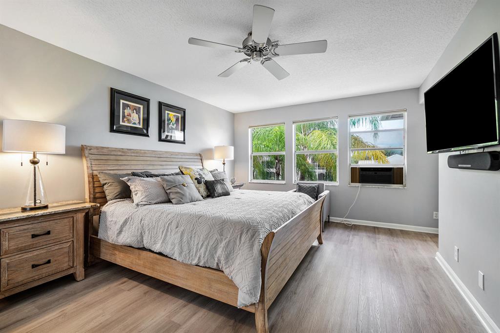 Welcome home to this beautifully renovated two-story lakefront home in Boca Pointe, one of Boca Raton's only membership-optional country club communities. This spacious 3-bedroom home boasts over 2,400 square feet of living space and is one of the only homes with a private pool. Newly renovated contemporary kitchen with sleek cabinetry with pull-outs, Quartz counters, and stainless steel appliances. Volume ceilings in the living room with tons of natural light. New wood-look flooring throughout. Roof was replaced in 2010.