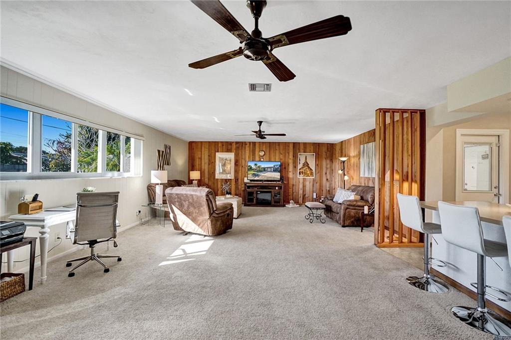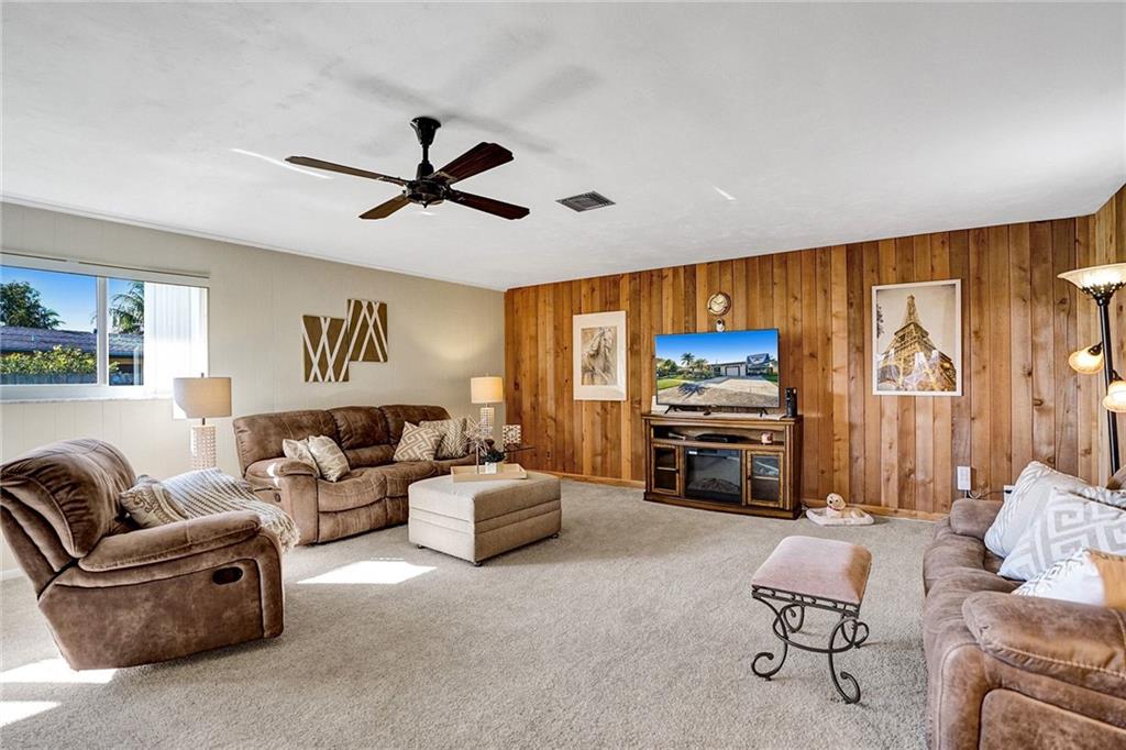 You will be amazed! Captivating custom features throughout this meticulously cared for Riverland home w/garage. Friendly covered front deck (20x15). Comfortable living room. Big classic kitchen enhanced by cafe counter, movable island, fully applianced, lots of cabinets/pantry. Grand family room (40x20) fit for a big, big screen and formal dining area, French doors out to large screened patio .. just perfect for entertaining! Each bedroom with its own personality, Murphey bed in 2nd bedroom, renewed baths. Sunny laundry room has added storage cabinets. Private fenced back yard. Storage shed/electric for workshop. 16X8 cement slab for recreational. Hurricane impact windows, panels for doors. Double-wide driveway. Unbeatable location convenient to everything. Perfect choice. Check it out!