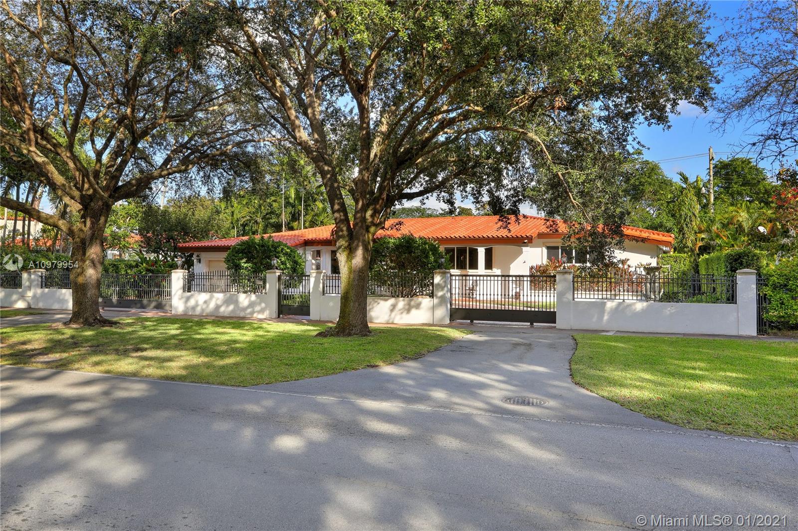 This elegant & spacious Ranch-style 4 bedroom/3.5 bathroom gated home is situated on one of the most sought after & gracious Boulevards in Coral Gables. Just a few blocks to the Granada Golf Course & Country Club within close proximity to downtown Coral Gables and recreational parks like Majorca Park, Salvador Park and the famous Venetian Pool. The entrance has a grand foyer that leads into a formal living & dining room with bay windows.Adjacent is the renovated kitchen with wood cabinets, granite counter tops and stainless-steel appliances.The family room has wall-to-wall picture windows offering lots of natural light & overlooking the covered patio. Added features; updated bathrooms, impact windows & doors, original wood floors, circular driveway with an electric gate and a 2-car garage.