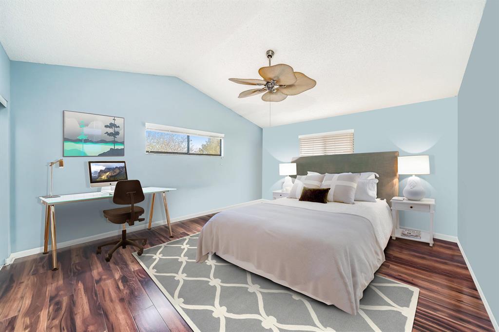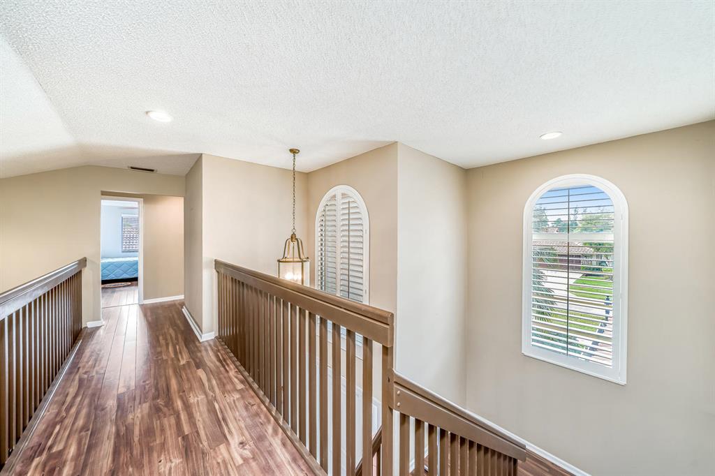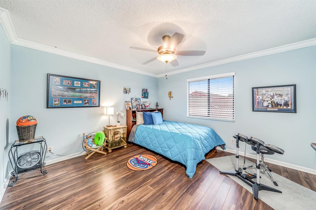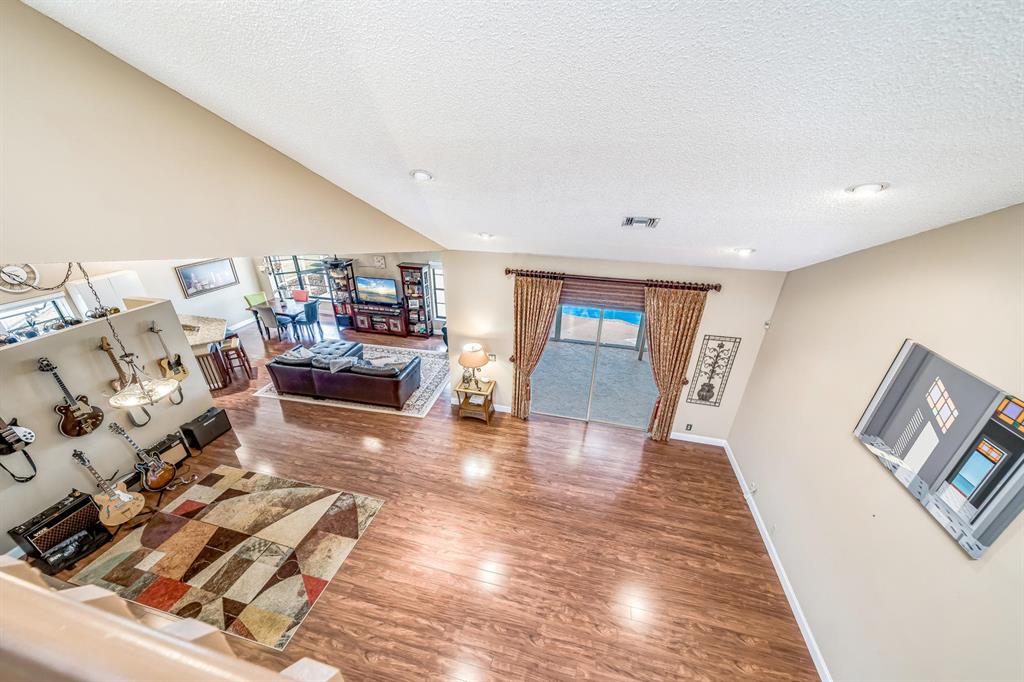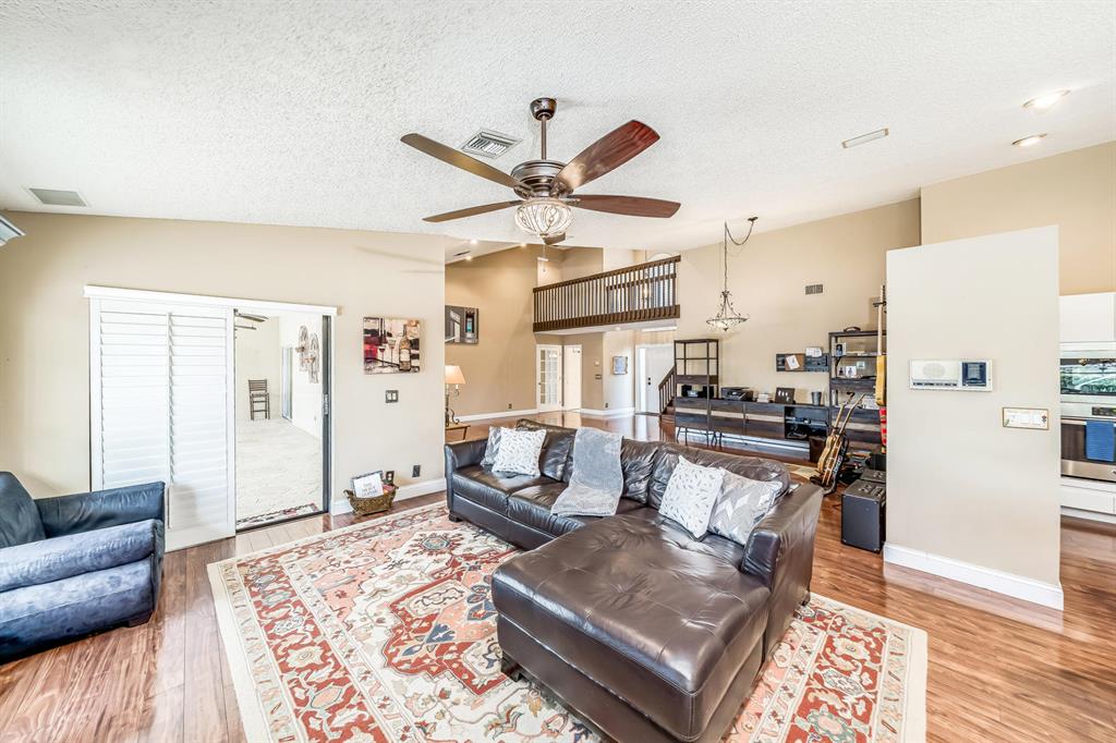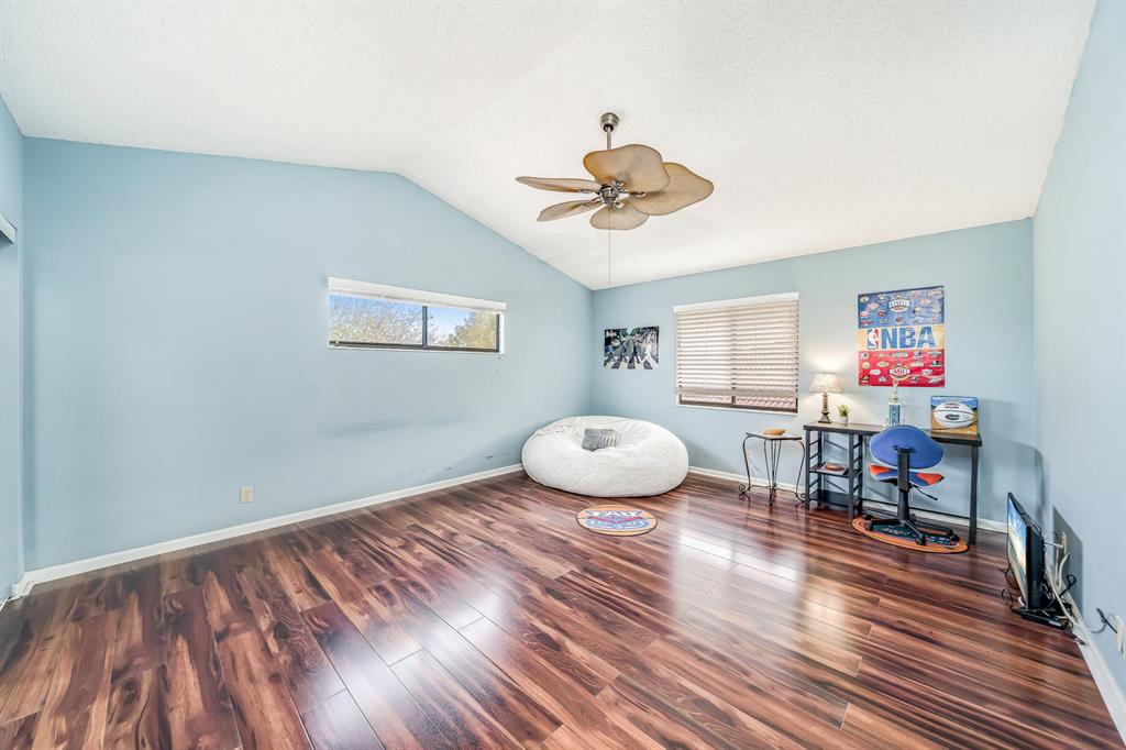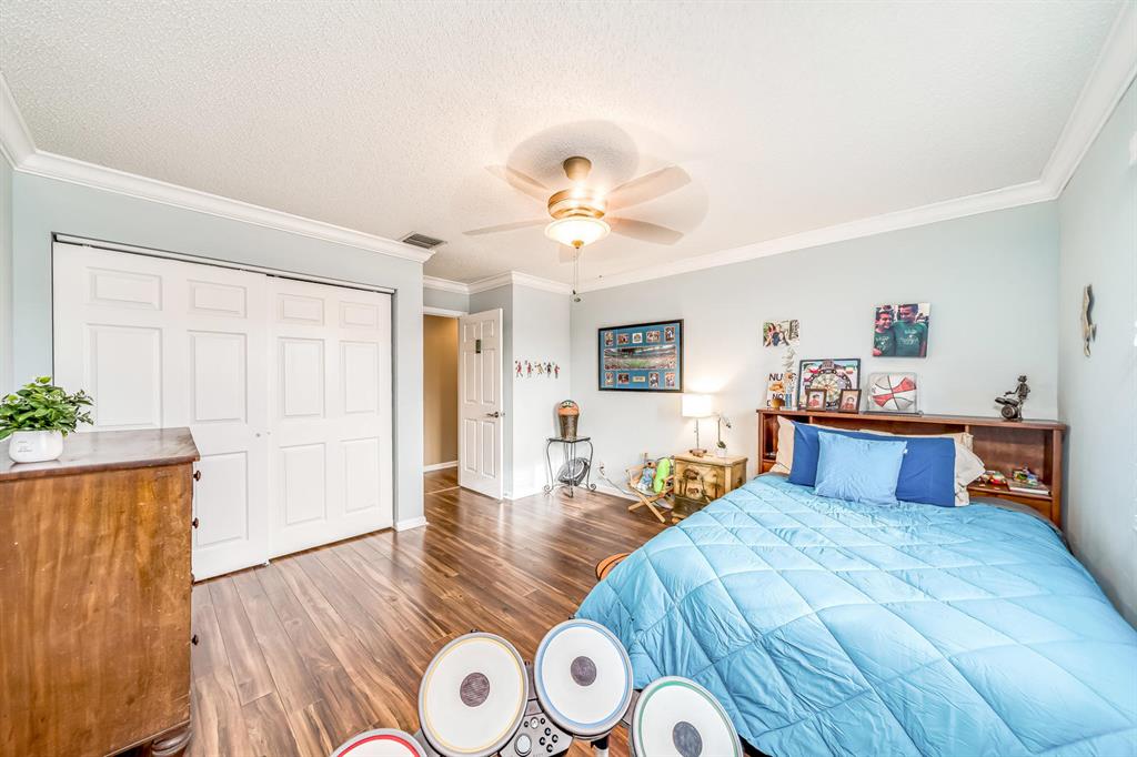 Island Lakes Waterfront Pool Home on a Huge Corner Lot with almost a half acre Plus magnificent lake views. Five true spacious bedrooms, 3.5 baths & 3 car garage, w/soaring cathedral ceilings, open floor plan w/laminate flooring throughout home & tile in the bathrooms. A very rare find-master bedroom and 2nd bedroom on the ground level and other 3 bedrooms on 2nd level. Crown molding, plantation shutters, & recessed lighting. Gourmet kitchen features SS appliances including French door fridge, wall oven and microwave, glass cooktop with stainless hood vent, granite countertops, pantry and more! Eat in area & expansive family room off the kitchen. Large Living and dining room as well. Large master suite features huge walk in closet, a large master bath &