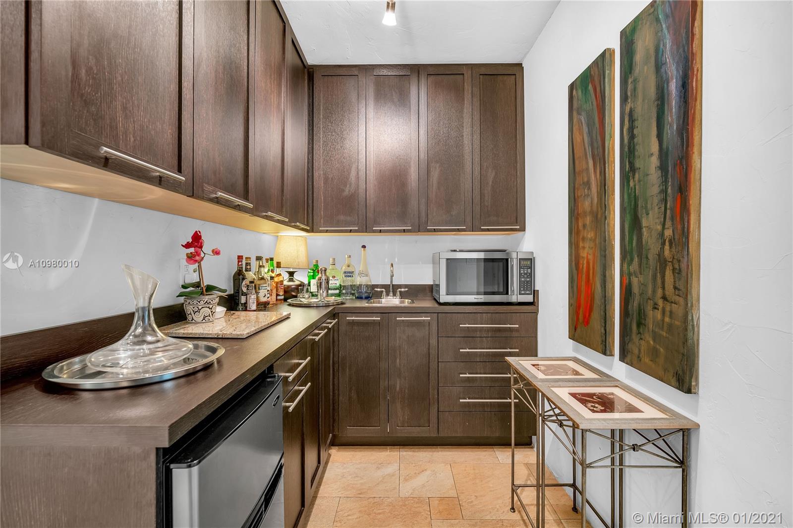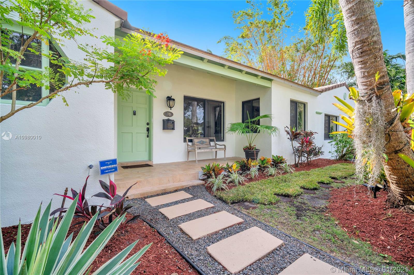 A cohesive mix of classic charm and contemporary style, this 3 bed/2 bath central Miami Shores home boasts unique features including living room with vaulted cypress ceiling, dual-sided natural-gas fireplace, and an expansive great room with modern kitchen and butlers pantry with its enormous custom island and views of your tropical gardens and gorgeous 36 foot swimming pool. There is room to grow on this double lot which includes specimen palms, fragrant Ylang Ylang trees, and productive fruit trees. There is a full sprinkler system that works with well water. The home's square footage is larger than recorded. Appraisers sketch is available on request. Walking distance to shops, parks, and restaurants, come and see why this hidden paradise retreat should be the one you call home.