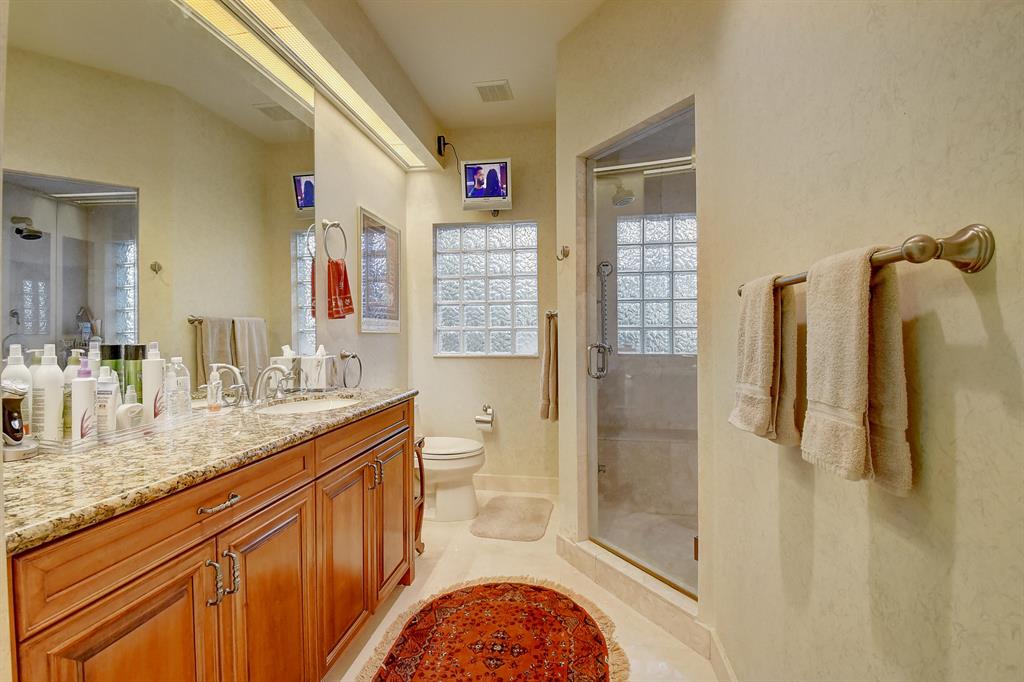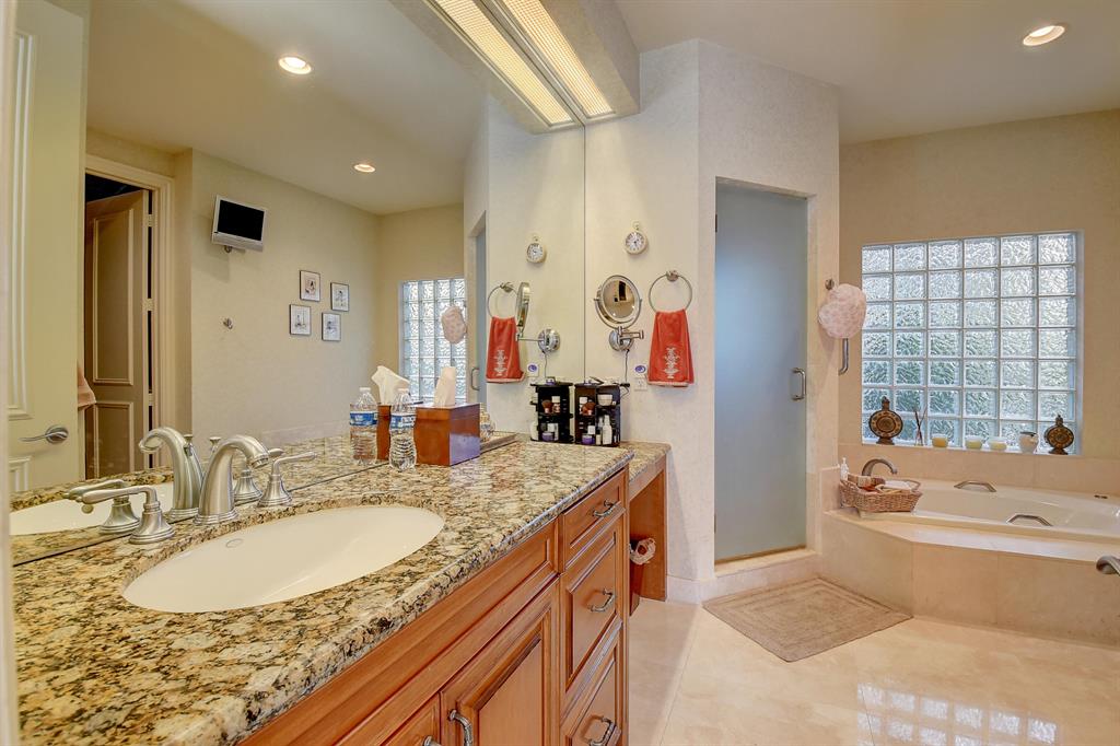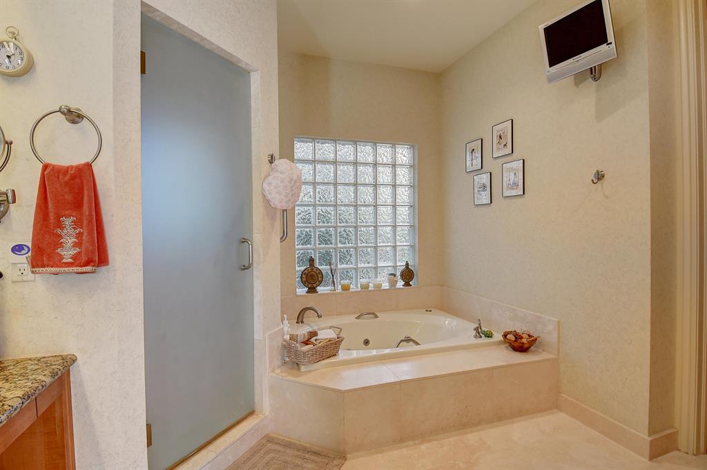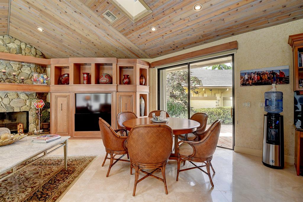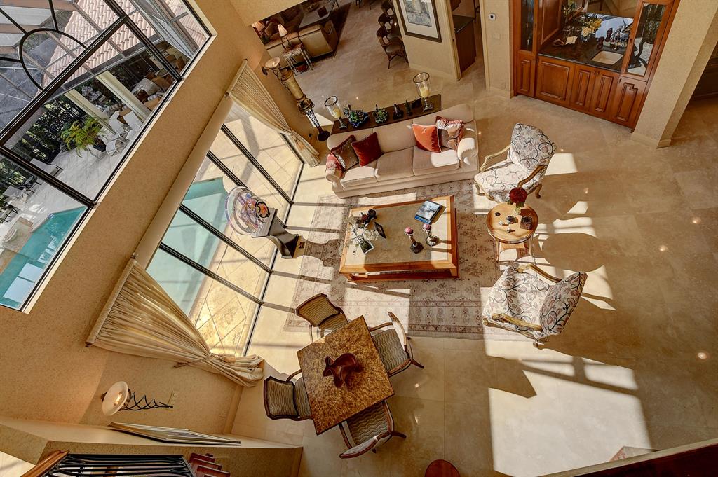 Magnificent custom built 5 bedroom plus office, 5 bath + 2 half baths, 2 story home on choice oversized golf course lot. Southern exposure. Large screened in pool + spa/patio area. Separate covered entertainment area. Main level master bedroom has separate his and her bathrooms each with their own large closet. Separate office with full bath that could be used as an additional bedroom. Open kitchen to the family room with a fire place, large screen TV and breakfast area. Separate living room and formal dining room with bar. Stereo system with speakers throughout the house. Impact windows throughout. Outside covered entertainment area with hurricane shutters. Full two car garage with golf cart area. Large circular driveway. A very light and bright contemporary home with lots of windows.