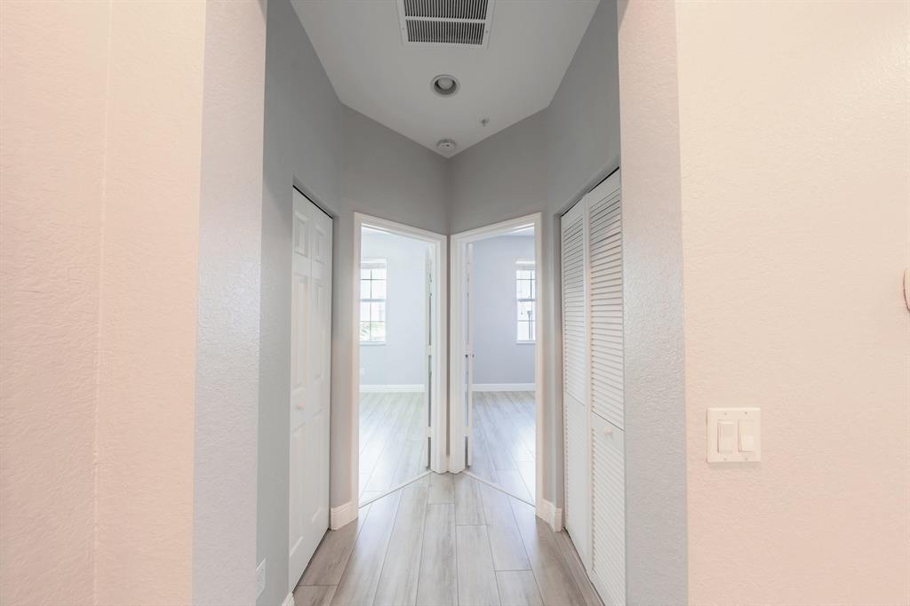 Beautiful, newer construction townhome located in the heart of west Miramar. Enter into a spacious living/dining area with beautiful ceramic tile flooring and a large pass-through to the kitchen. The kitchen features granite countertops and stainless-steel Whirlpool appliances. A powder room is also located on the main level, as well as access to the 2-car garage. Newly installed, 100% waterproof laminate flooring up the stairs and throughout the entire second floor. At the top of the stairs, you will find a large loft space (12' x 13'4'') which separates the master from secondary bedrooms. Perfect for a home office or kids play area. Two great-size bedrooms and shared bathroom on the left side of the loft, and a large (12'4'' x 15'6'') master bedroom to the right.