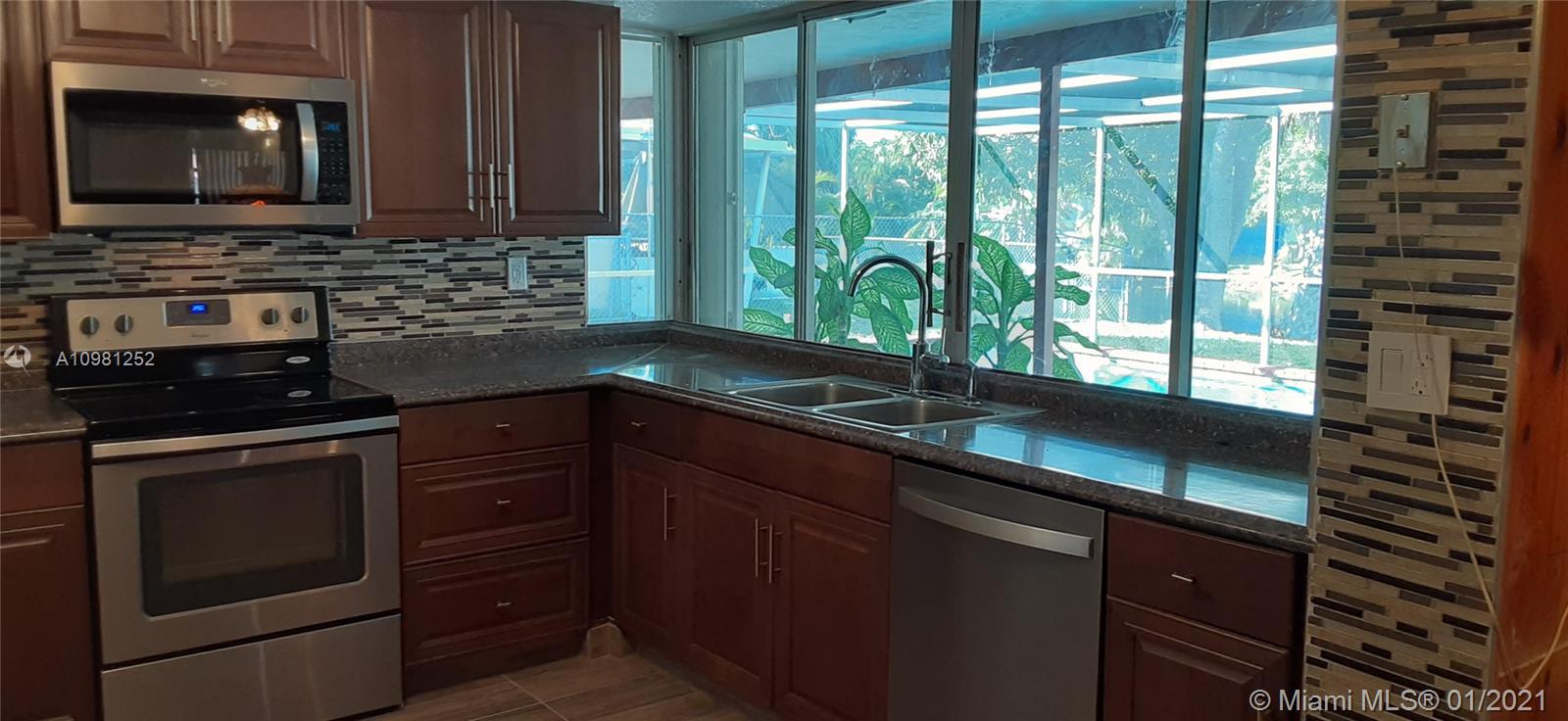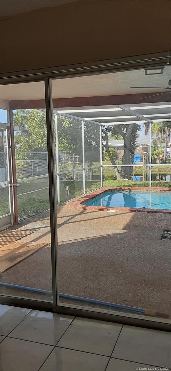Beautiful well kept pool house located in the community of Sunrise Golf Village features 3 bedroom and 2 bedroom with two car garage. Spacious kitchen with all new stainless steel appliances, with a window to the pool area, perfect for entertaining and not missing any fun. Master bedroom has a large walk-in closet. Enormous screened patio. Relax around the pool while watching nature. Amazing view of the canal from every room of the house. Fruit trees. New accordion shutters. Close to school, shops, banks, Pine Island Rd and a few minutes from I-595.