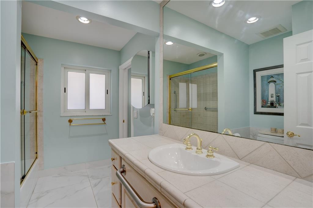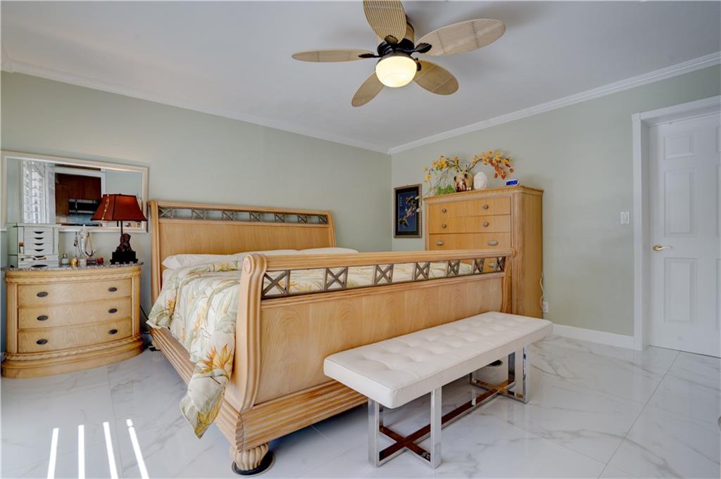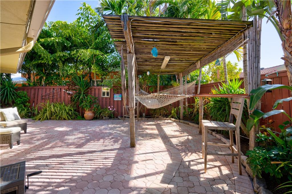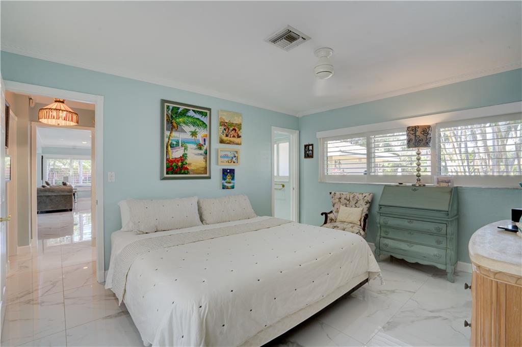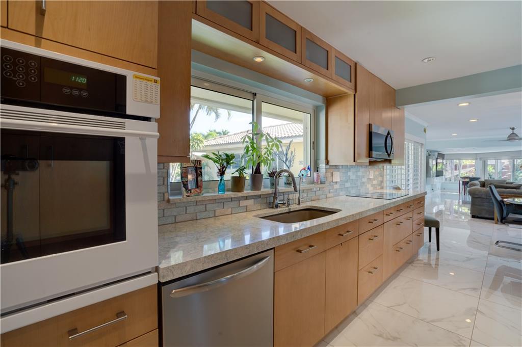 Welcome home to this terrific Coral Ridge home, located on a very low traffic street, yet walking distance to movies, shopping, restaurants and more. This home features a great open floor plan with split bedrooms, 32x32 porcelain tile throughout and plenty of space to entertain. All bedrooms are spacious with good closet space and the outdoor areas are designed for low maintenance with great hidden niches designed to allow you to enjoy the outdoors and beat the heat. The pool gets year round sunshine and there's a private outdoor shower. Impact windows with accordion shutters give dual protection, whole house generator and water purification system, too. 2 car garage with lots of parking and a short bike ride to the beach, this location is so private yet in the middle of everything!