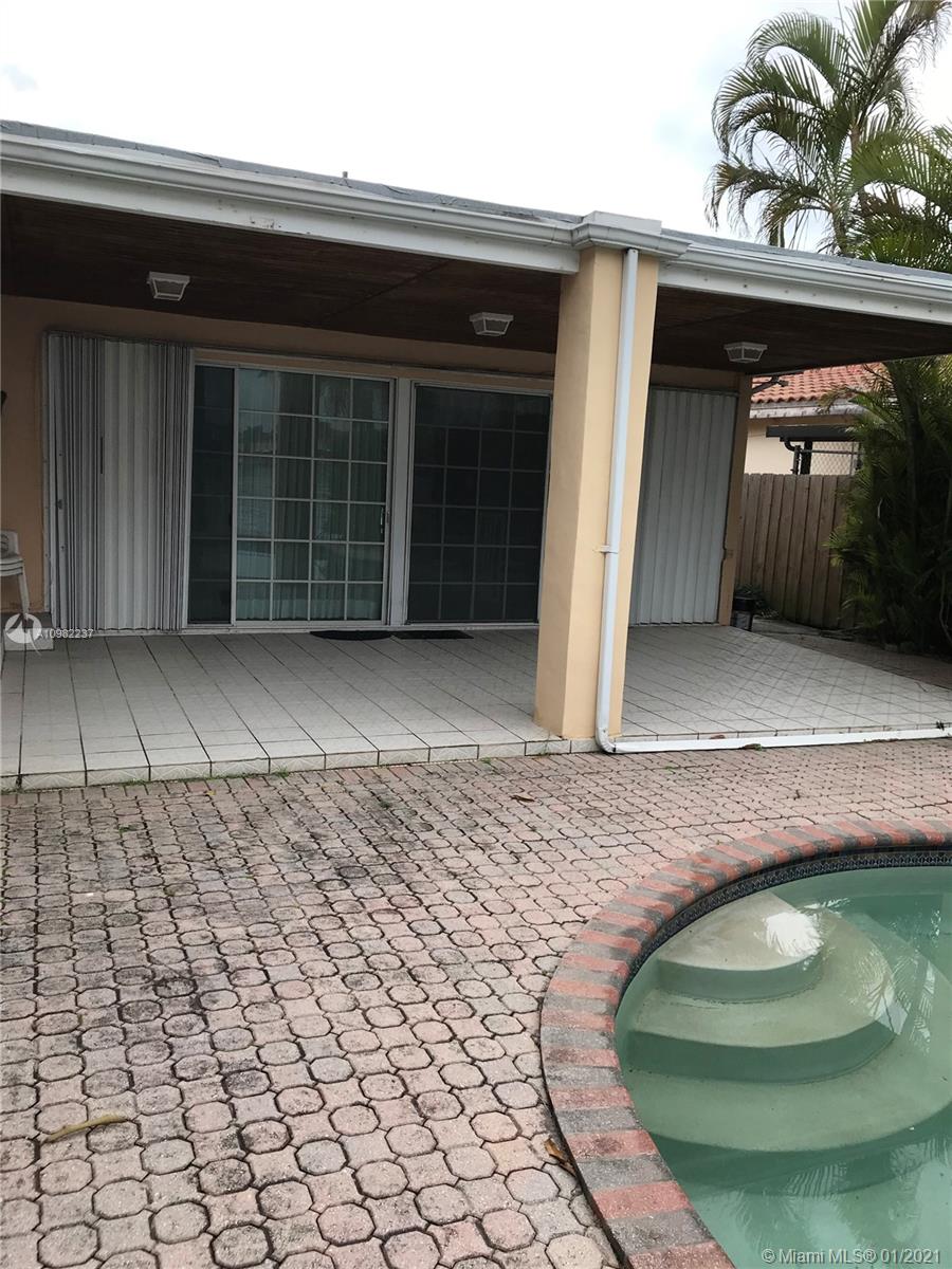 Waterfront pool home in gated community open bay 3 bedrooms and 3 bathroom open floor plan with utility/laundry covered front porch , large covered patio just blocks from beach and Bal Harbour Sold As Is