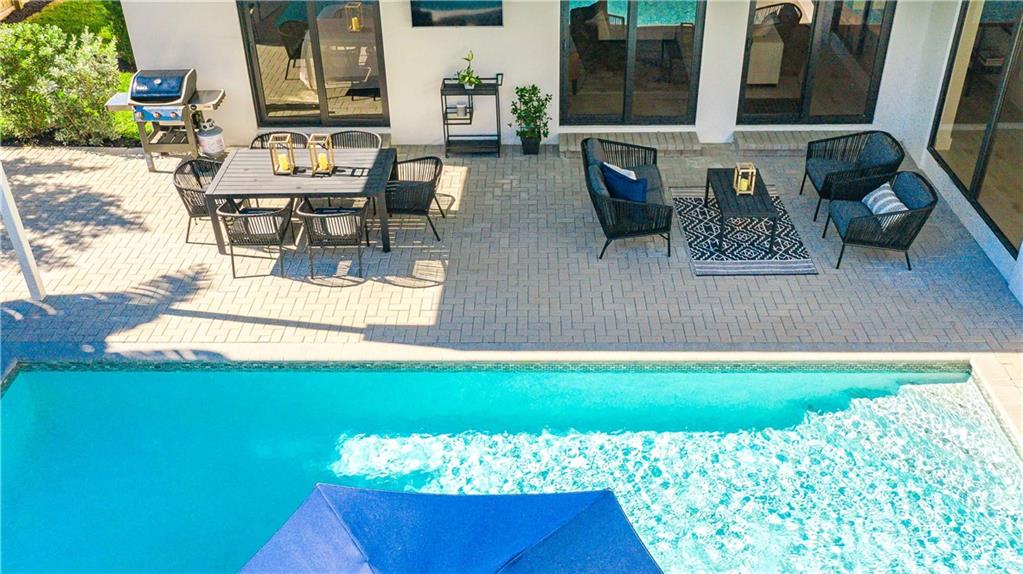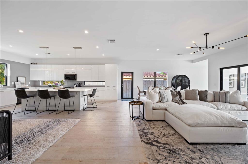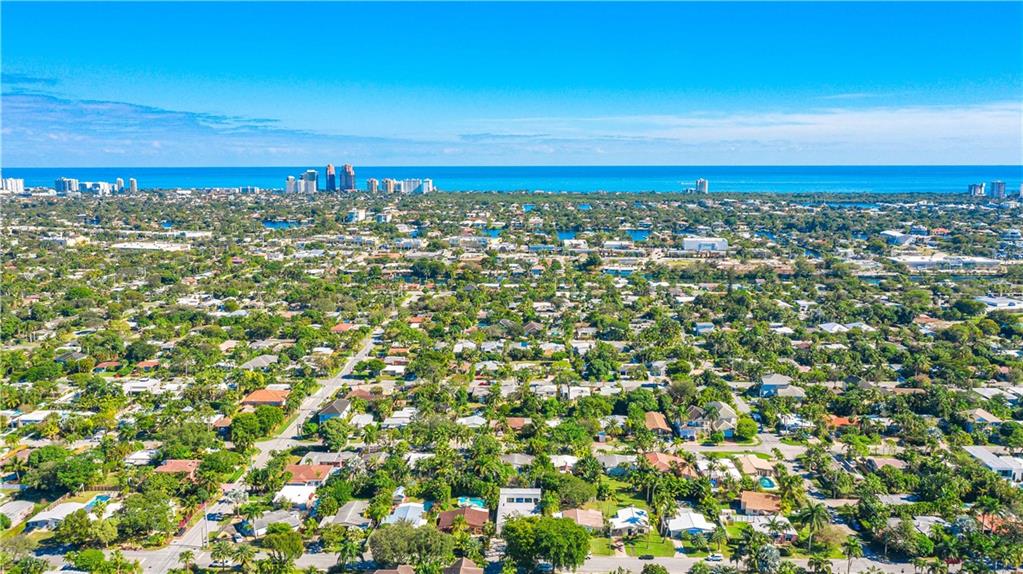 Distinct Miami Modern artfully designed surrounding a central courtyard pool making the pool into a centerpiece. Also a wide sundeck and generously sized covered terrace. All impact rated window walls and doors provide access from almost every room. Created for our casual Florida lifestyle this sun filled home transforms to a glowing glass box as evening sets. The two guest rooms each have generous closets, high ceilings and in-set lighting. The primary suite, with its own a/c features an integrated bath with a dramatic soaking tub and separate shower. The fully fenced rear yard offers an additional area away from the pool that is perfect for pets or a child's play area. Located in the heart of very desirable Poinsettia Heights, this home is convenient to shopping, dining parks & beaches.