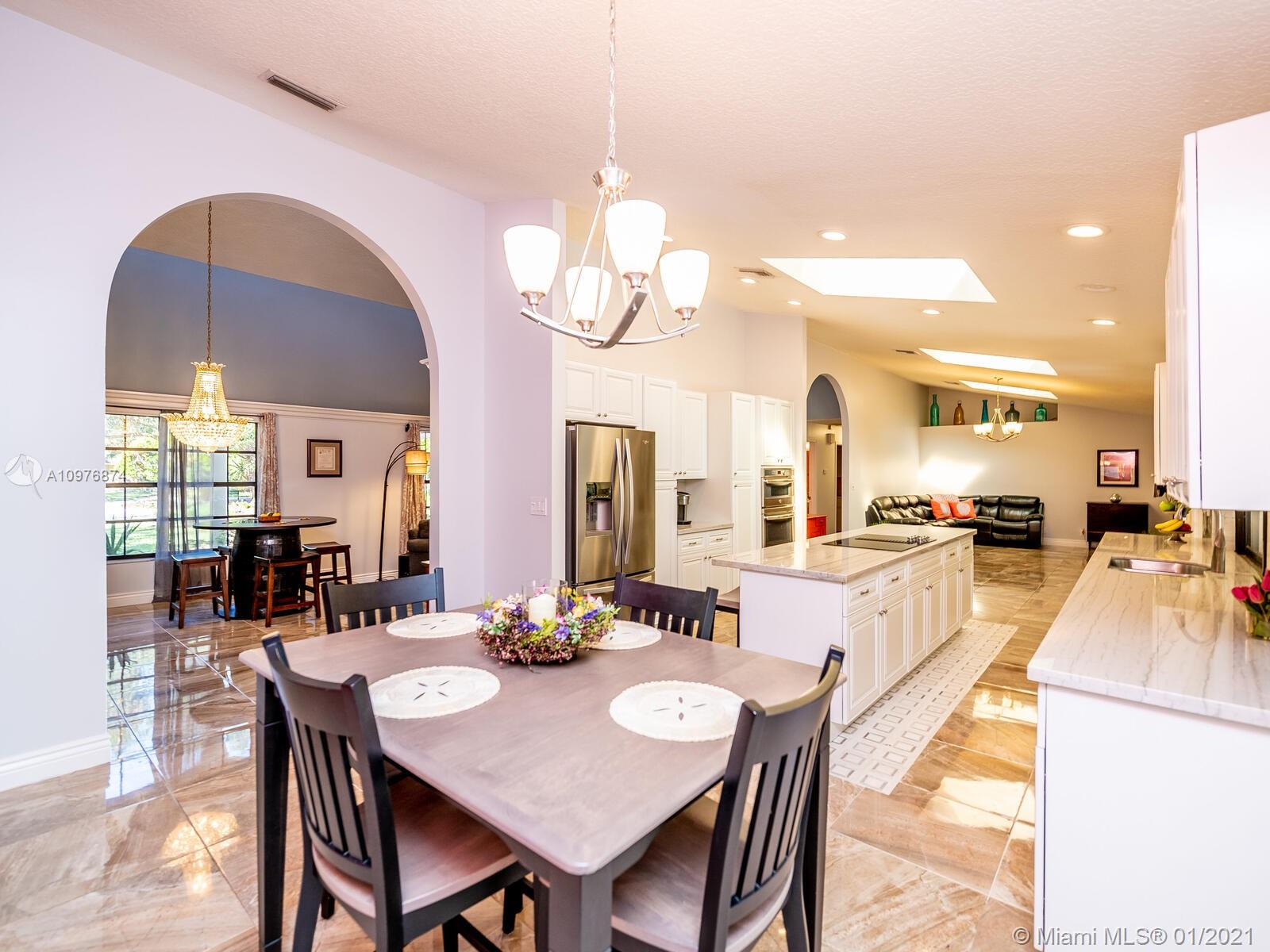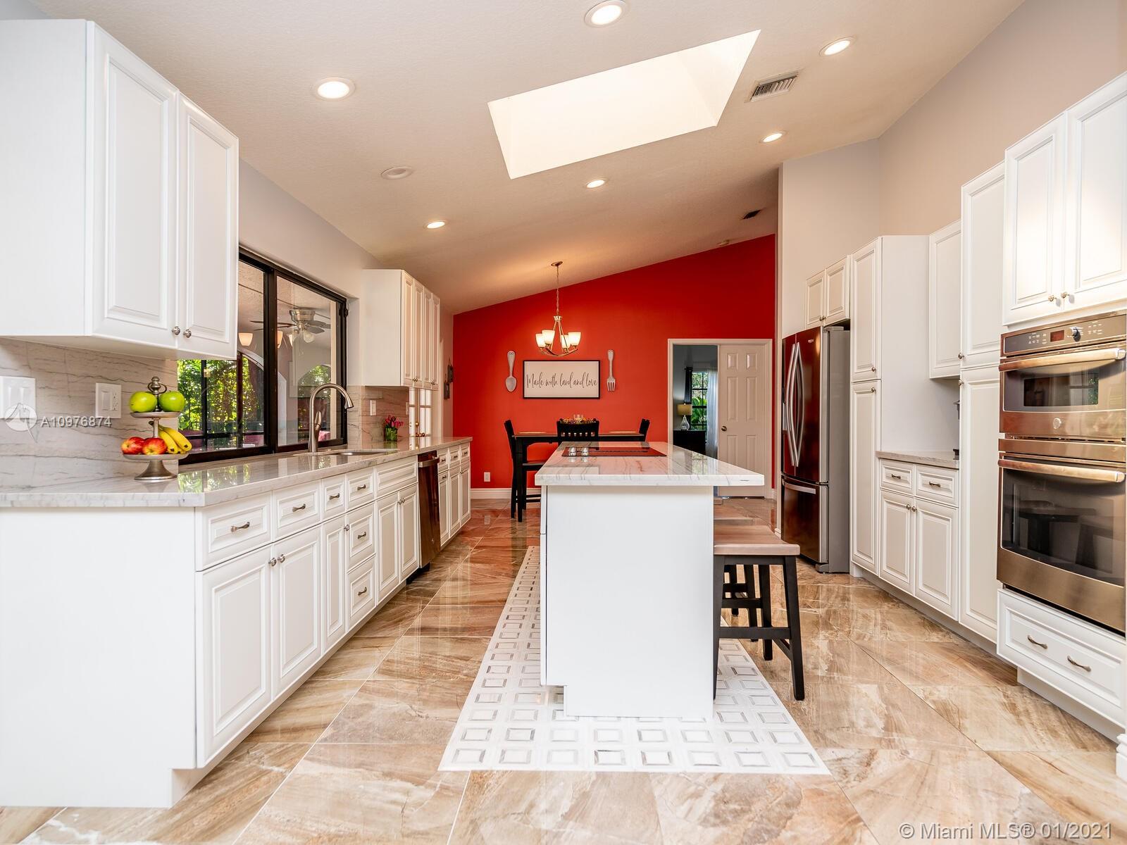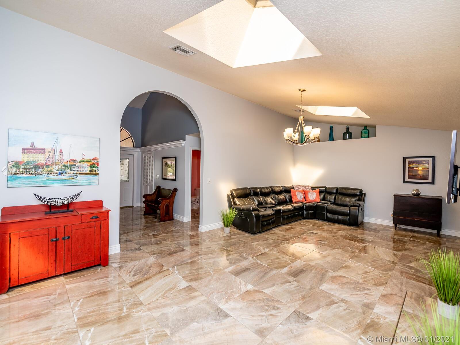 Spacious and bright, waterfront, triple-split 5 bedrooms/4.5 bathrooms, move-in ready and renovated home in Maplewood Isle, a 24/7 manned gated community with only 105 custom-made homes, tree-lined streets and winner of 2016 Mayor's Rose Award for most beautiful neighborhood. The home is located on a large lot in a cul-de-sac with a driveway that fits more than 6 cars. New kitchen and appliances, including a self-cleaning oven and a convection microwave oven. New built-in bar and a gorgeous coral rock fireplace. Renovated bathrooms. Vaulted ceilings and 3 impact-level skylights. Outdoor kitchen and covered back porch, overlooking the large fenced-in patio area and a saltwater pool. New front door and garage doors.