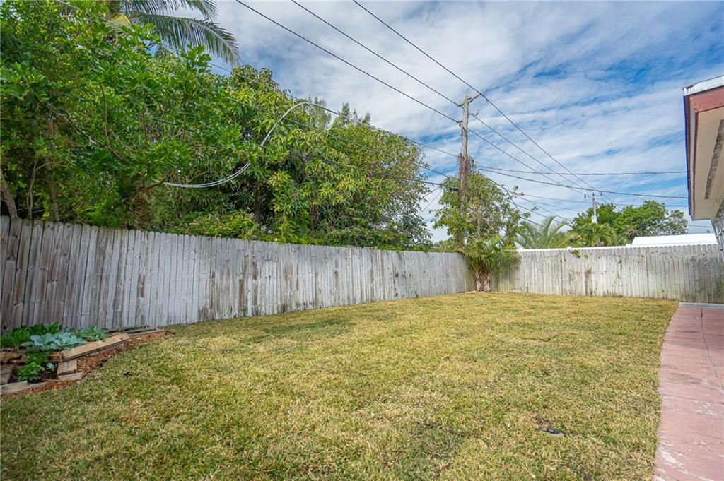 As you enter the main living room of this 2 bed/2 bath plus den you are greeted with Florida terrazzo floors and a beautiful cedar wood ceiling complete with built-in floating console cabinets, ceiling fans & contemporary lighting fixtures. The newly renovated open kitchen coupled w/the huge back yard including a vegetable garden & privacy fence make this a wonderful home for family gatherings & entertaining friends. Upgrades include; updated bathrooms, new A/C 2019, hurricane windows throughout (except for the den), & all cast iron pipes replaced with PVC piping, 2019. This is a true "TURN KEY" home that has been meticulously maintained & is ideally located just minutes to shopping, restaurants, the beach, & I-95. A unique combination of modern finishes & traditional Floridian charm.