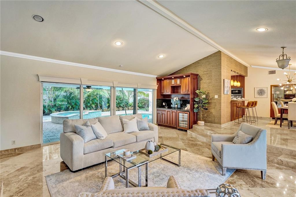 Beautifully designed 4 bedroom 3 bath home in Coral Ridge with gourmet kitchen, formal living and family room, covered outdoor space and 2 car garage. Features include impact windows and doors, recessed lighting, wood burning fireplace, wet bar, updated kitchen with stainless steel appliances, travertine and wood flooring throughout, updated bathrooms and more. Private fenced-in backyard area with covered patio, heated saltwater pool and spa. Located in Bayview Elementary school district.