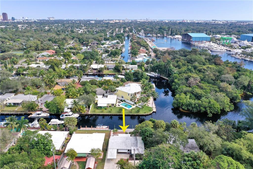 **Waterfront Home One from the River** Enjoy Tranquil River Views. This 2 bed 2 bath is your blank canvas to create your dream home. Vaulted Exposed Beam Ceilings, Open Floor plan and Kitchen, Tile Flooring. Oversized master bedroom possible to convert into 2 bedrooms making a 3 bedroom home. Screened in Back Porch, 1 Car Garage with Storage. Large Dock/Deck area to enjoy morning coffee or evening cocktails while you watch the boating activity on the New River. 60 Ft of Waterfront, No Fixed Bridges and a wide turning basin. Located in sought after Shady Banks with 2 parks and one way in/out, surrounded by the New River, come find out why this is Ft Lauderdale's hidden gem neighborhood!