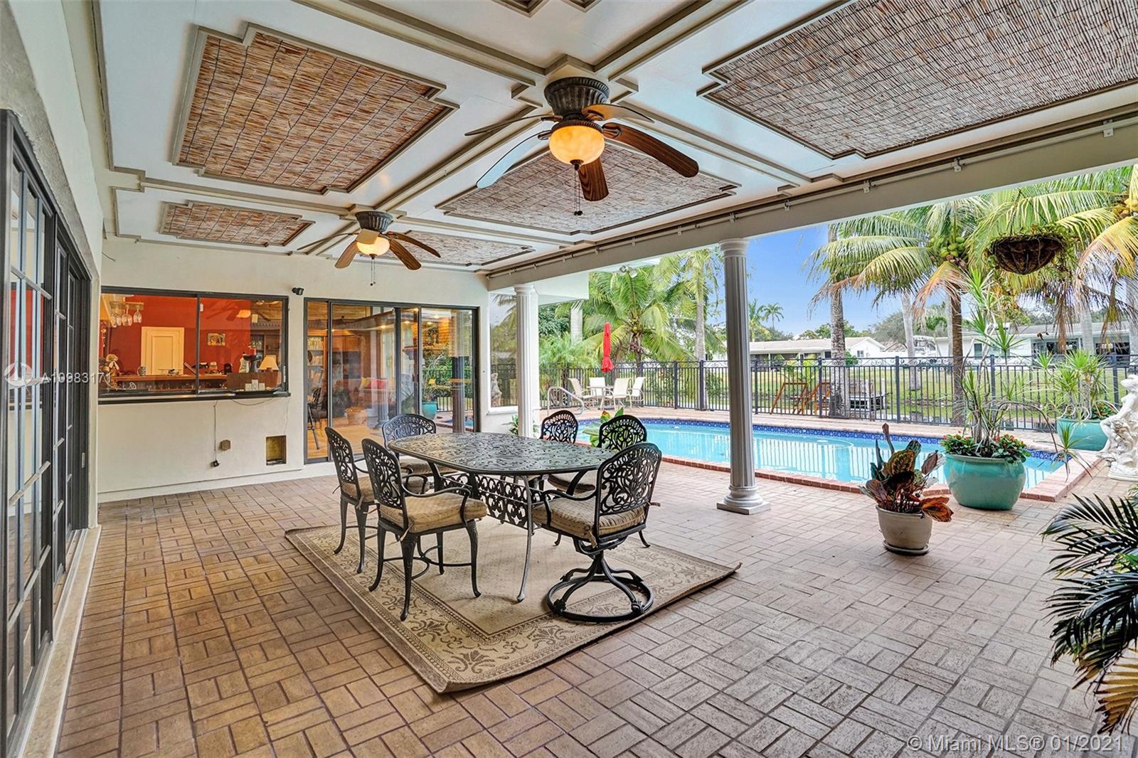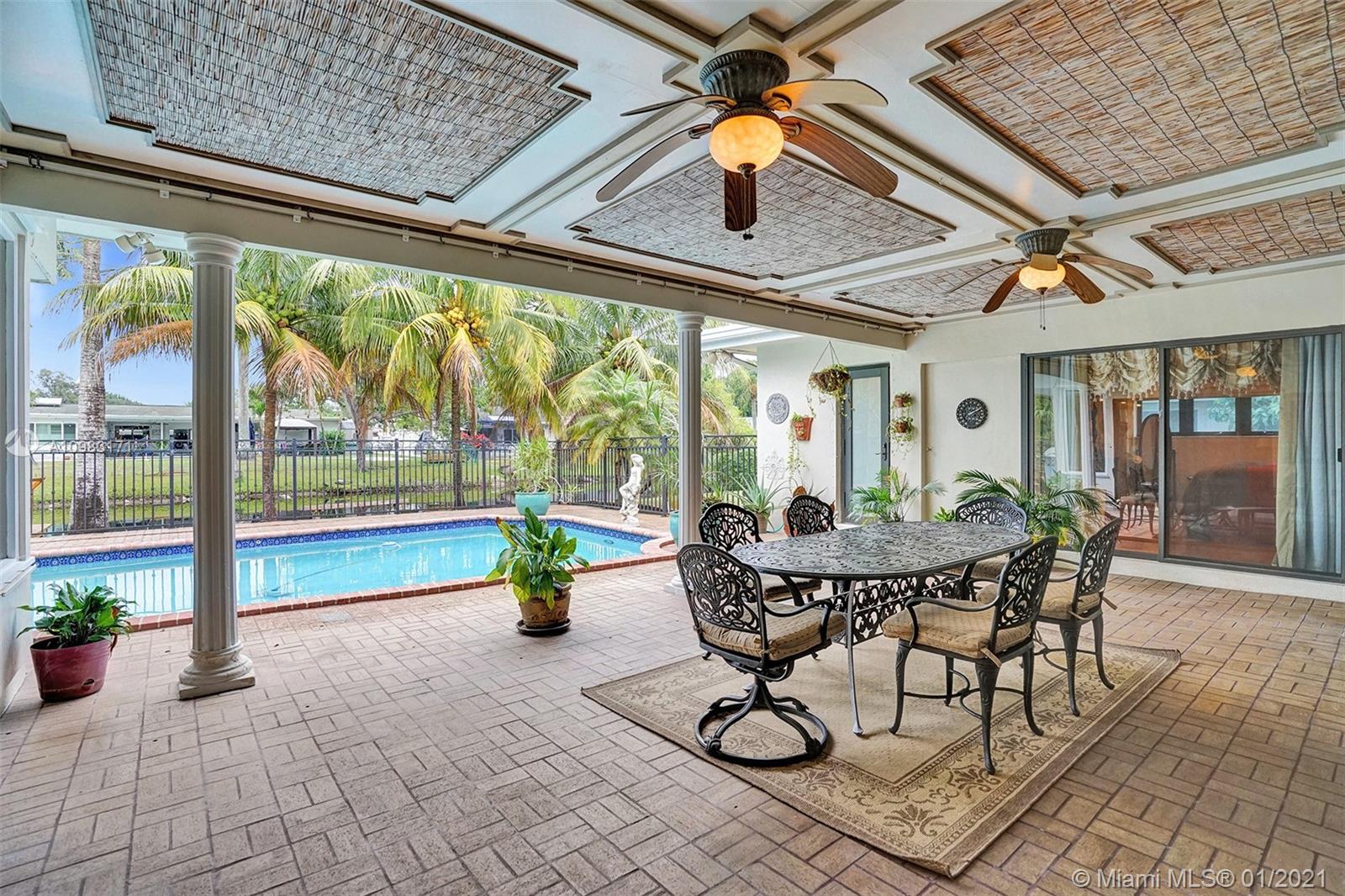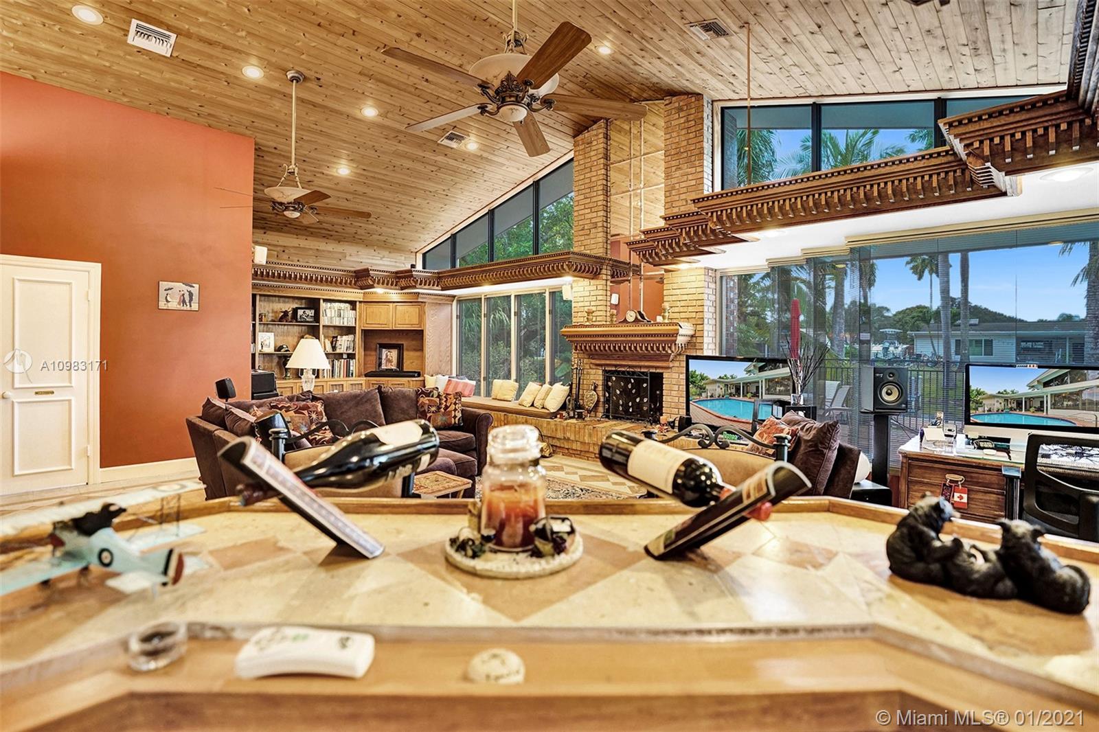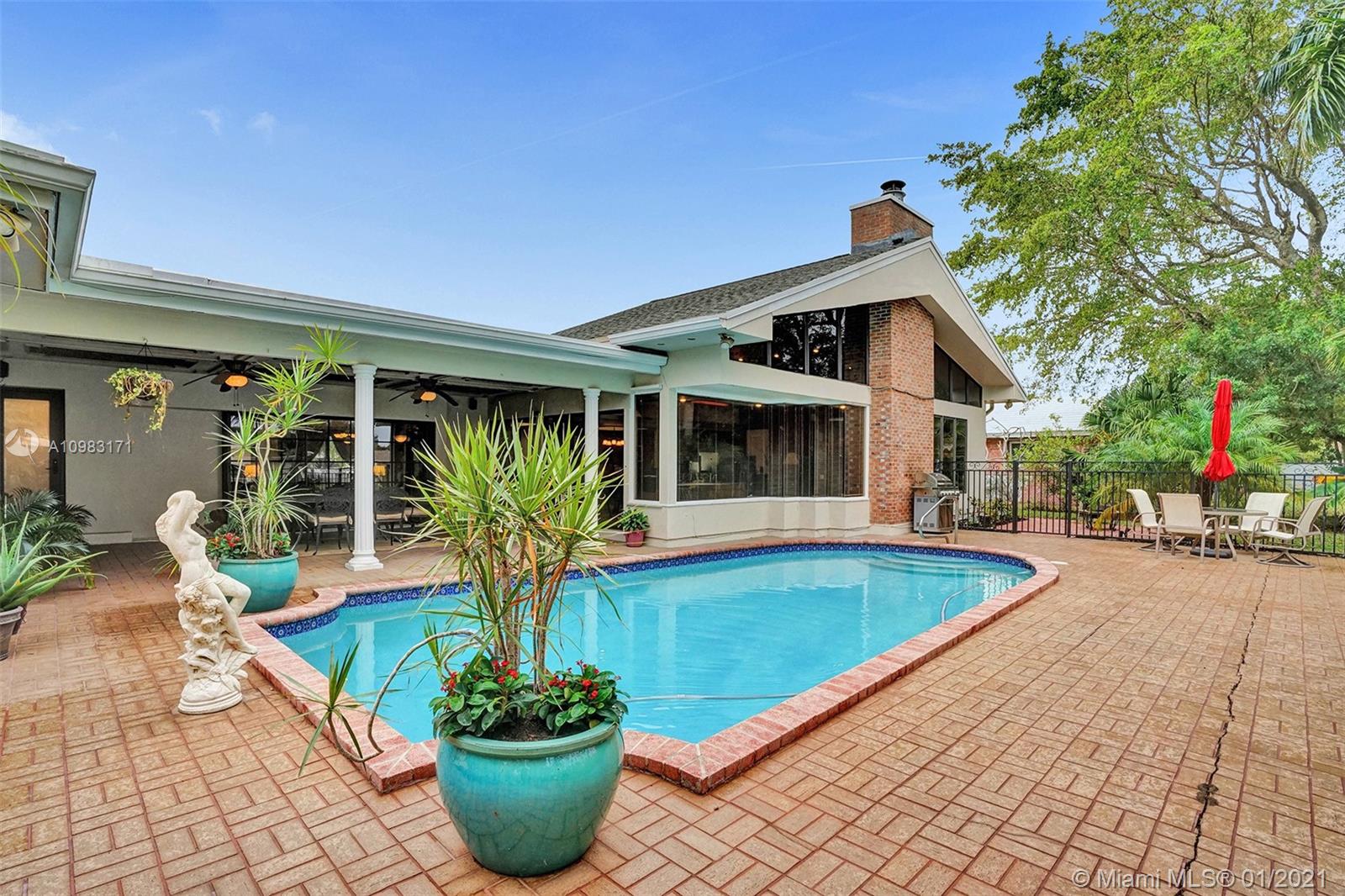 Dream house in highly sought after Plantation Park. An enormous 4 bed 3 bath home with a great room that will leave you and your guests absolutely amazed. Boasting custom woodwork throughout, a dry bar, pool, a warm and inviting family room, and working fireplace. This spectacular home has too many highlights to list. Over 2,800 sqft of living space and an expansive relaxing backyard made to entertain. Sliding doors bring the outside in and with private bathroom access to the pool this house is a true South Florida gem. Beautifully landscaped circular drive way leads up to a 2 car garage. Hurricane doors and windows throughout and fully equipped laundry/utility room. Gated backyard leads you to a custom built deck to enjoy the Florida sun or evening star gazing. Make this house your home.