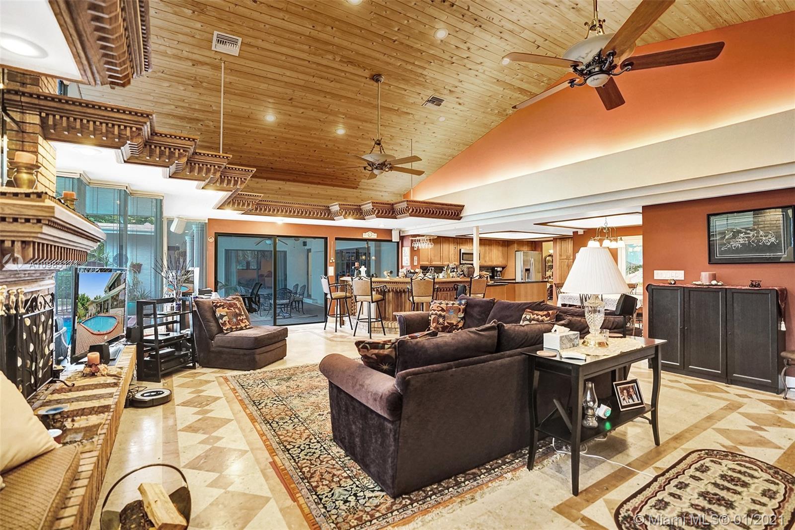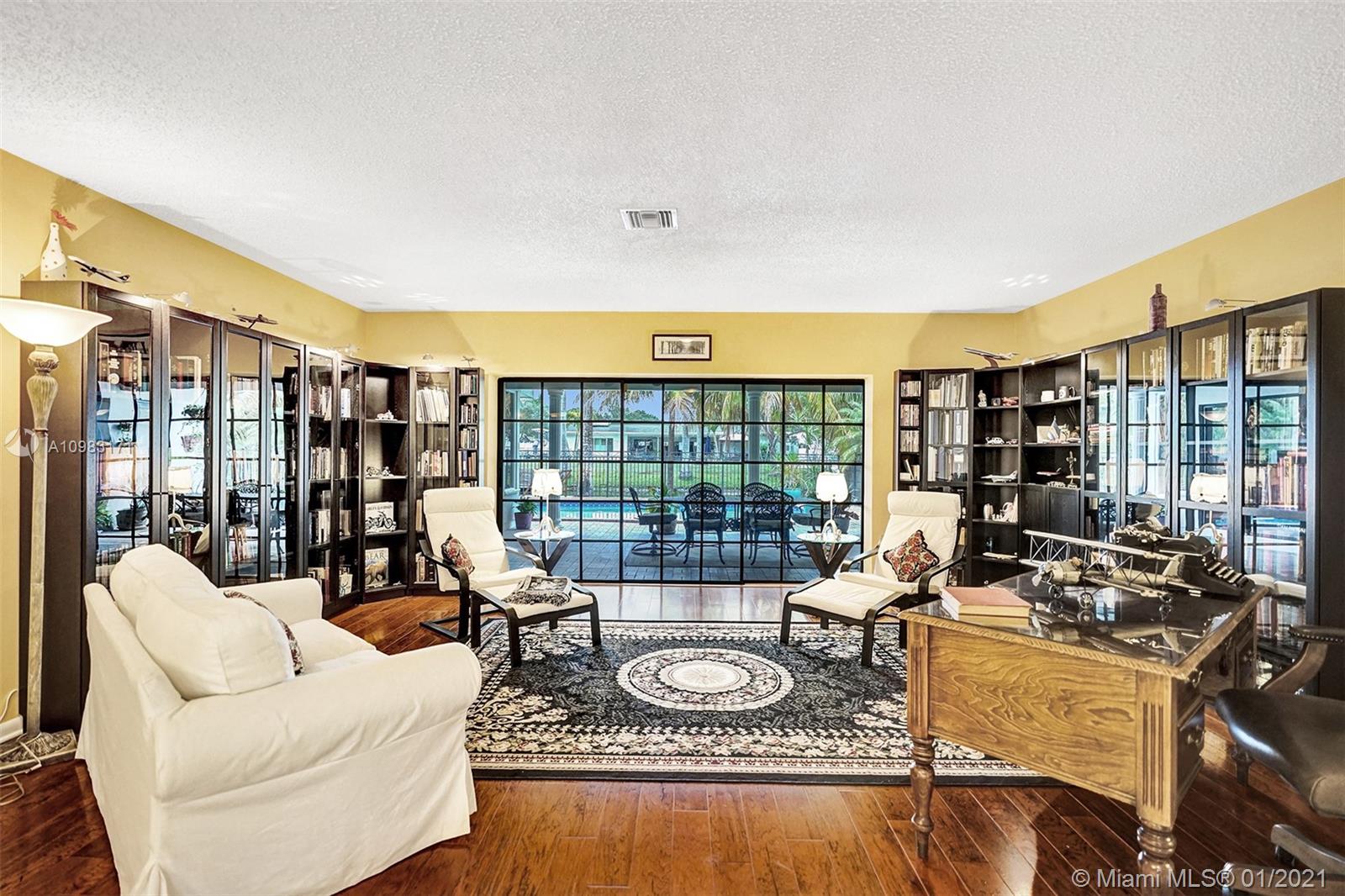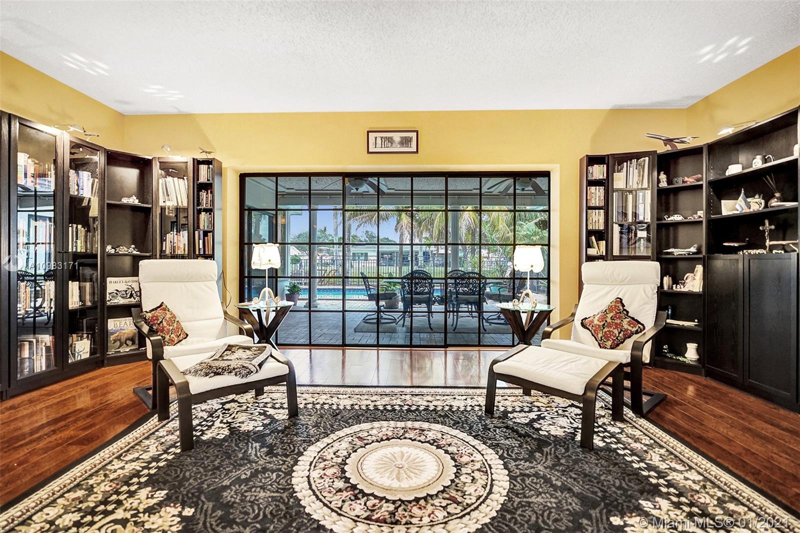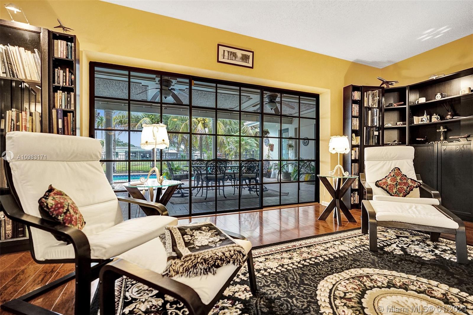Dream house in highly sought after Plantation Park. An enormous 4 bed 3 bath home with a great room that will leave you and your guests absolutely amazed. Boasting custom woodwork throughout, a dry bar, pool, a warm and inviting family room, and working fireplace. This spectacular home has too many highlights to list. Over 2,800 sqft of living space and an expansive relaxing backyard made to entertain. Sliding doors bring the outside in and with private bathroom access to the pool this house is a true South Florida gem. Beautifully landscaped circular drive way leads up to a 2 car garage. Hurricane doors and windows throughout and fully equipped laundry/utility room. Gated backyard leads you to a custom built deck to enjoy the Florida sun or evening star gazing. Make this house your home.