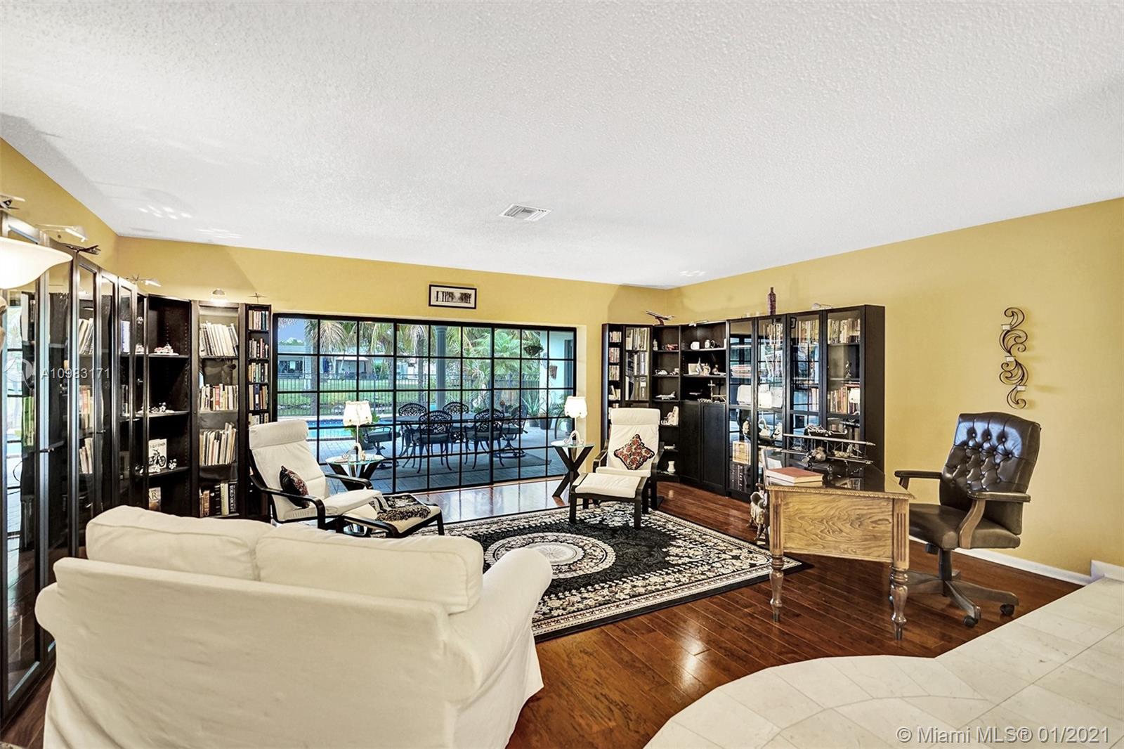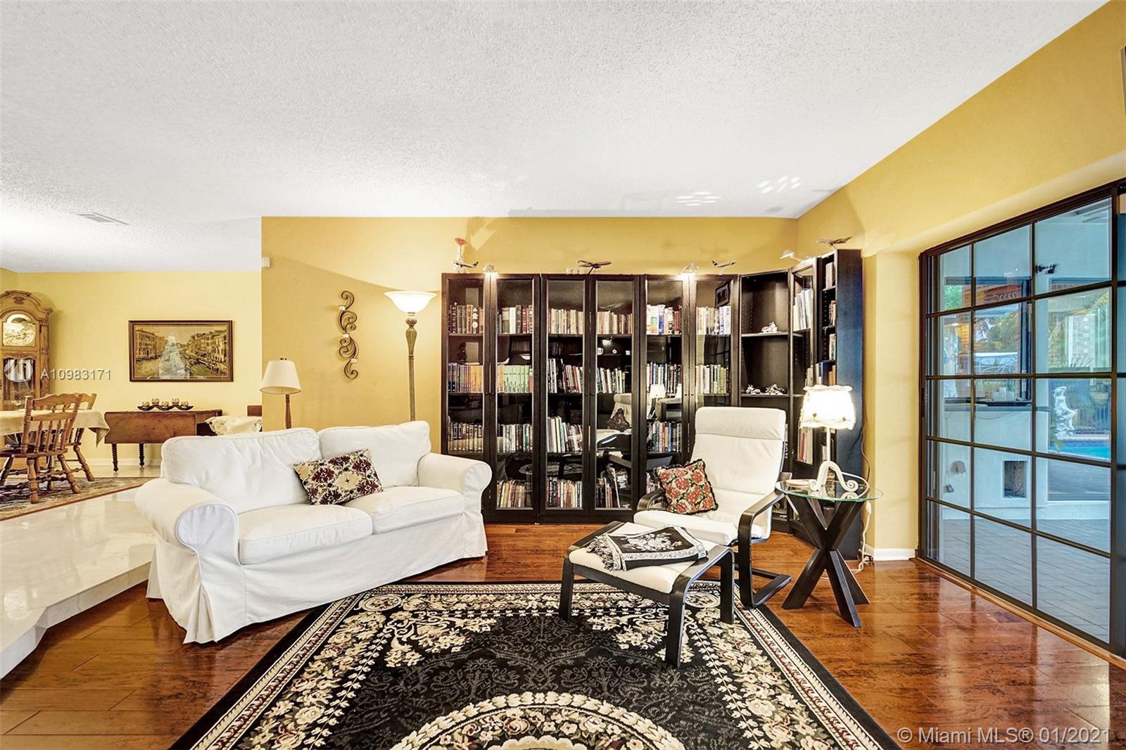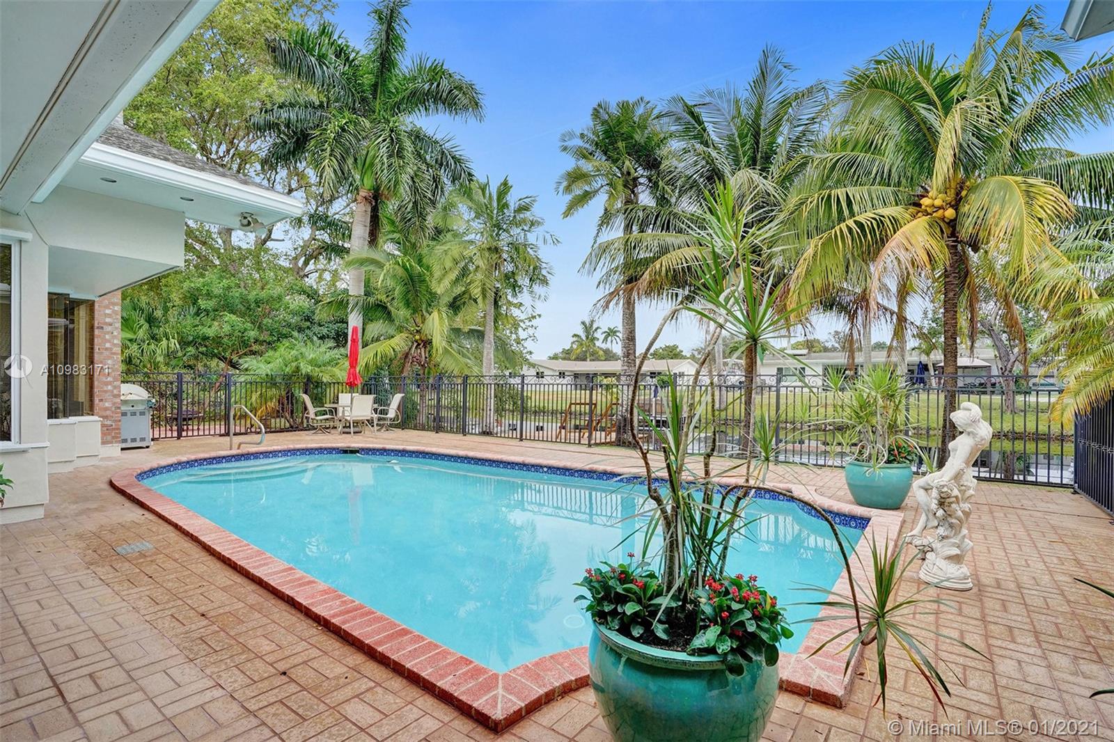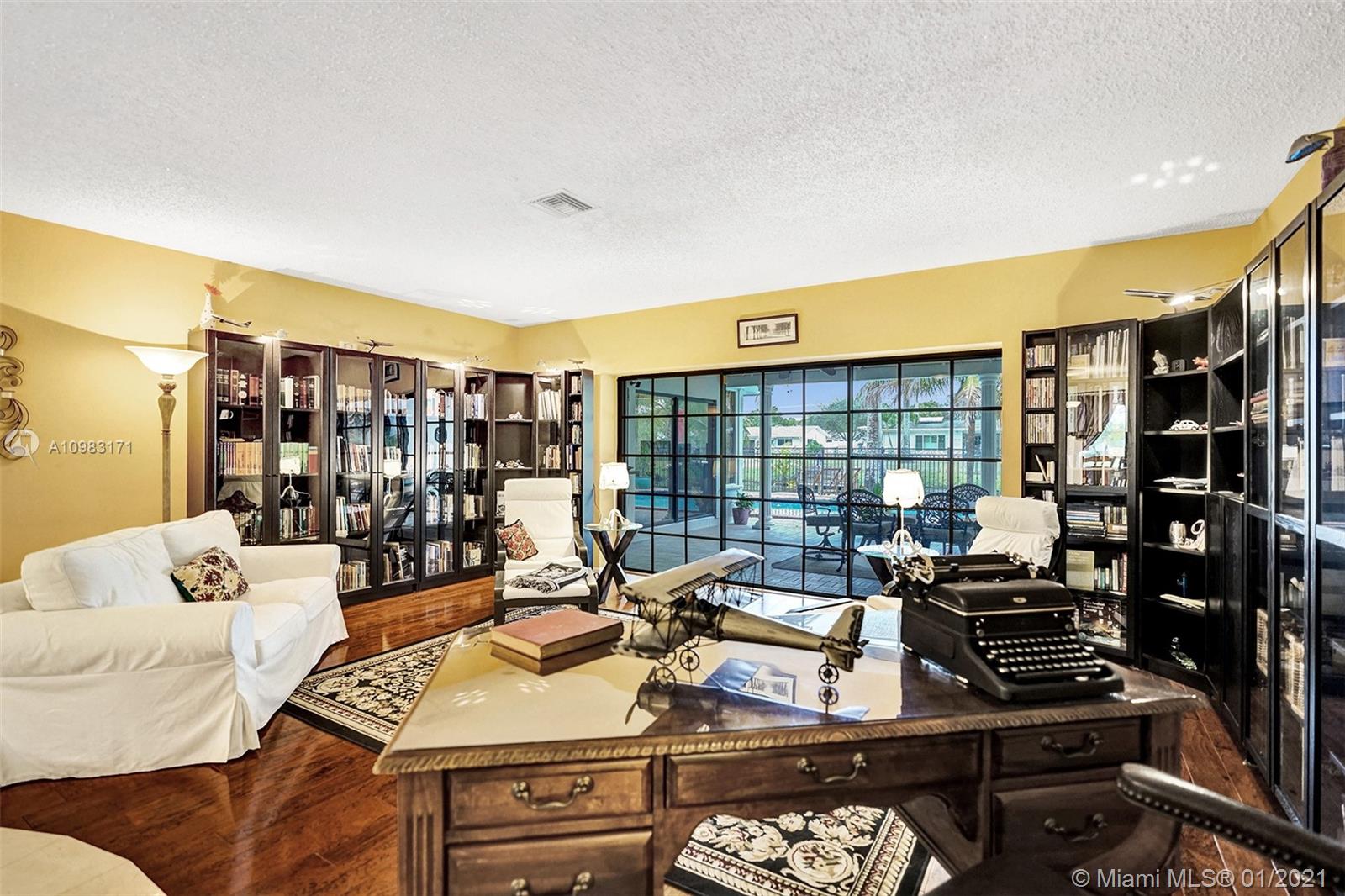 Dream house in highly sought after Plantation Park. An enormous 4 bed 3 bath home with a great room that will leave you and your guests absolutely amazed. Boasting custom woodwork throughout, a dry bar, pool, a warm and inviting family room, and working fireplace. This spectacular home has too many highlights to list. Over 2,800 sqft of living space and an expansive relaxing backyard made to entertain. Sliding doors bring the outside in and with private bathroom access to the pool this house is a true South Florida gem. Beautifully landscaped circular drive way leads up to a 2 car garage. Hurricane doors and windows throughout and fully equipped laundry/utility room. Gated backyard leads you to a custom built deck to enjoy the Florida sun or evening star gazing. Make this house your home.