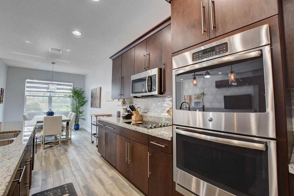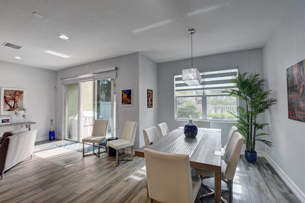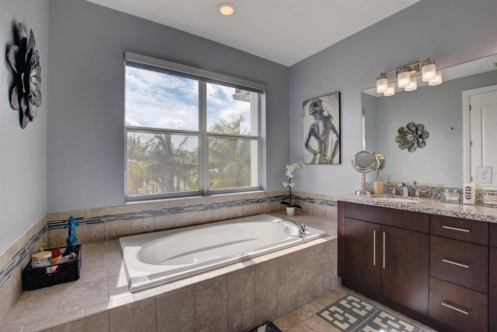 Now available in the highly sought-after community of Boca Highlands of Valletta, East Boca Raton's finest 3BD + loft 2.5BA townhouse with a 2-car garage overlooking the pool. Enter to a bright and airy floorplan with custom features throughout including a beautiful built-in bar, custom wood entertainment center and a designer kitchen with eat-in island, SS appliances, maple cabinetry with granite counters and custom tile accents. The home has wood like tile floors both upstairs and down, plenty of storage space, two balconies, a full-sized laundry room with sink, tray ceilings in the loft and bedrooms, and a fenced in private backyard within steps to the community pool. The master bedroom features an ensuite bath with separate jacuzzi tub, spa like shower and dual vanities.