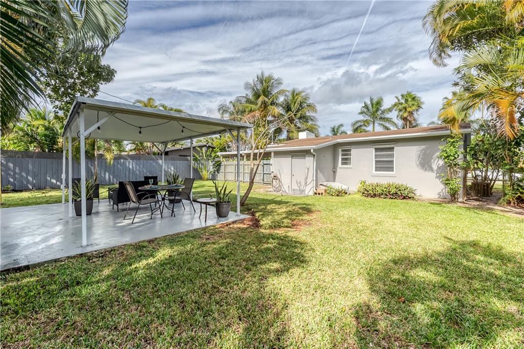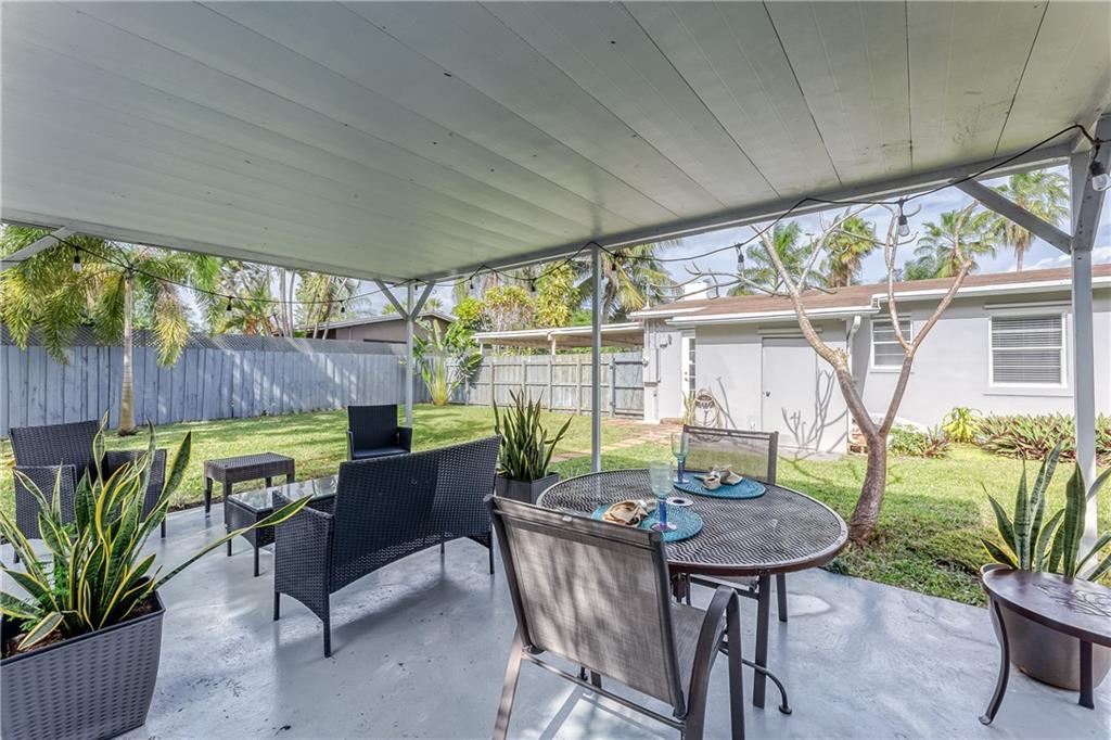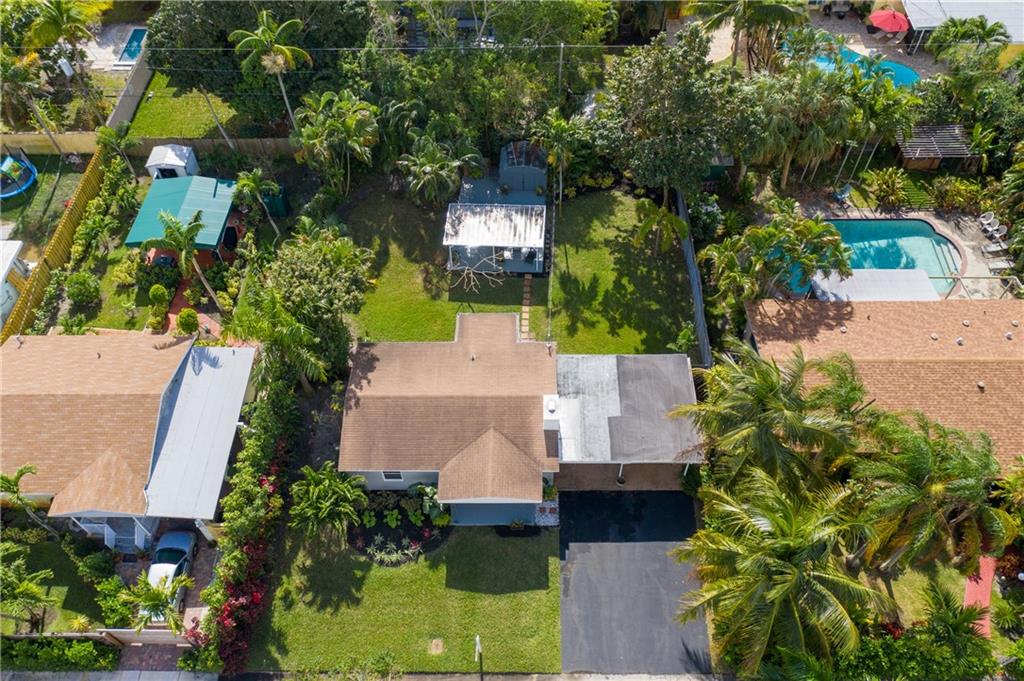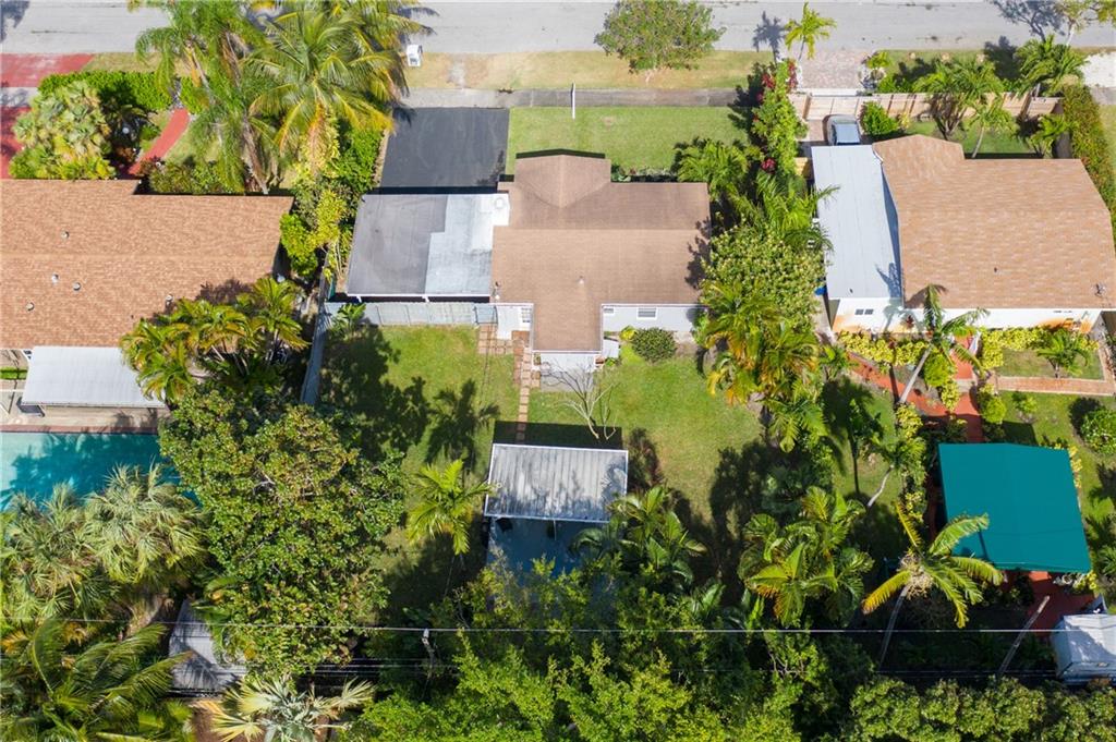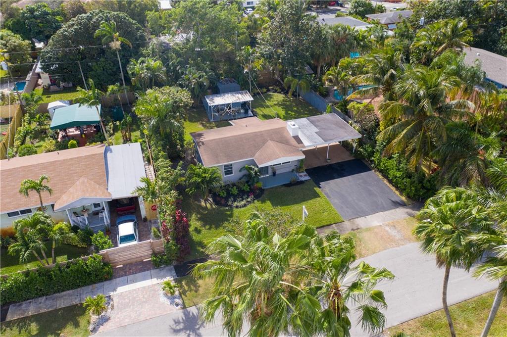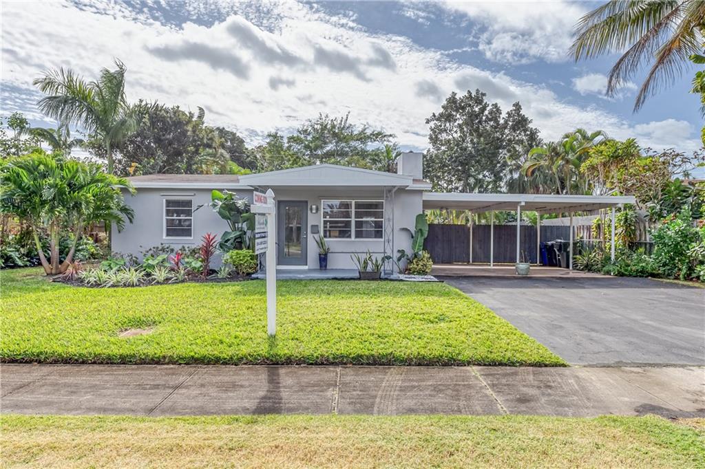 Meticulously maintained mid-century home on the best block of Lauderdale Park! Curb appeal plus! DOUBLE Carport! HUGE 8250 sq ft lot! The options to expand are endless, even adding a giant pool! Or just enjoy the comfortable floor plan, the bright sparkly kitchen updated with Shaker Cabinetry, SS Appliances, task lighting & gorgeous granite! Step thru the French Door to a lushly landscaped private tropical sanctuary for chilling or entertaining under an oversized 21X23 ft covered patio. Yes, the wood burning fireplace is real! Yes, the rain glass front door is impact! And yes, you couldn't afford polished white terrazzo floors like these! This handsome home has all the mid-century charm with today's modern accents & yet located 2 mins to Wilton Dr, 5 to downtown & 10 to the beach!
