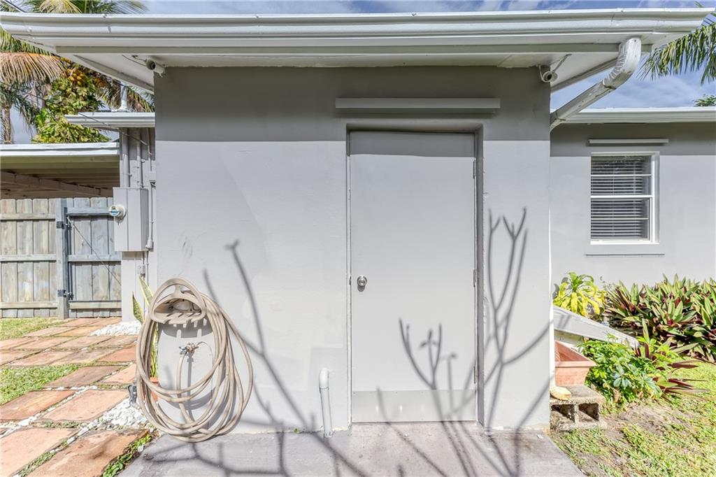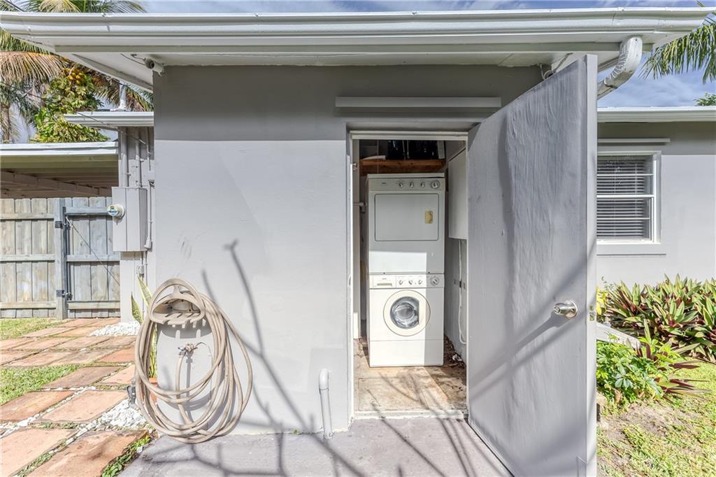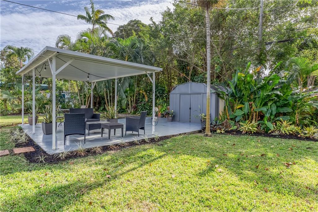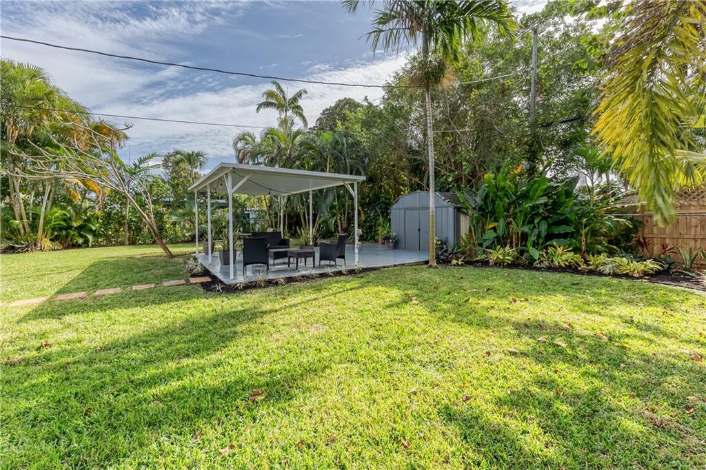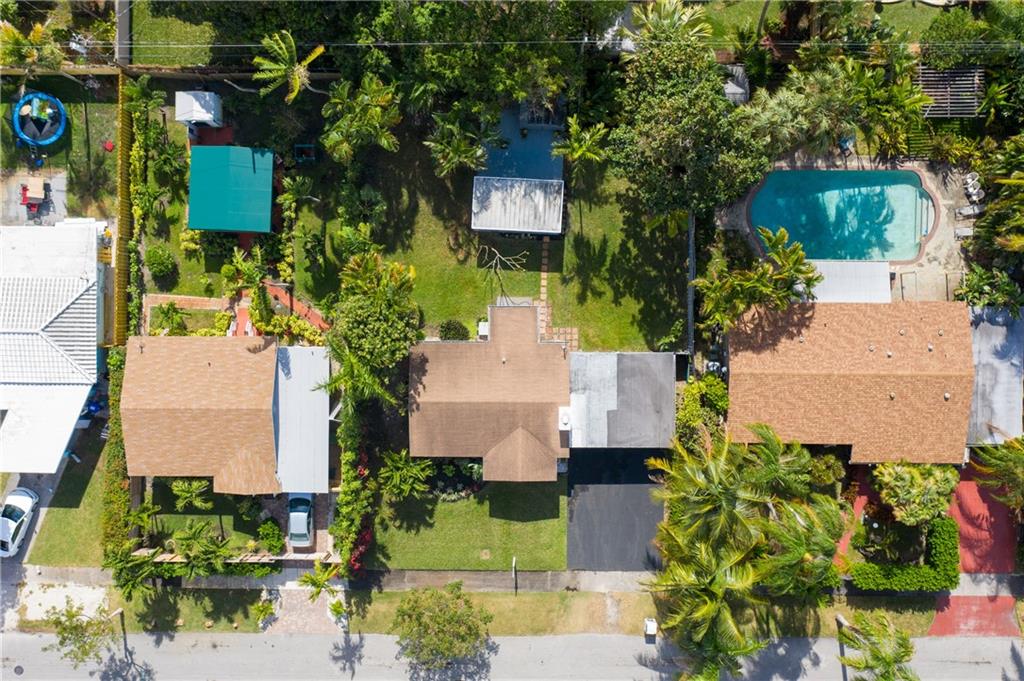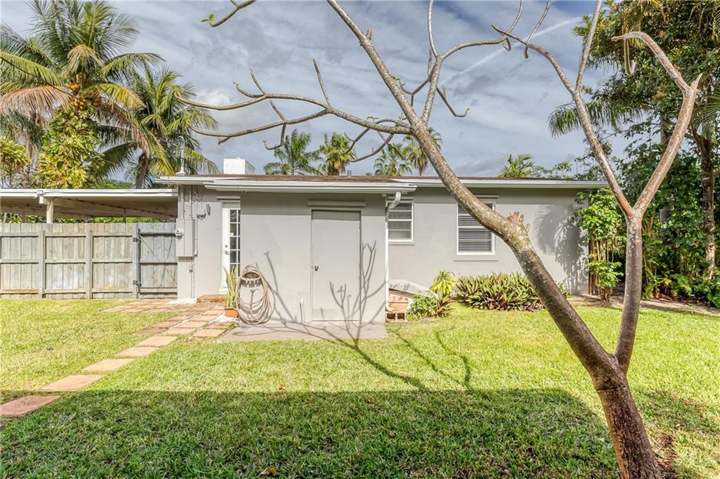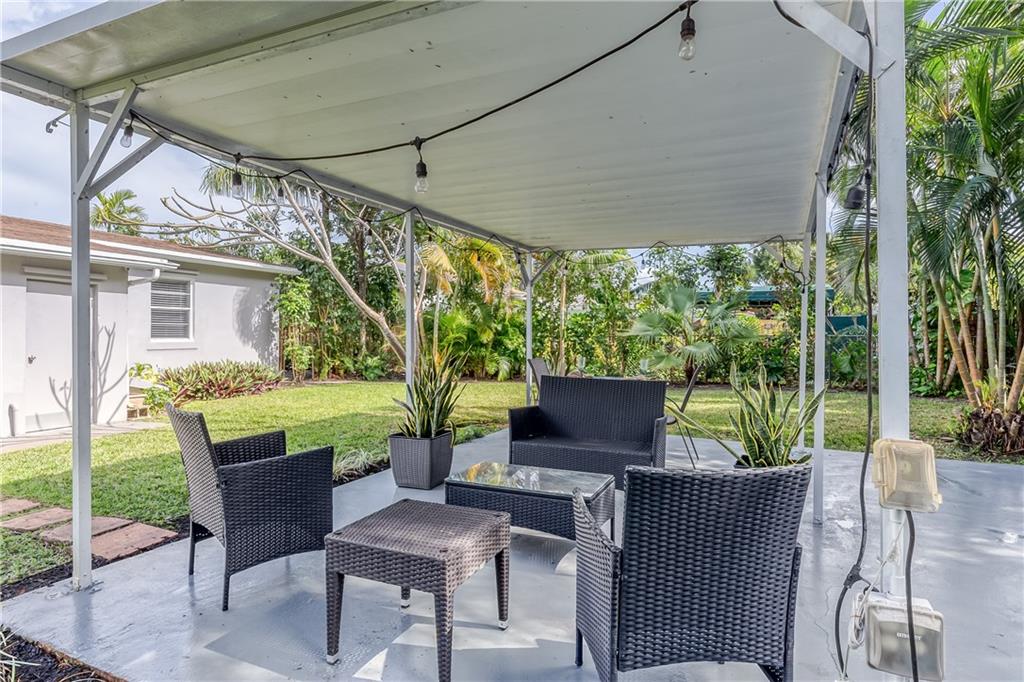 Meticulously maintained mid-century home on the best block of Lauderdale Park! Curb appeal plus! DOUBLE Carport! HUGE 8250 sq ft lot! The options to expand are endless, even adding a giant pool! Or just enjoy the comfortable floor plan, the bright sparkly kitchen updated with Shaker Cabinetry, SS Appliances, task lighting & gorgeous granite! Step thru the French Door to a lushly landscaped private tropical sanctuary for chilling or entertaining under an oversized 21X23 ft covered patio. Yes, the wood burning fireplace is real! Yes, the rain glass front door is impact! And yes, you couldn't afford polished white terrazzo floors like these! This handsome home has all the mid-century charm with today's modern accents & yet located 2 mins to Wilton Dr, 5 to downtown & 10 to the beach!
