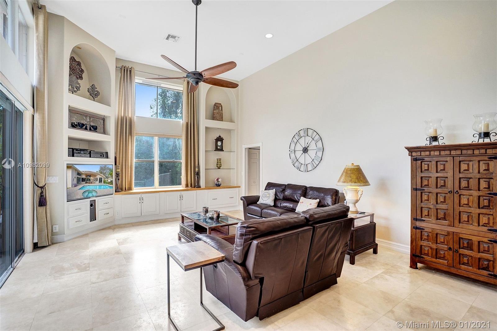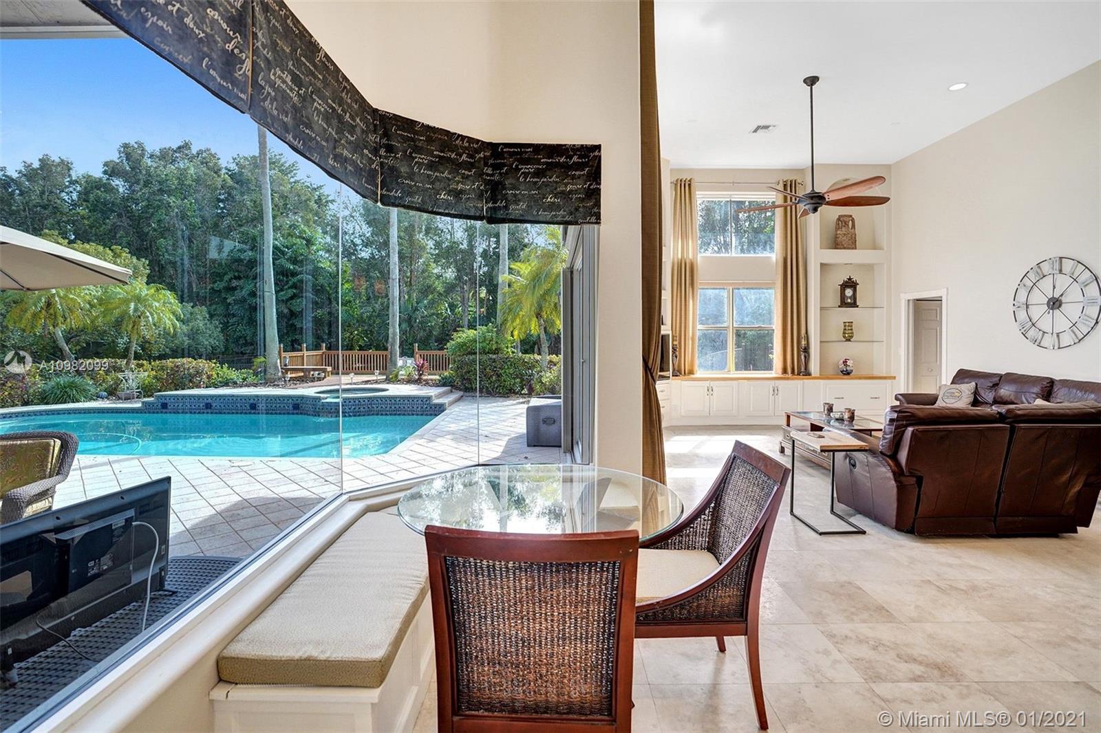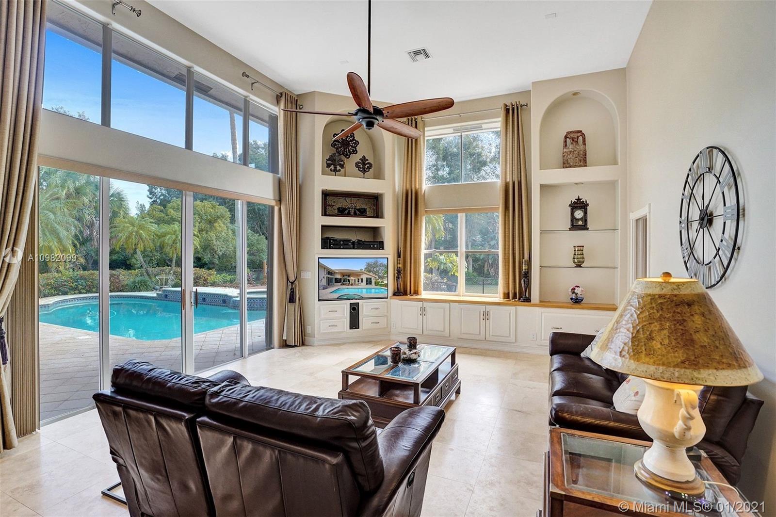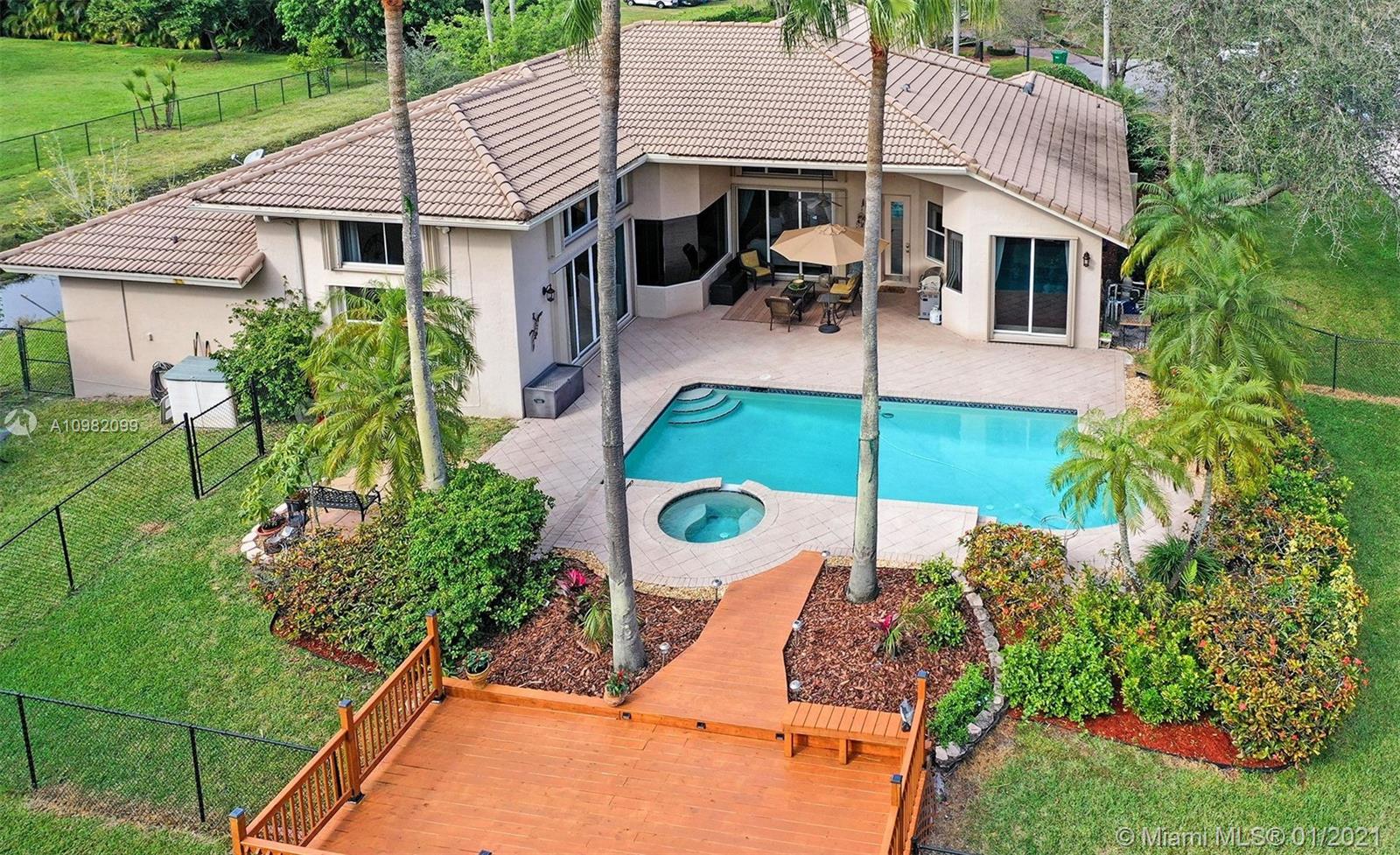 Located at end of a cul de sac on one of most desirable streets in the acres. This 6 bed home is just what you are looking for. Elegant entrance w/soaring ceilings & designer inlay. Formal living & Dining Rooms. Gourmet kitchen w/granite, newer stainless appliances including induction stove, pantry & built in dining nook which opens onto the oversized family room. Large Master w/his/her closets Lots of windows & natural light throughout, marble flooring in living areas, interior recently painted, full hurricane protection & lush landscaping around home. Enjoy the outside in your private, fully fenced yard: relax or entertain on the oversized patio & wood deck which overlooks the pool. Home is situated at end of cul de sac. Close to 595 & sawgrass & shopping at Sawgrass Mills Mall.