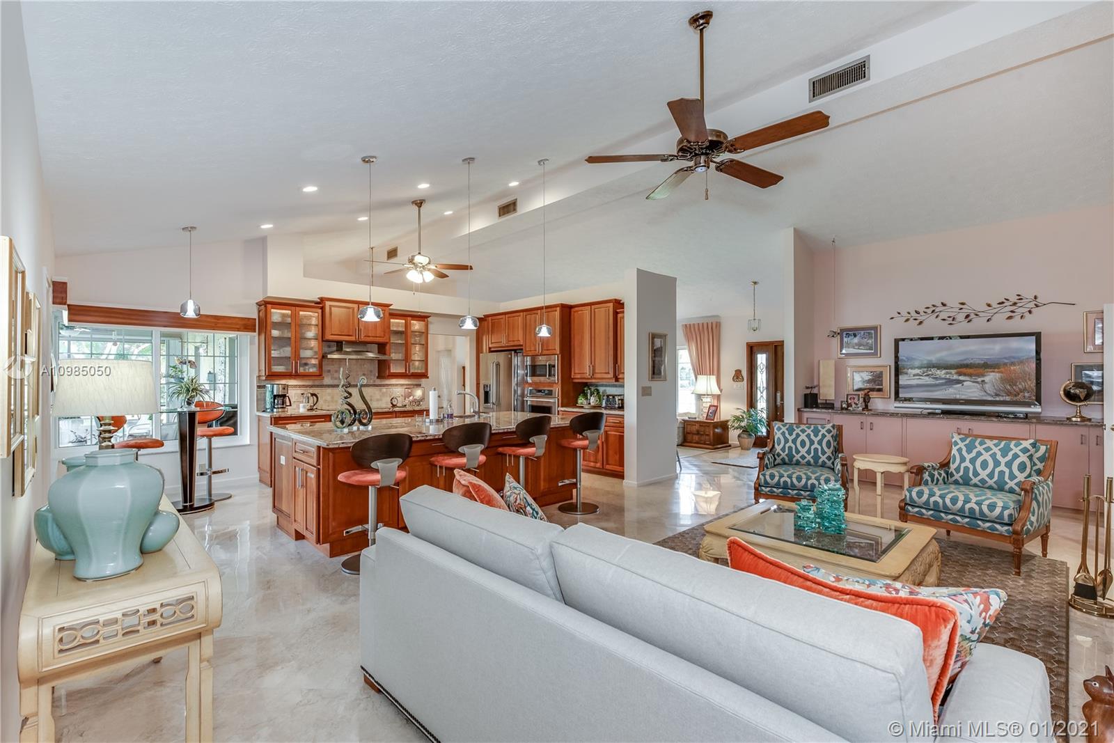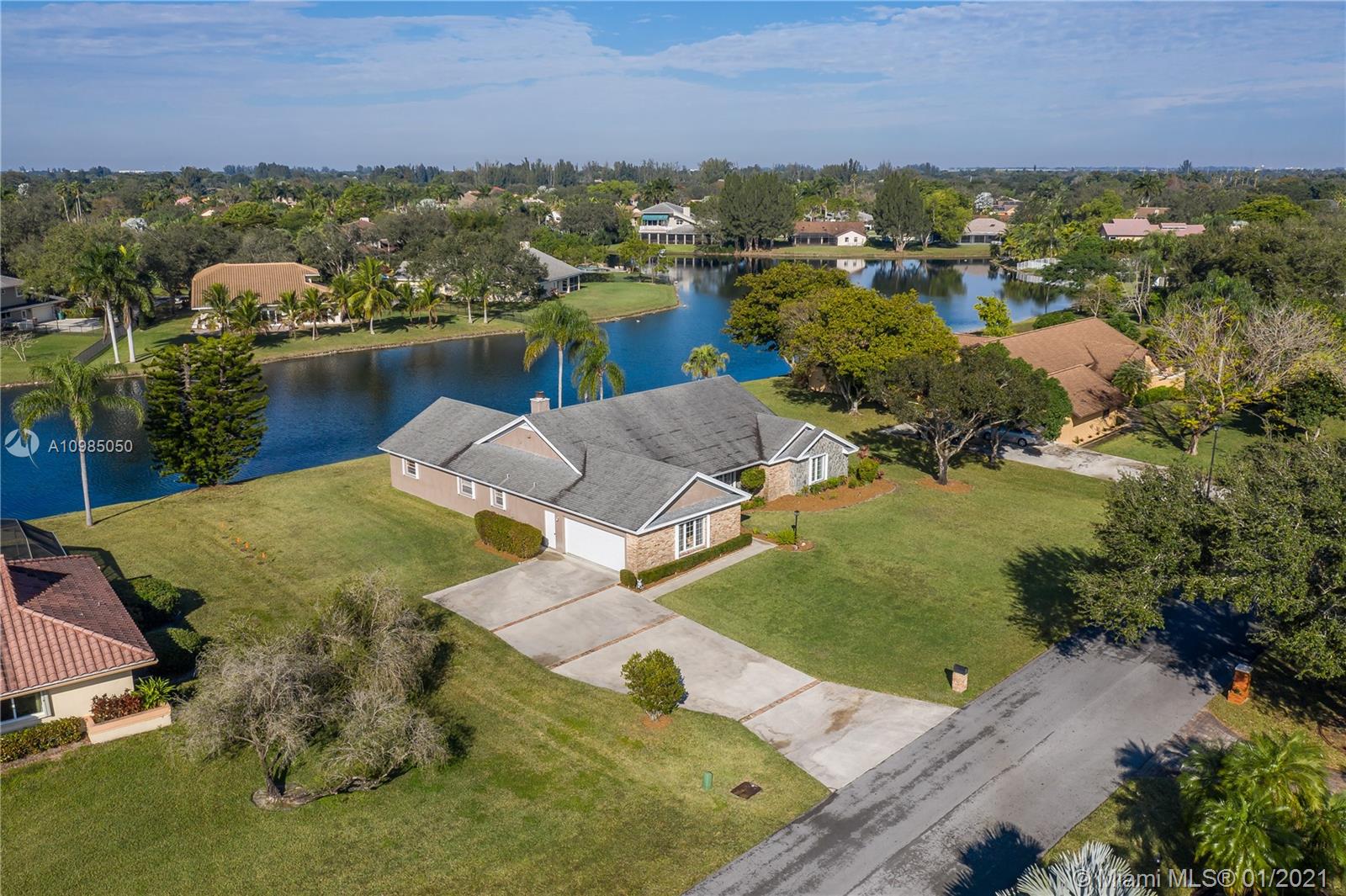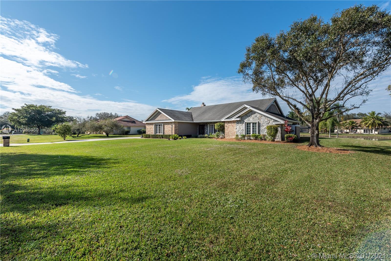 *Per appraisal LA SF is 2768* Just perfect 4/2.5 one story, custom built home with gorgeous lake & preserve views. Located in Davie's desirable neighborhood of Whispering Pines. With well over $80,000 in upgrades, this one has been impeccably maintained & lovingly cared for. Kitchen is a HOME-RUN with a huge island, gorgeous solid wood cabinets, granite & stainless appliance package that opens to large family room with cozy fireplace. All the rooms are HUGE with BIG closets. The master retreat is complete with sitting area & 2 walk in closets. Handy mud room & interior laundry.Hurricane protected with a mix of accordion/impact plus rated front and garage doors. Covered & screened patio with stunning views. Low HOA fees, terrific location & excellent schools.