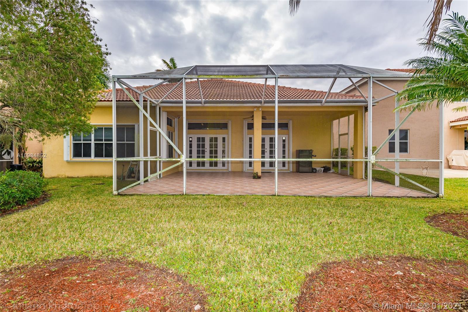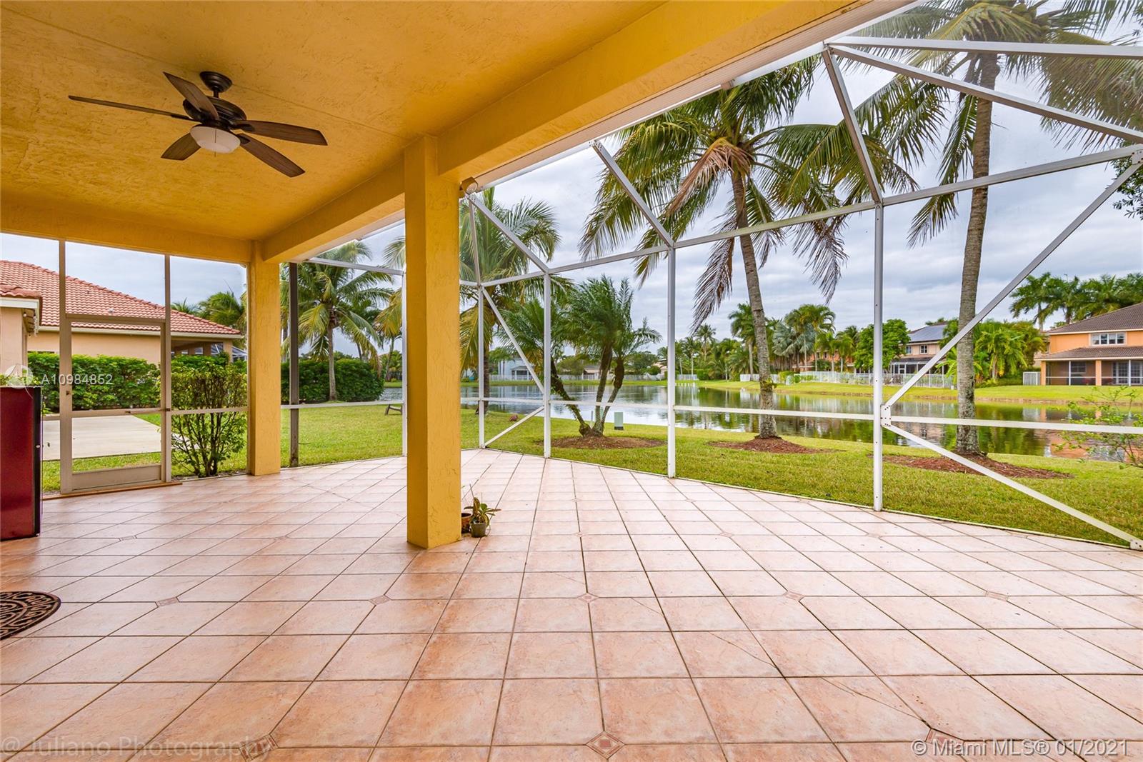 Gorgeous lakefront home located in the prestigious gated community of Savanna. This 4 bedroom, 2 1/2 bath home features spacious living areas, California closets and walk-in closet in Master, accordion shutters for all windows and doors, and French doors leading to a covered and extended screen and tiled patio, perfect for entertaining and watching the beautiful sunsets over the lake. Located two minutes away from the Savanna commons water complex.