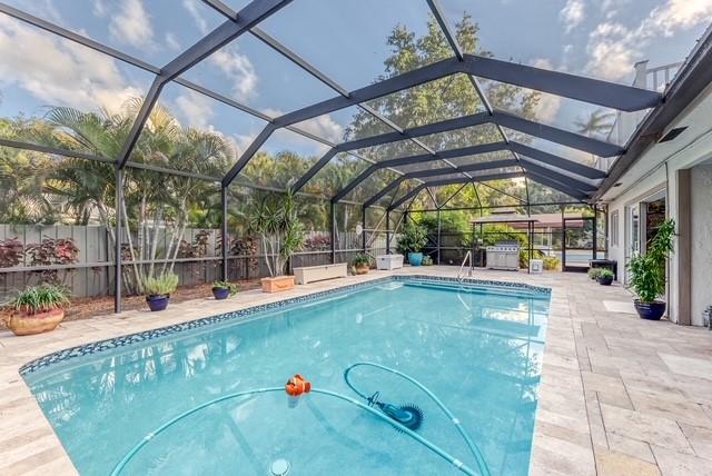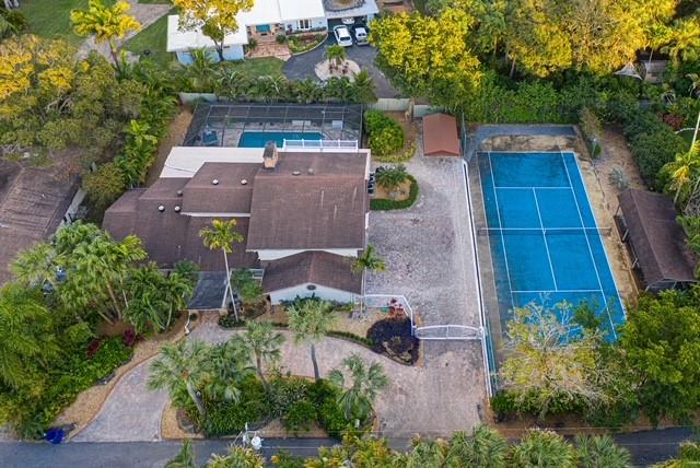 Located in the nature lovers paradise of Riverland, a 15 minute drive to downtown. Property is located on a private lane and boast just over a half acre of land including a tennis court. Complete 2015 top to bottom renovation. Property includes new huge chef’s kitchen, bathrooms and bedrooms with hardwood custom cabinetry, all new flooring, custom garage. Large office could also be 5th bedroom. Upgraded A/C, insulation, impact windows and doors, driveway, fencing, electric gates, deck. Screed pool with large covered outdoor living space. This spacious home provides peace and tranquility while being only minutes aways from everything. This is two lots (2nd lot has the tennis court) which are separately deeded but being sold together.