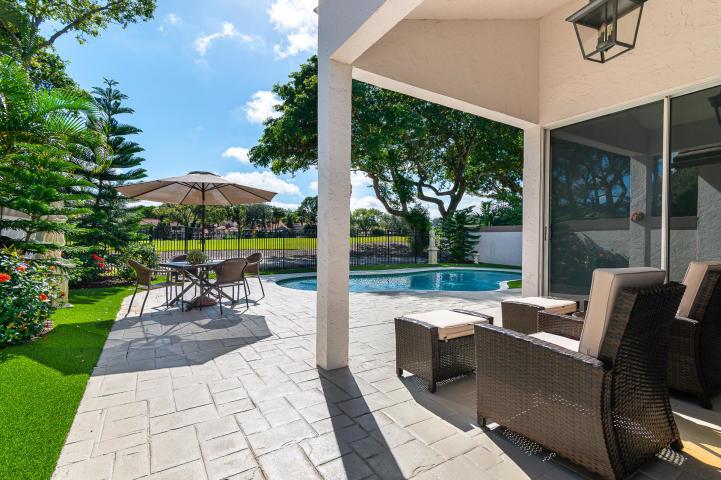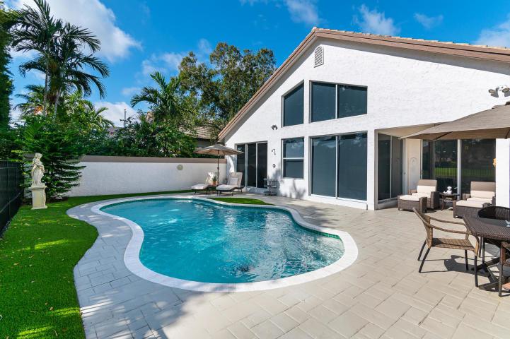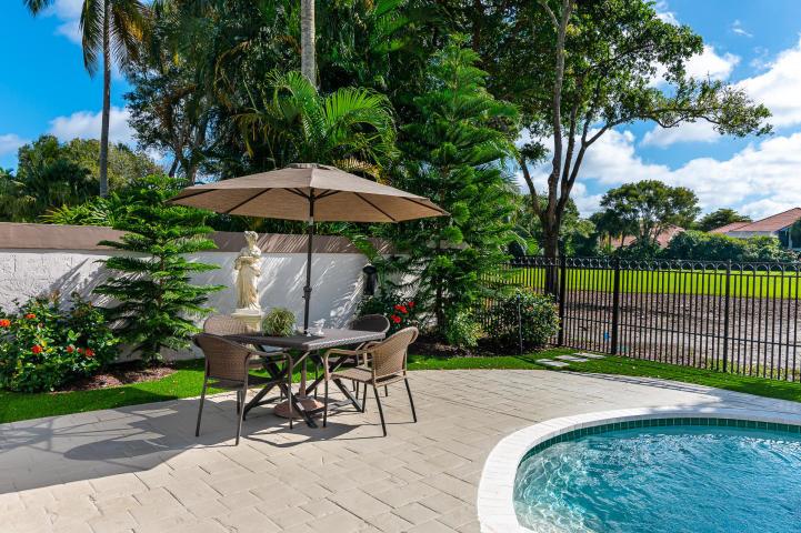 This 1 story completely renovated 3 bedroom 2 bath home is located in Whisper Trace of the award winning Broken Sound Country Club. Some of this homes many highlights include vaulted ceilings, quartz countertops, porcelain tiled master bath, wood floors, custom closets, new A/C system, new water filtration system, new central vacuum & new hurricane-grade garage door. The backyard includes a private pool, covered patio, fenced in yard with panoramic views of the new golf course.