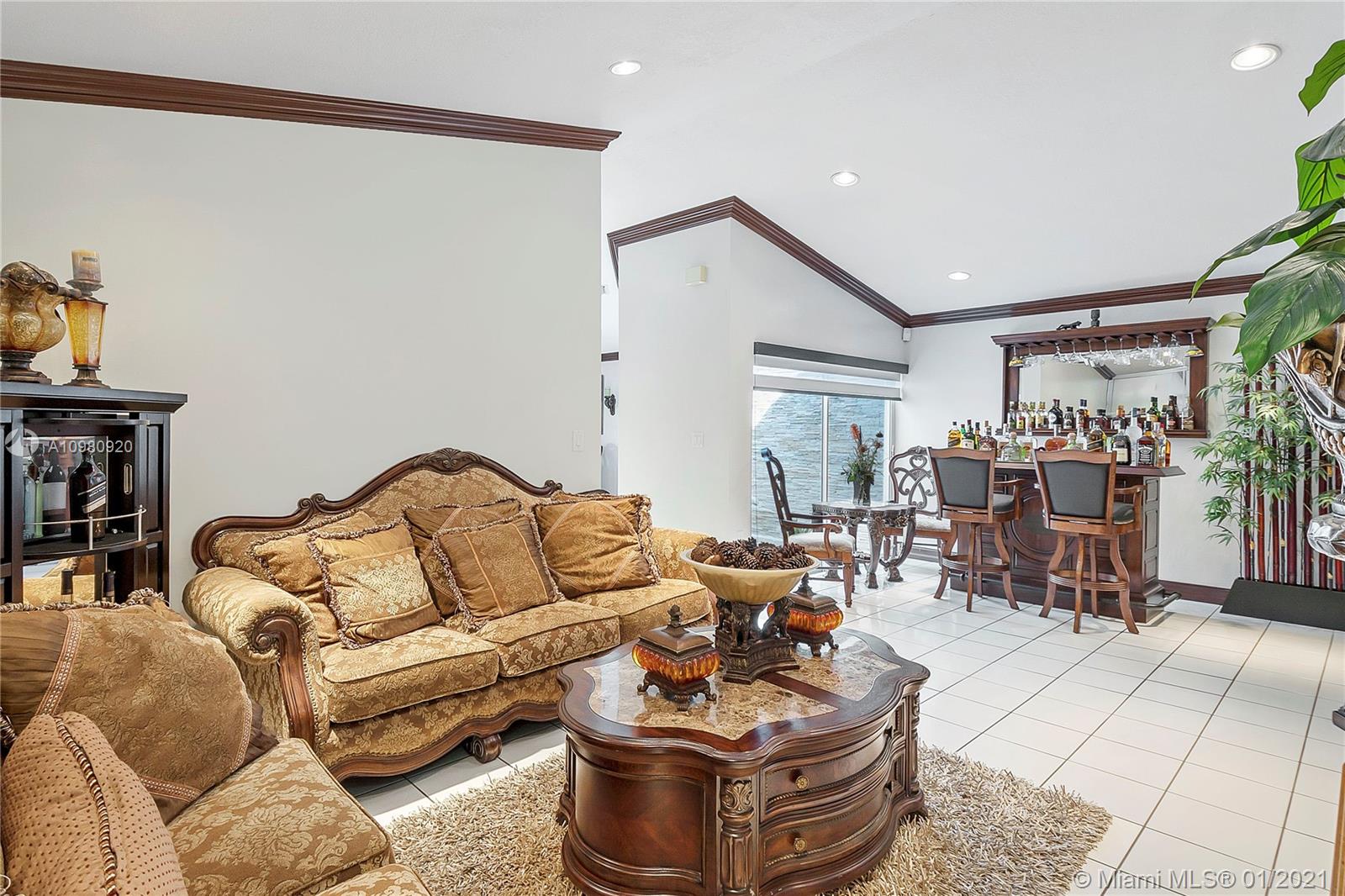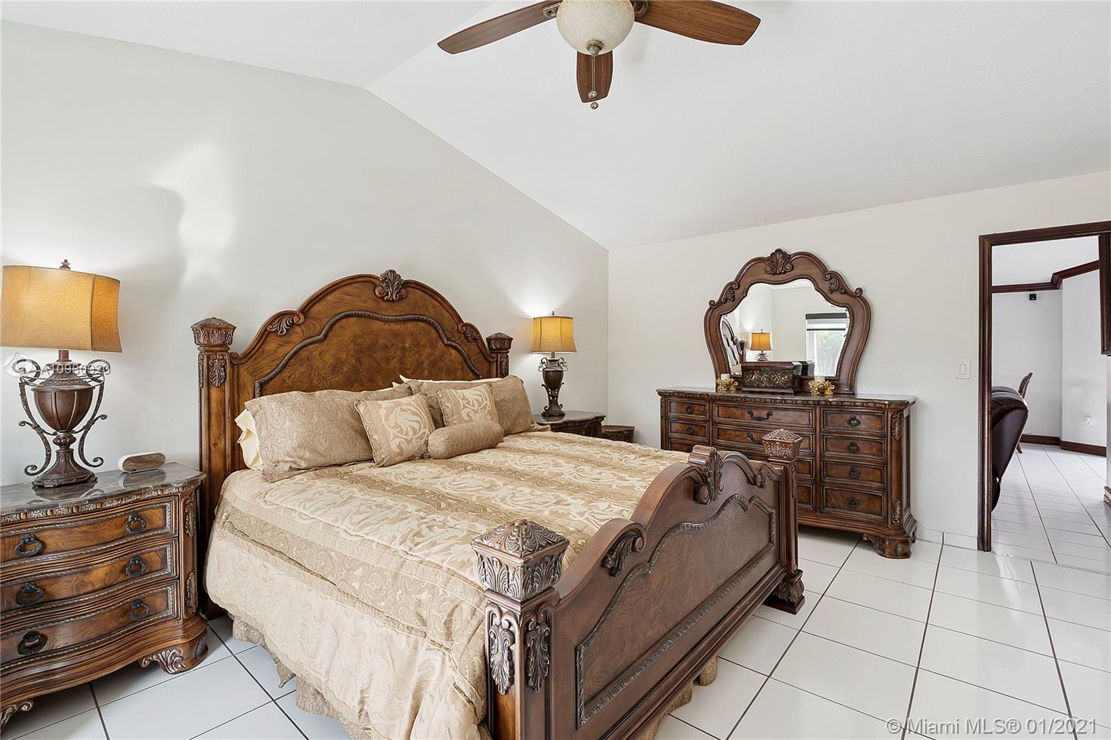 One of a kind! 3/2, two car garage brand new automated remote-control system. Rarely available corner 9,377 SqFT at The Moors SFR. Remodeled kitchen, granite counter tops, all SS appliances, wood laminate cabinets. Crown molding. Tiles throughout. Accordion shutters. Breathtaking private patio with cover terrace, great for entertainment. 24/7 gated community featuring resort style pool, fitness center, tennis, basketball and playgrounds. Conveniently located near shopping, restaurants, schools, hospitals and major highways. Furniture is negotiable. See Virtual Tour, scroll down for patio 360 image !
